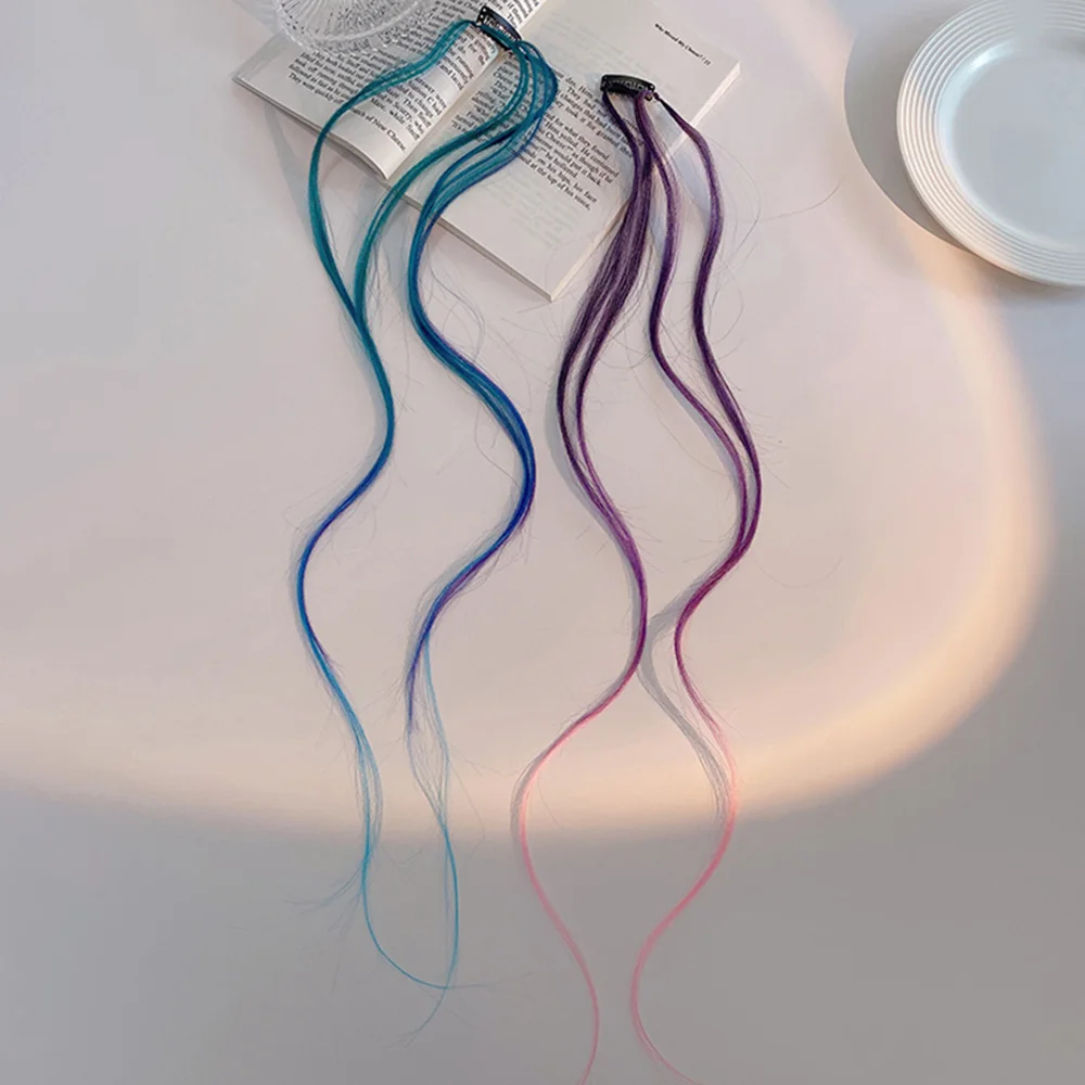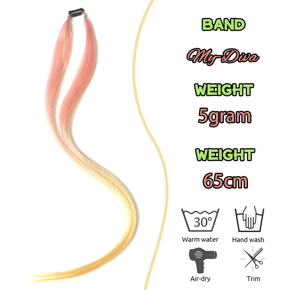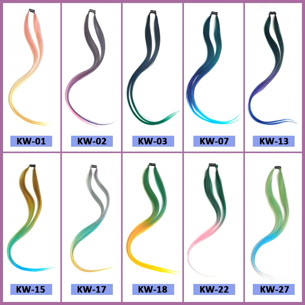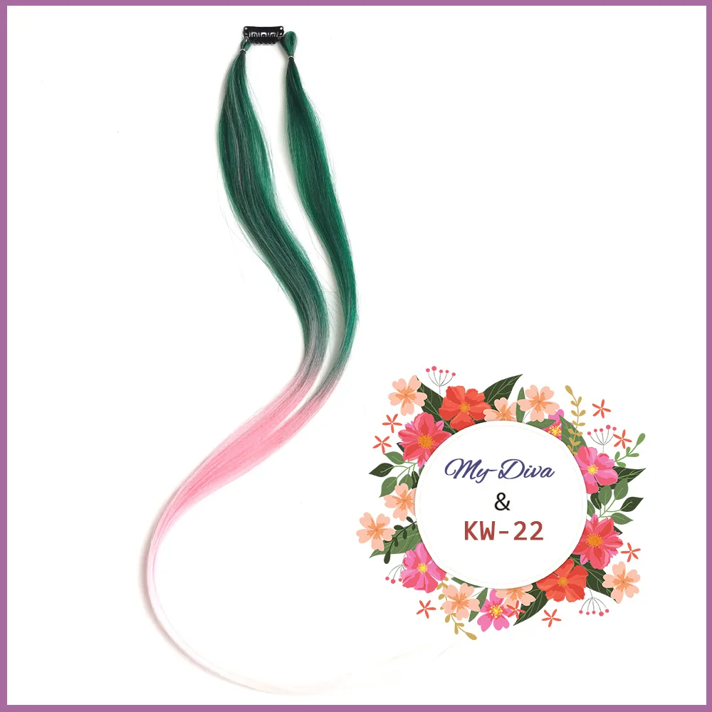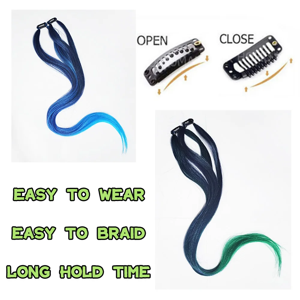 26" Clip On Hair Extension Three Color Ombre Hair Extensions Two Strands Clip In Pony Tail High Temperature Fiber Hairpiece