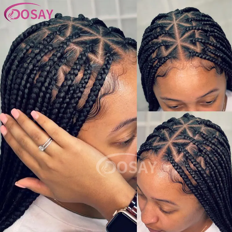 26" Full Lace Front Box Braided Wigs Synthetic Knotless Cornrow Braids Wigs Triangle Lace Frontal Wigs With Baby Hair For Women