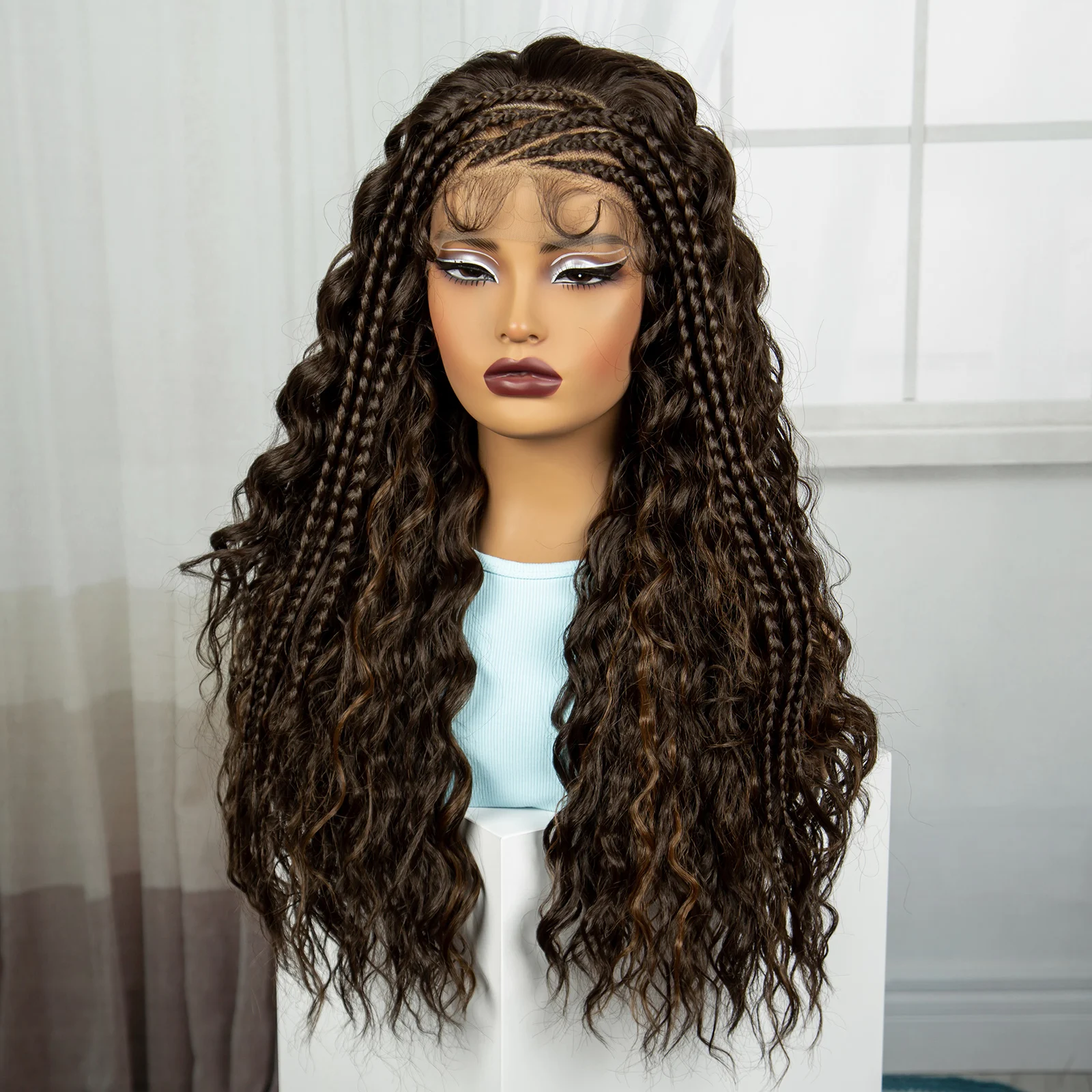 26 Inch 4-30 Water Wave Synthetic Braided Wigs Lace Braided Wigs Curly Knotless Box Braids Wigs With Baby Hair for Black Woman
