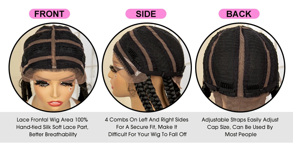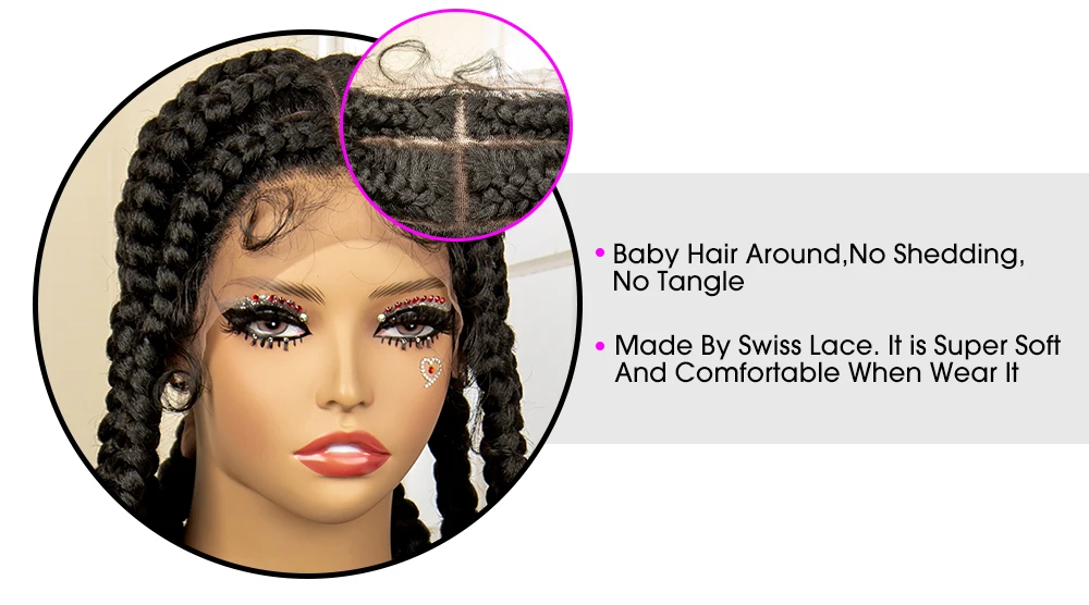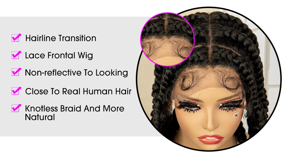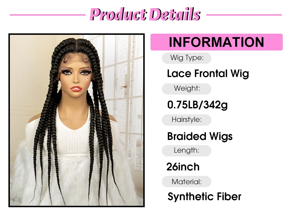 26 Inches Synthetic Cornrow Braided Wigs for Black Women Lace Frontal Knotless Braids Wigs with Baby Hair Lightweight Hair Wig