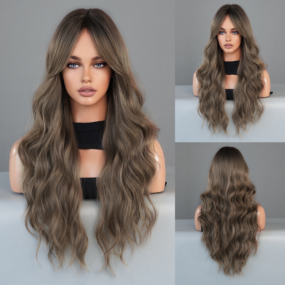 26“ Long Omber 2Style mix Blonde Brown Gradient Color Wavy Women’s Cosplay Hair Wig with Bangs