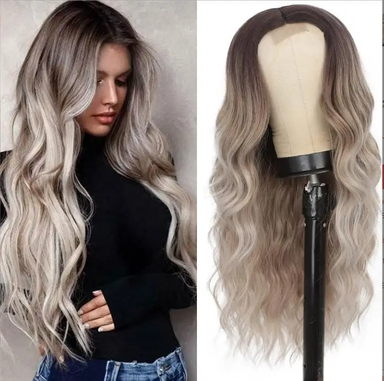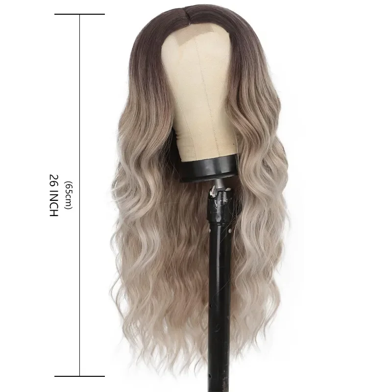 26" New Sexy long Curly nix Blonde Middle Part Ombre Hairs small Lace Human Hair Synthetic Wig
