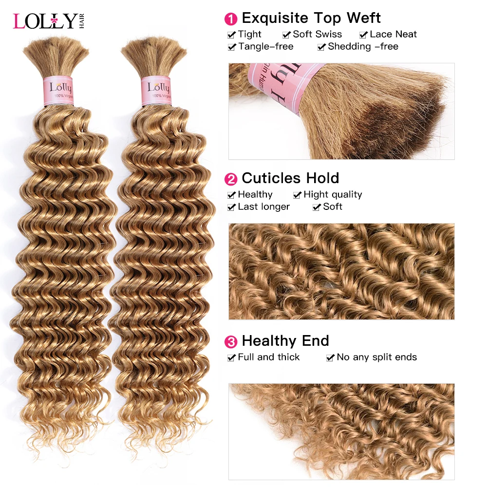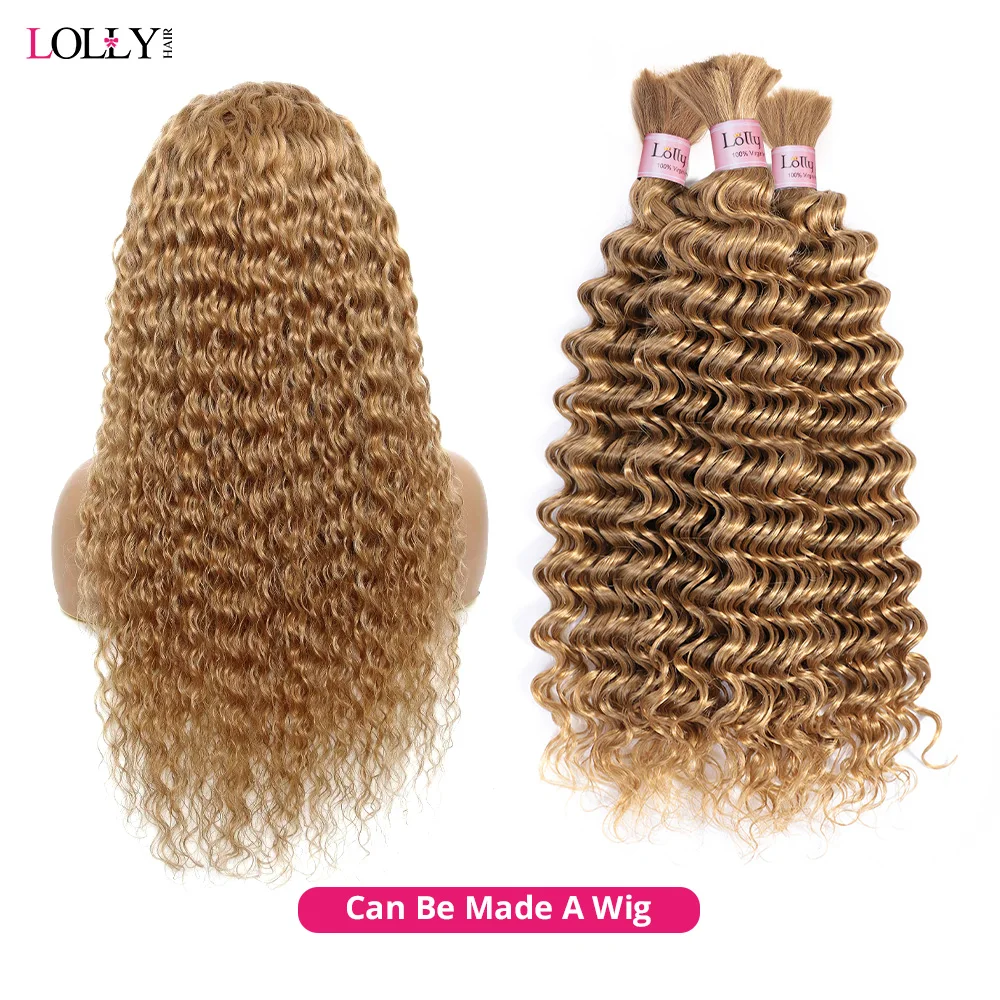 #27 Honey Blonde Bulk Human Hair For Braiding Deep Wave Human Hair Bundles No Weft Bundles For Women Hair Extensions