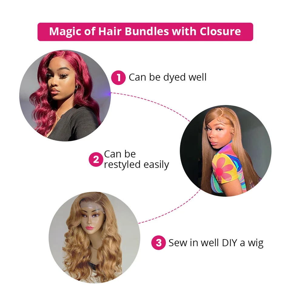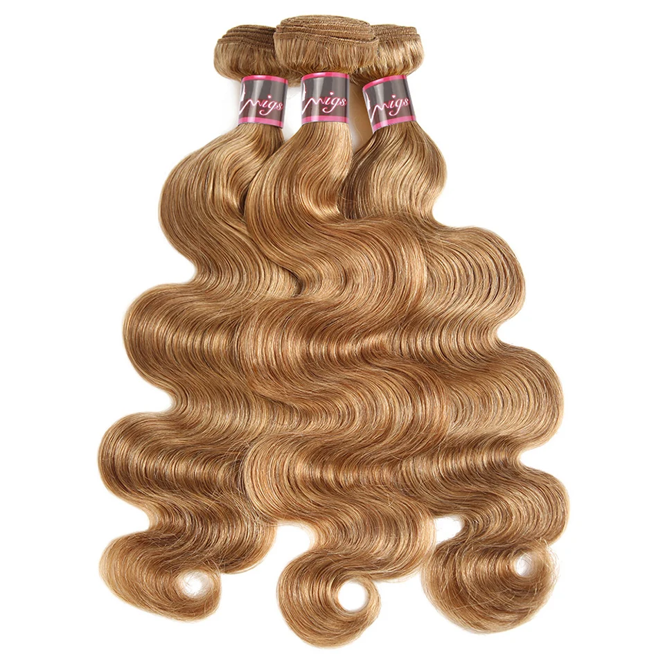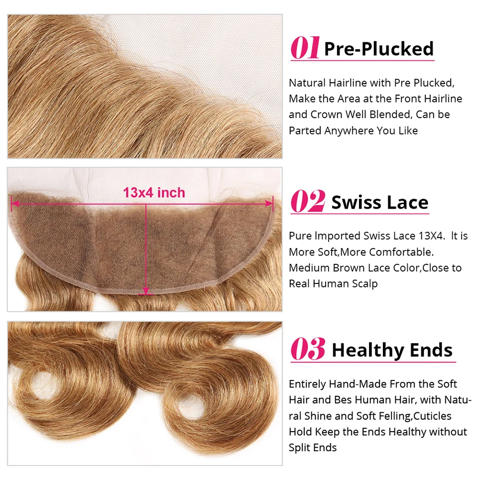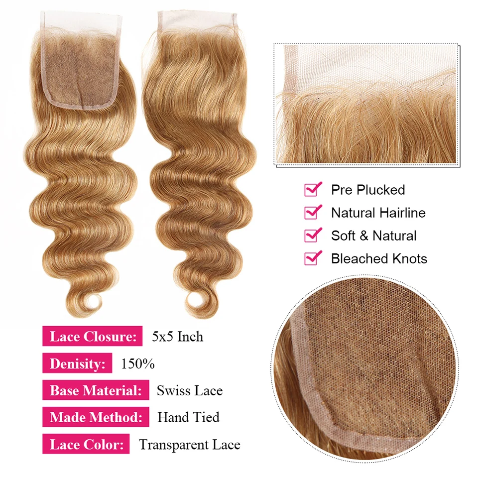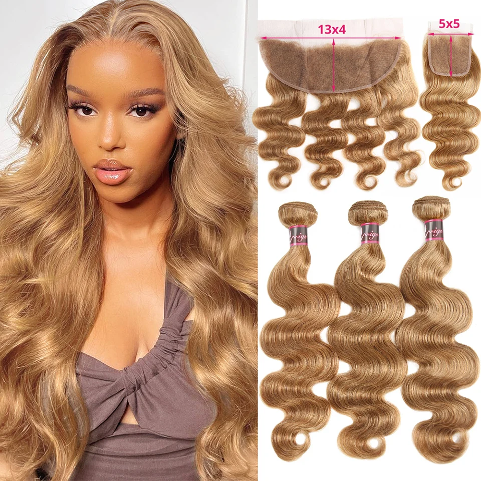 #27 Honey Blonde Human Hair Bundles with Frontal Brazilian Hair Weave Bundle with Closure 5X5 Ombre Colored Body Wave Bundles