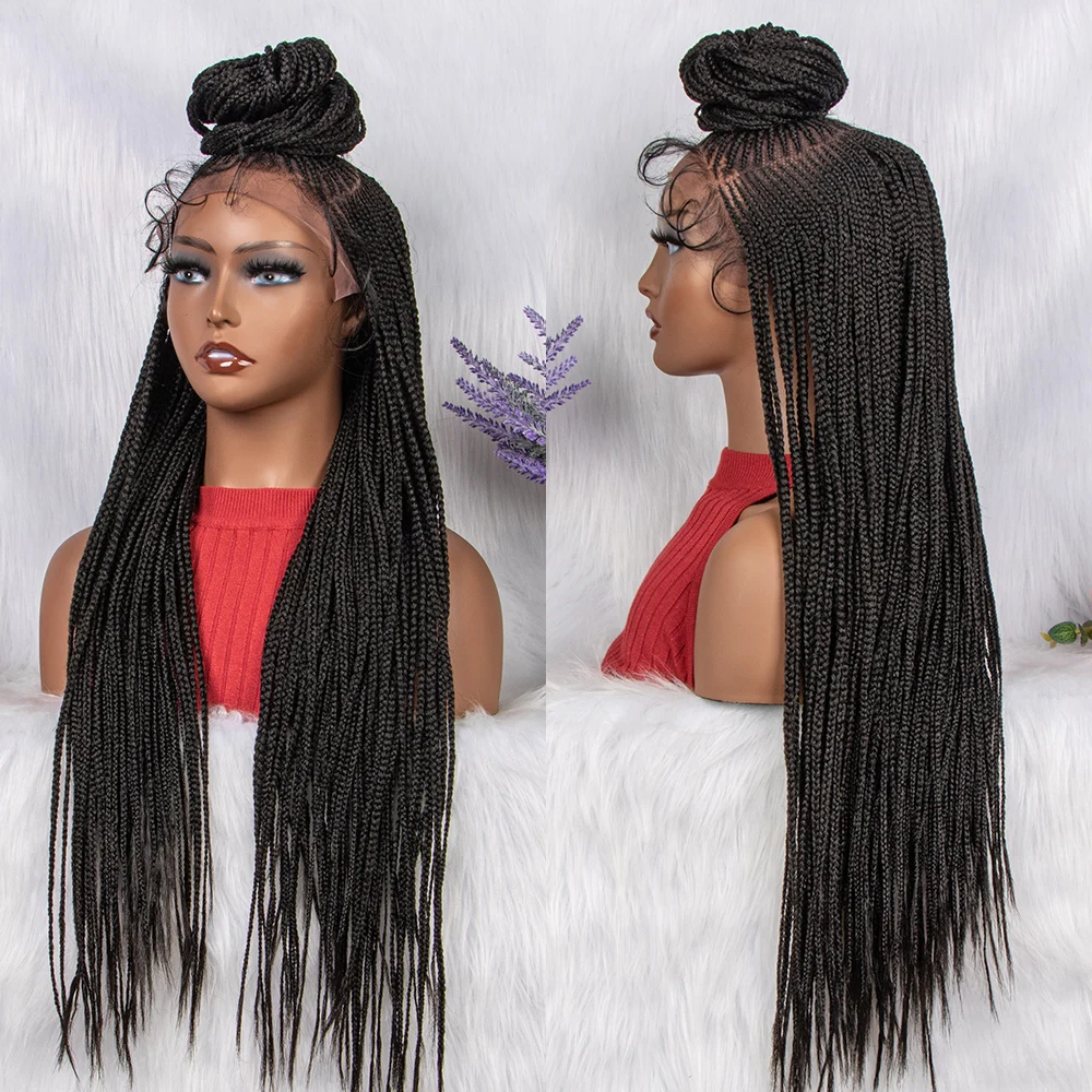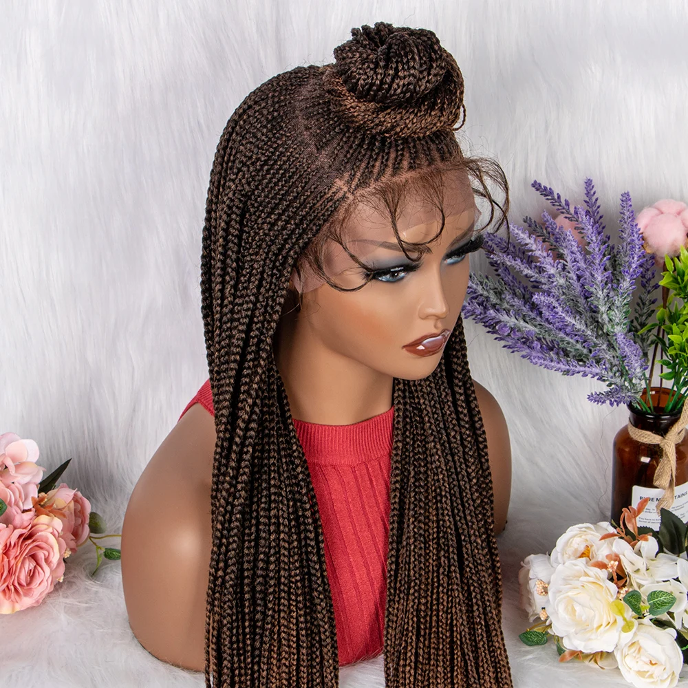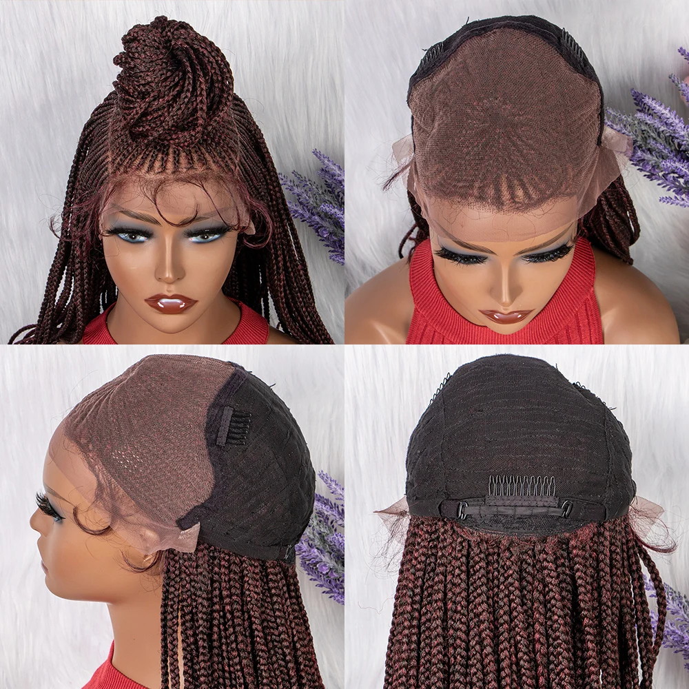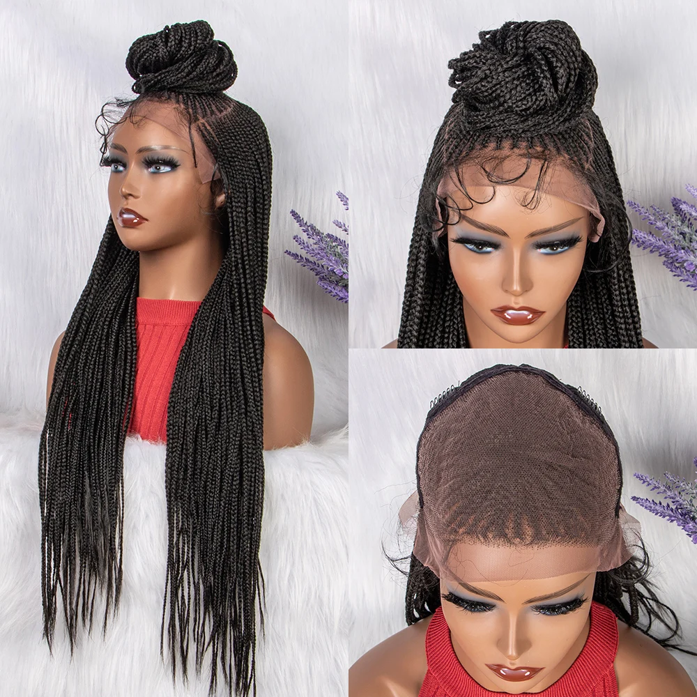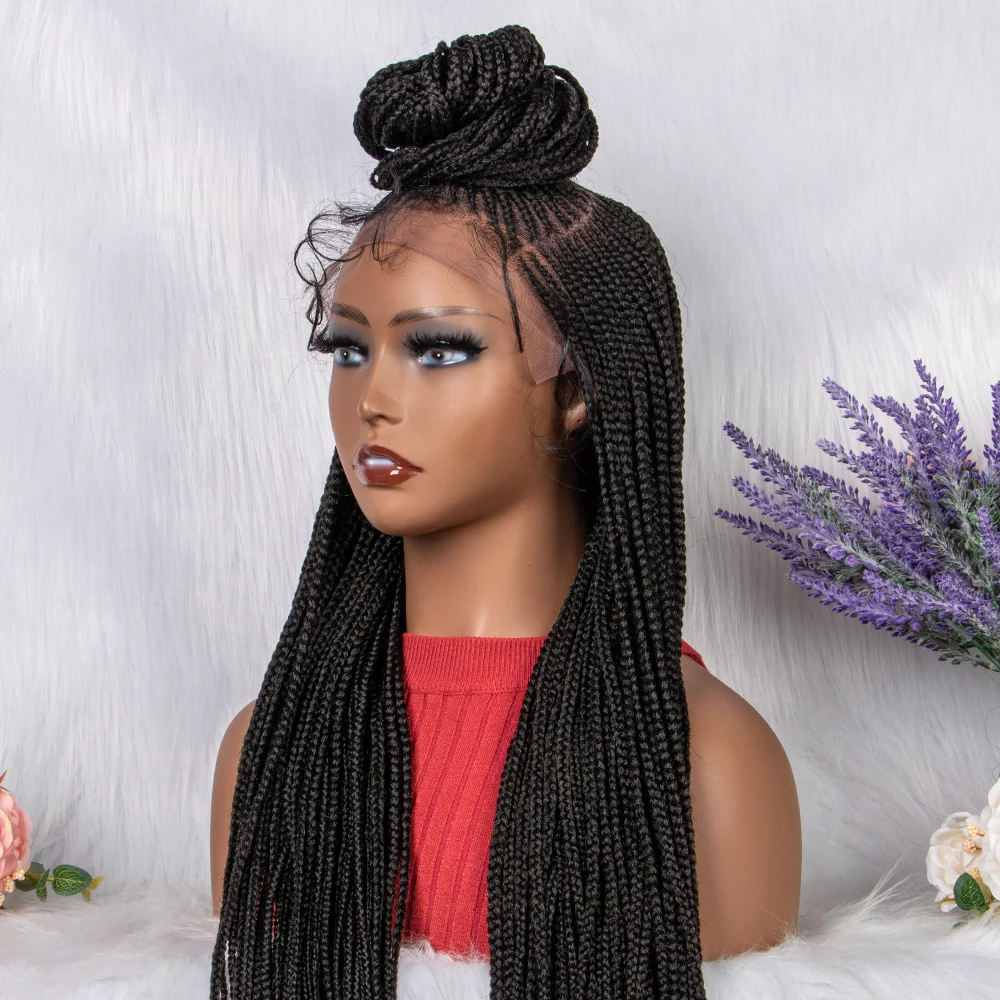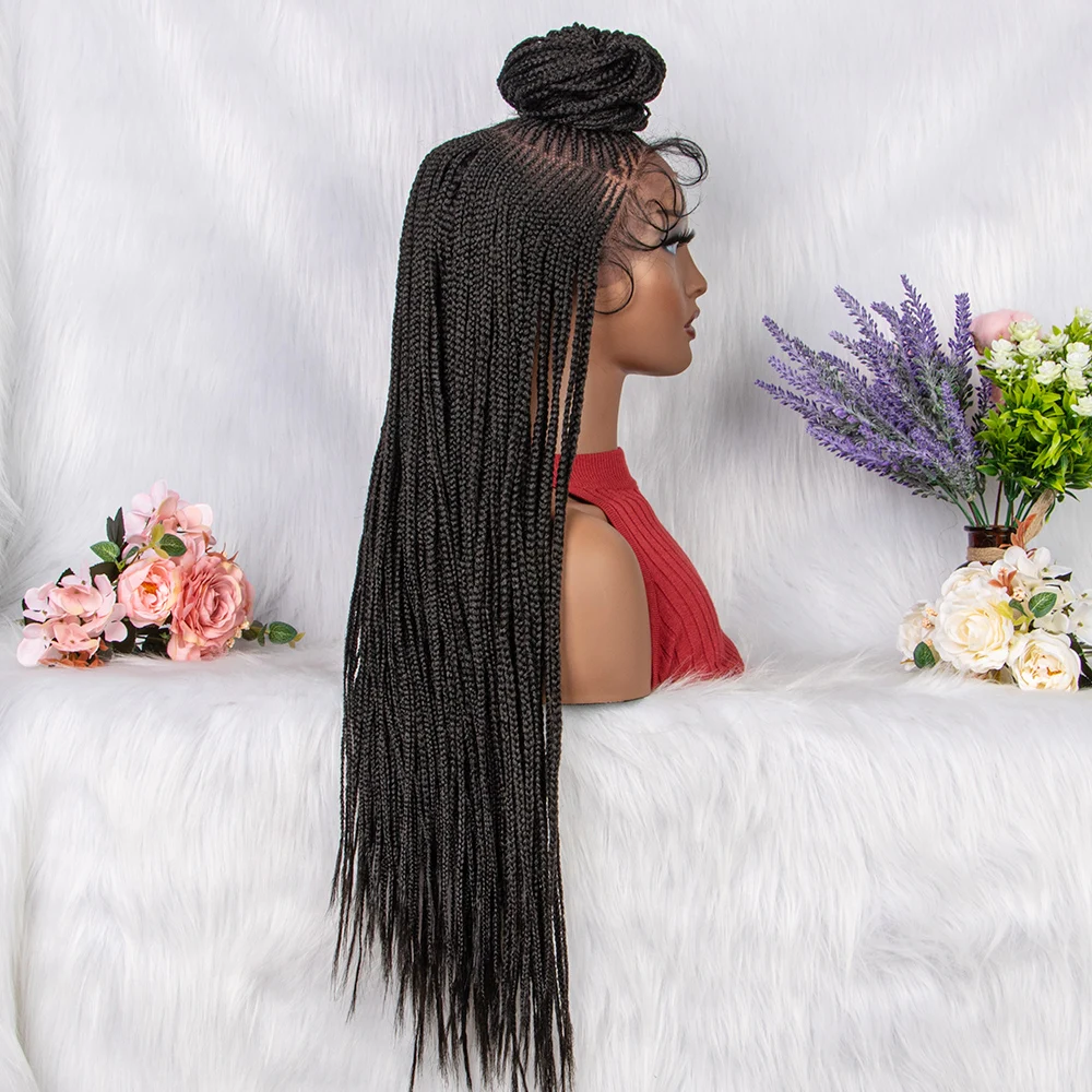 28inch Natural Cornrow Braided Wigs with Buns Synthetic Lace Frontal Braids Wig With Baby Hair Braiding Hair Wig for Black Women
