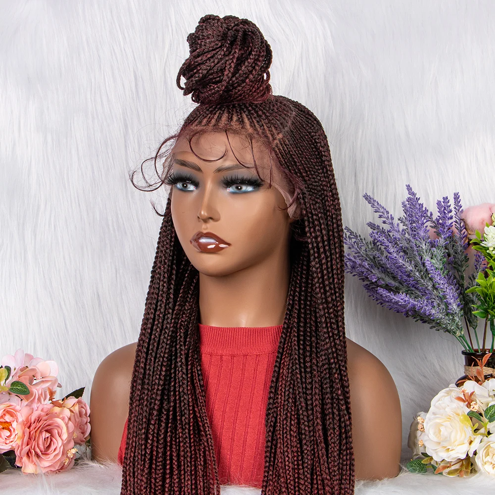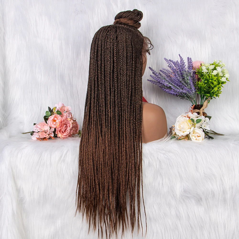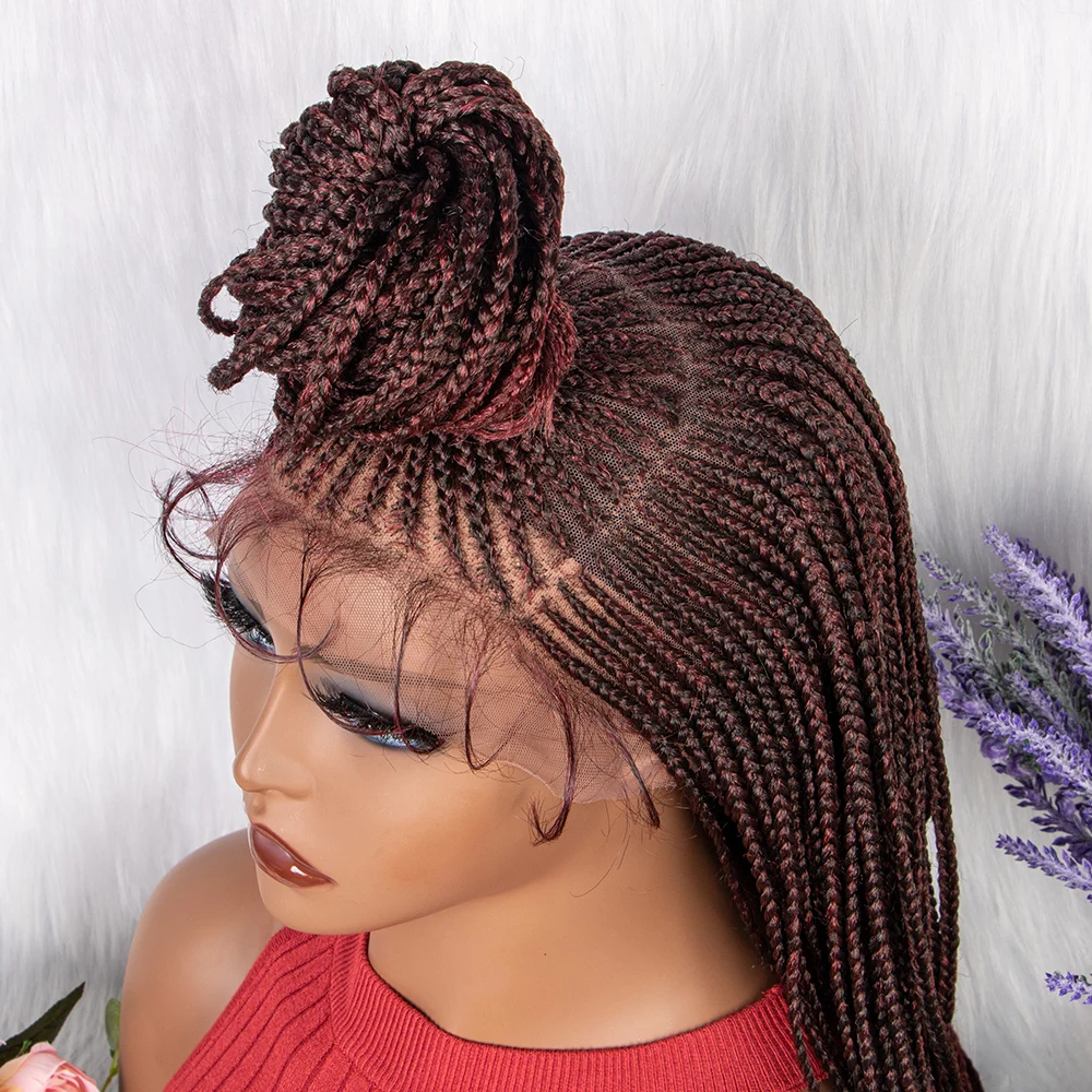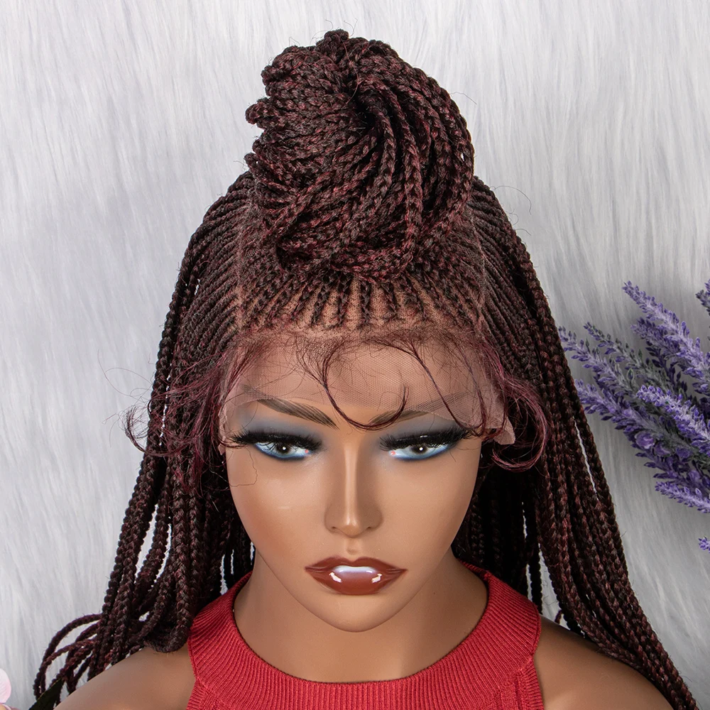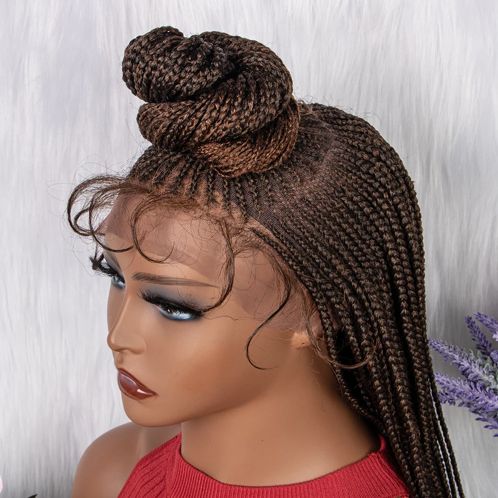 28inch Natural Cornrow Braided Wigs with Buns Synthetic Lace Frontal Braids Wig With Baby Hair Braiding Hair Wig for Black Women
