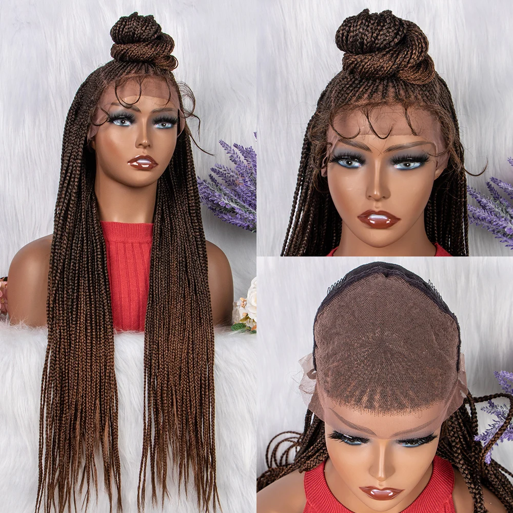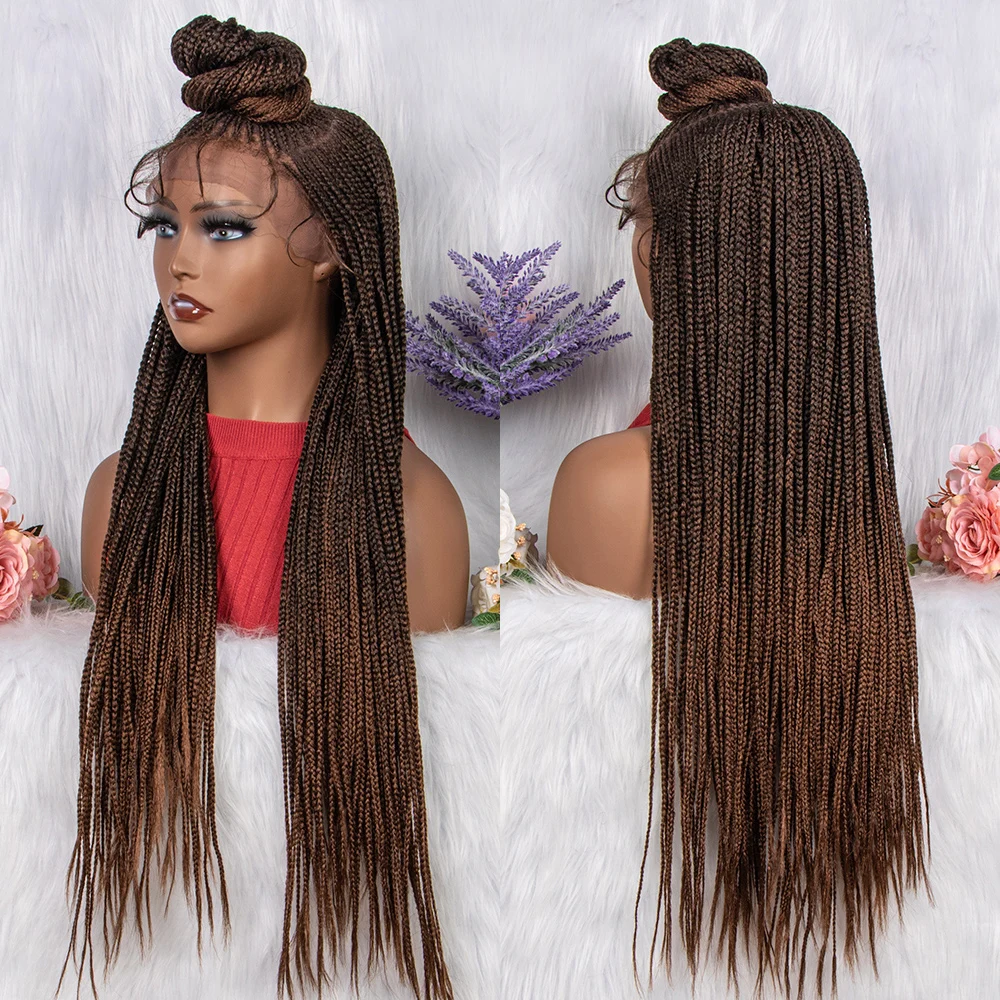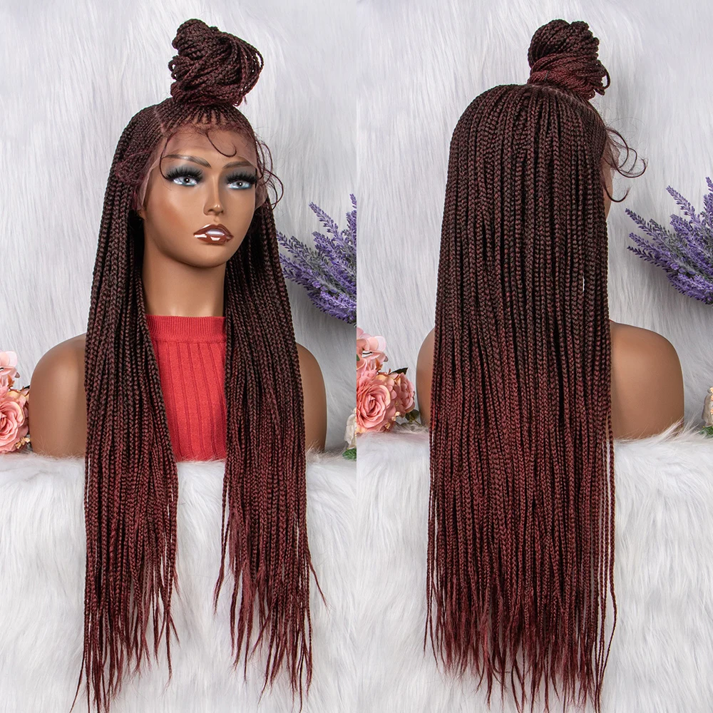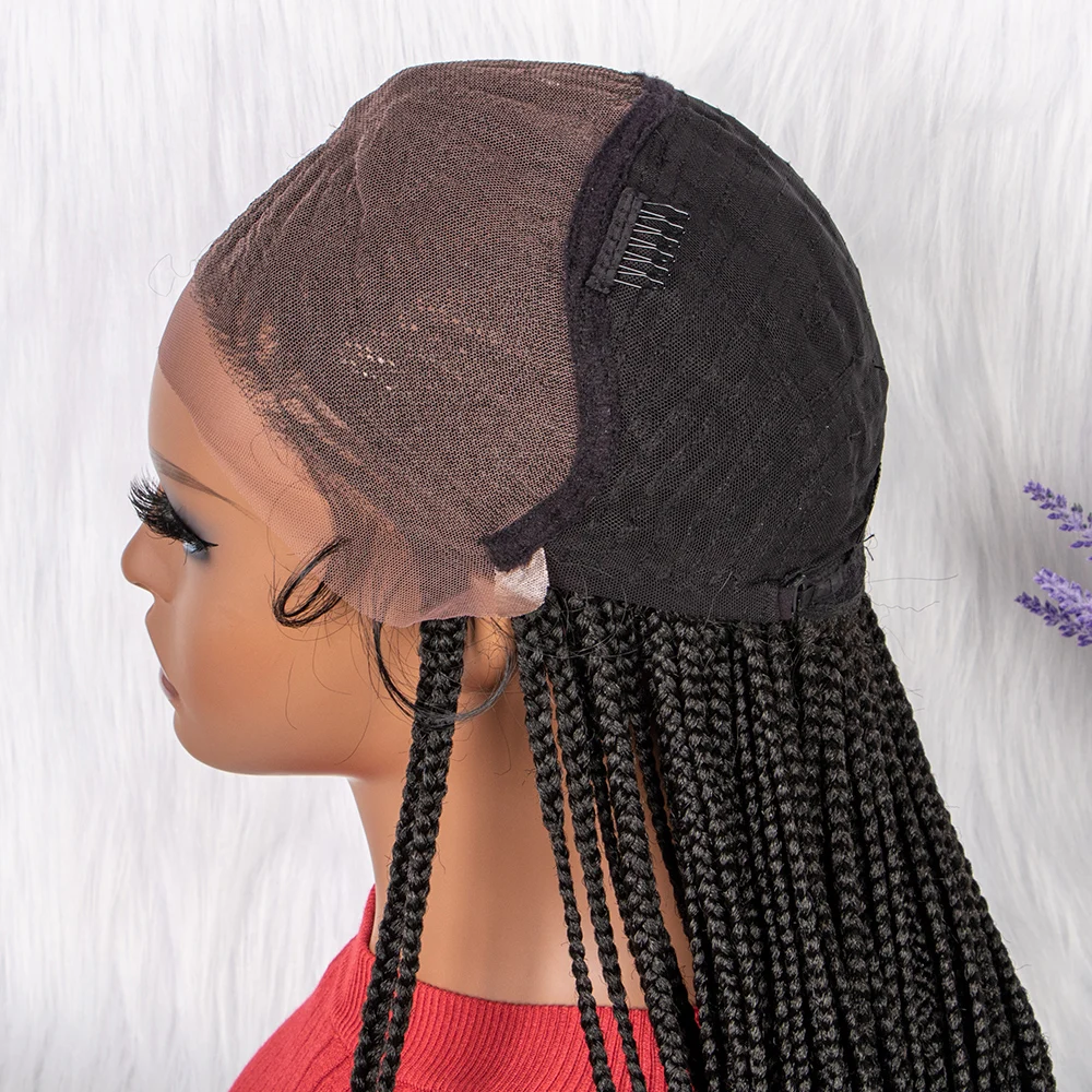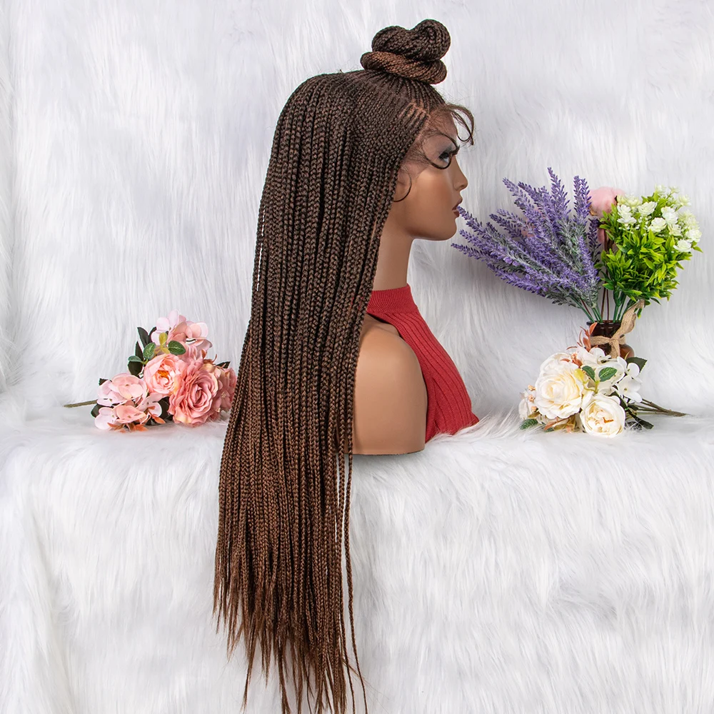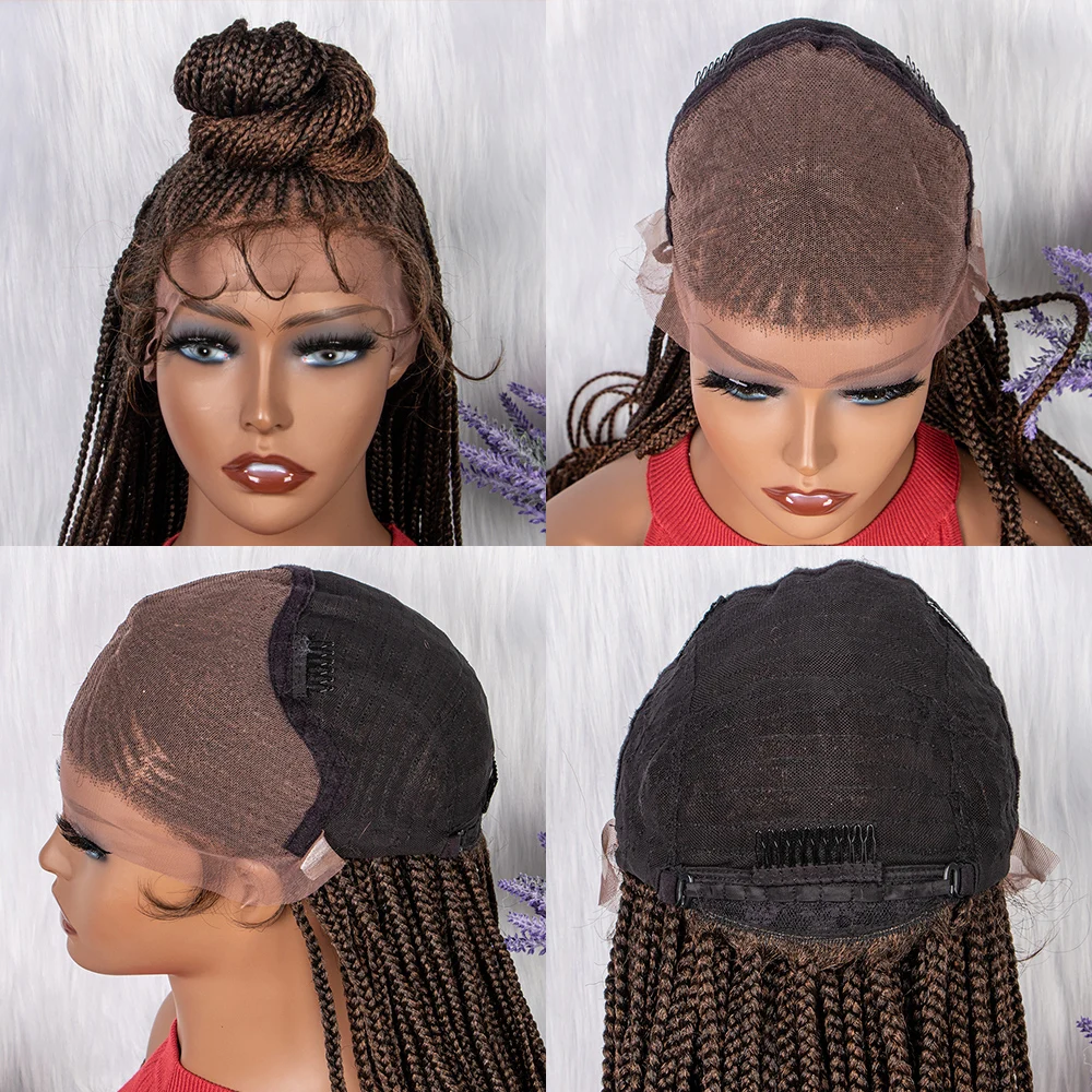 28inch Natural Cornrow Braided Wigs with Buns Synthetic Lace Frontal Braids Wig With Baby Hair Braiding Hair Wig for Black Women