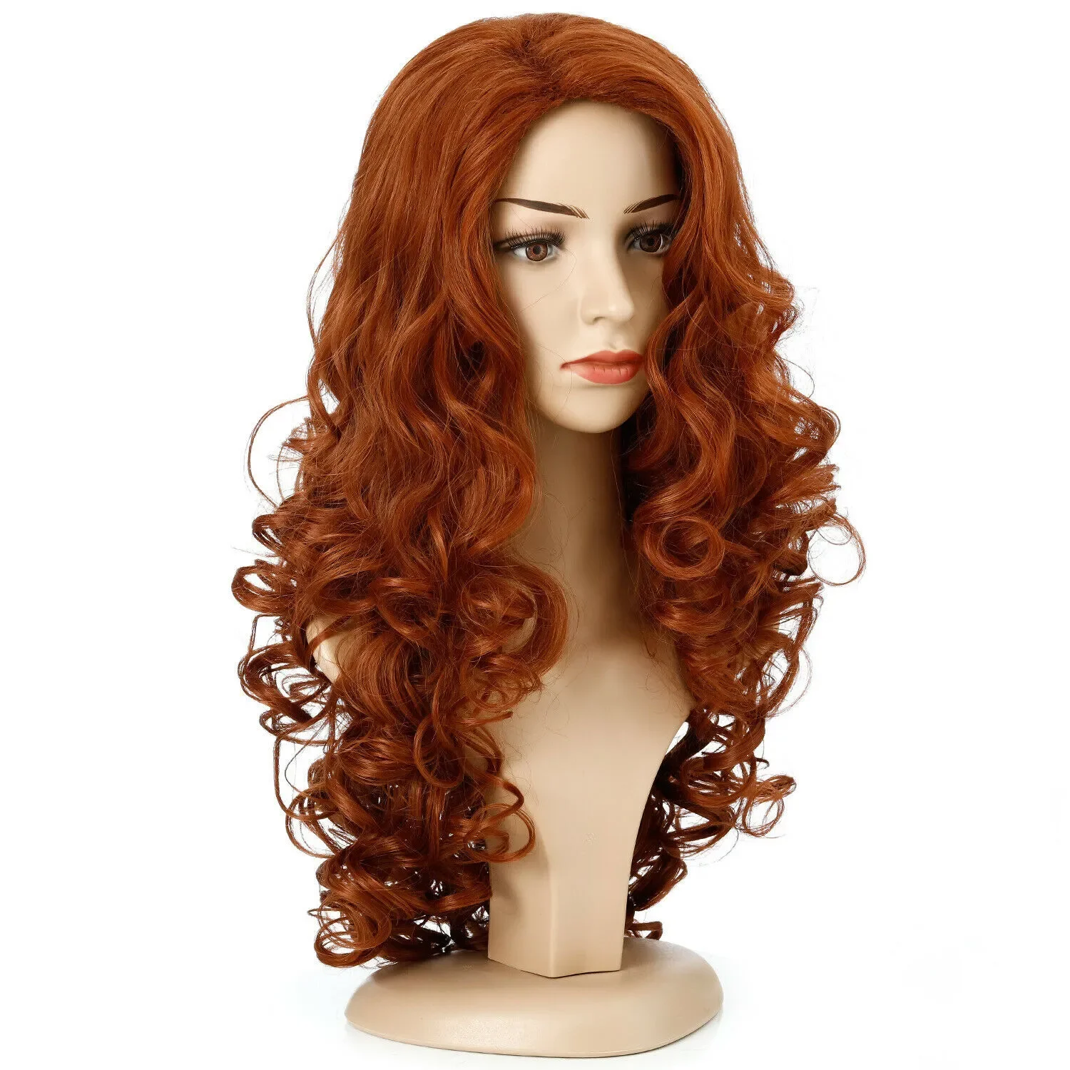 2Color Womens Long Black & Orange Curly Wavy Hair Wigs Ladies Nature Party Cosplay Full Wig