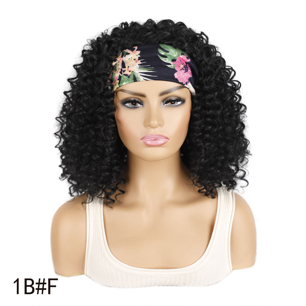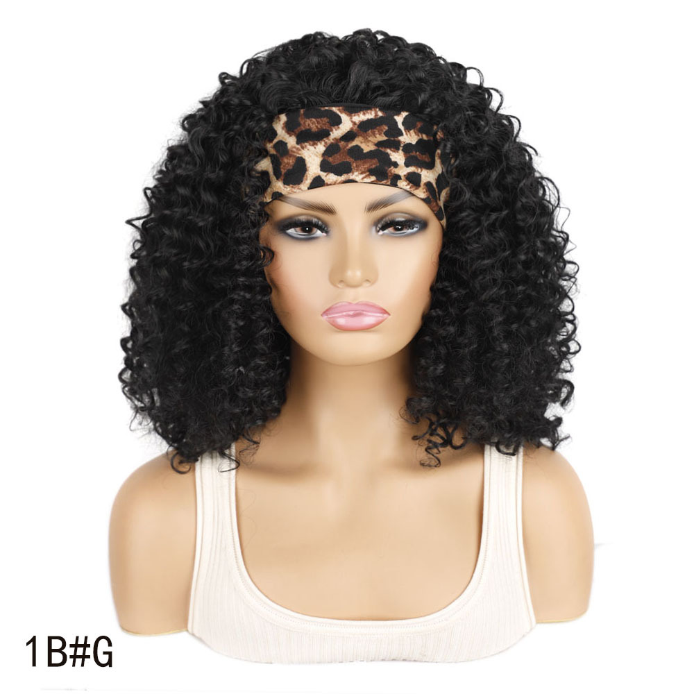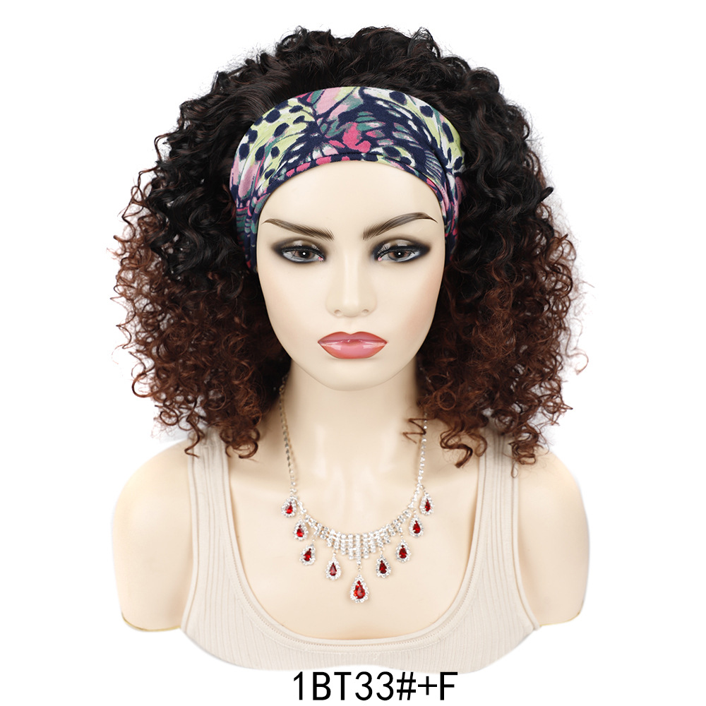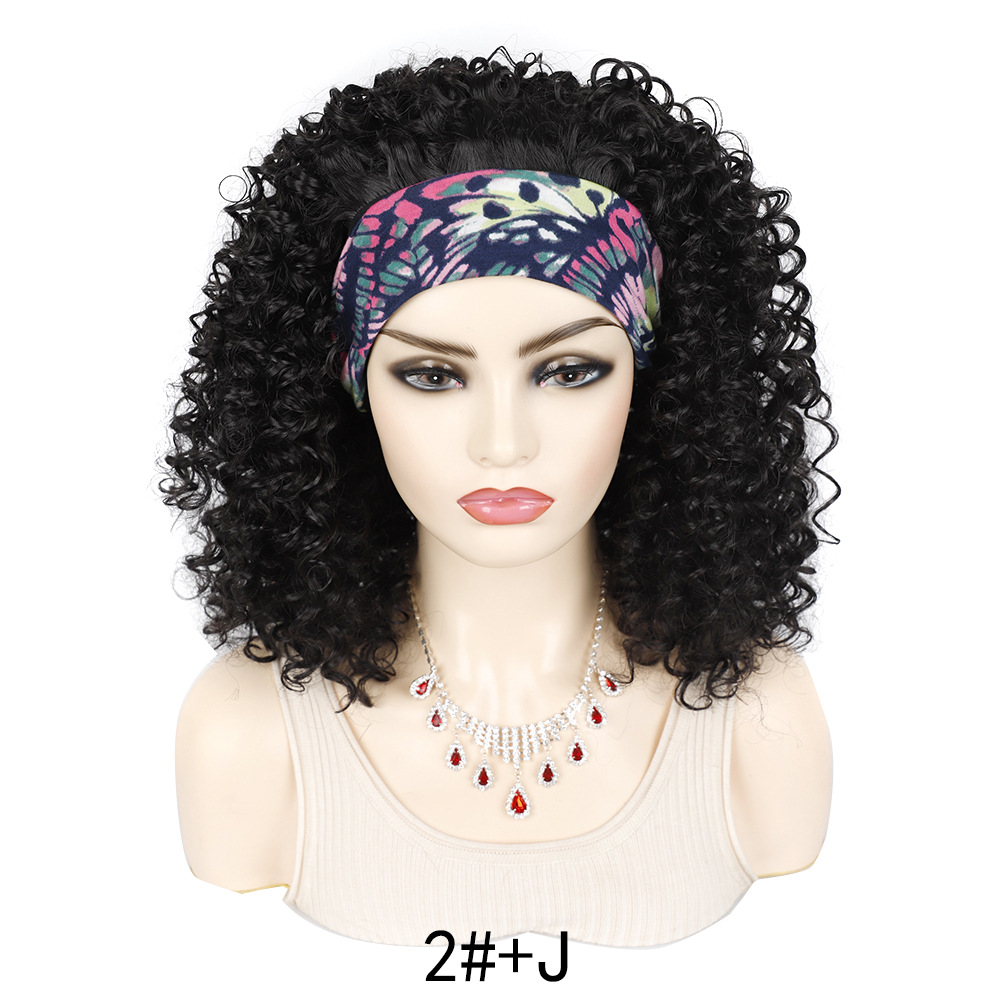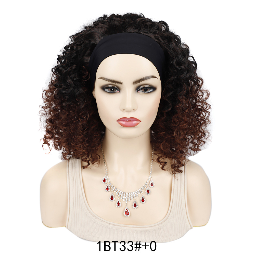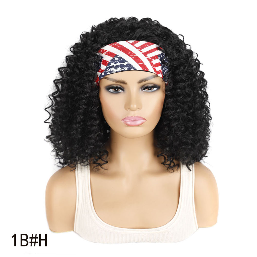 3/4 Half Long Charm 7Color Spiral Headband Black African Women’s Hair Wig with Bangs for Halloween Christmas Wigs