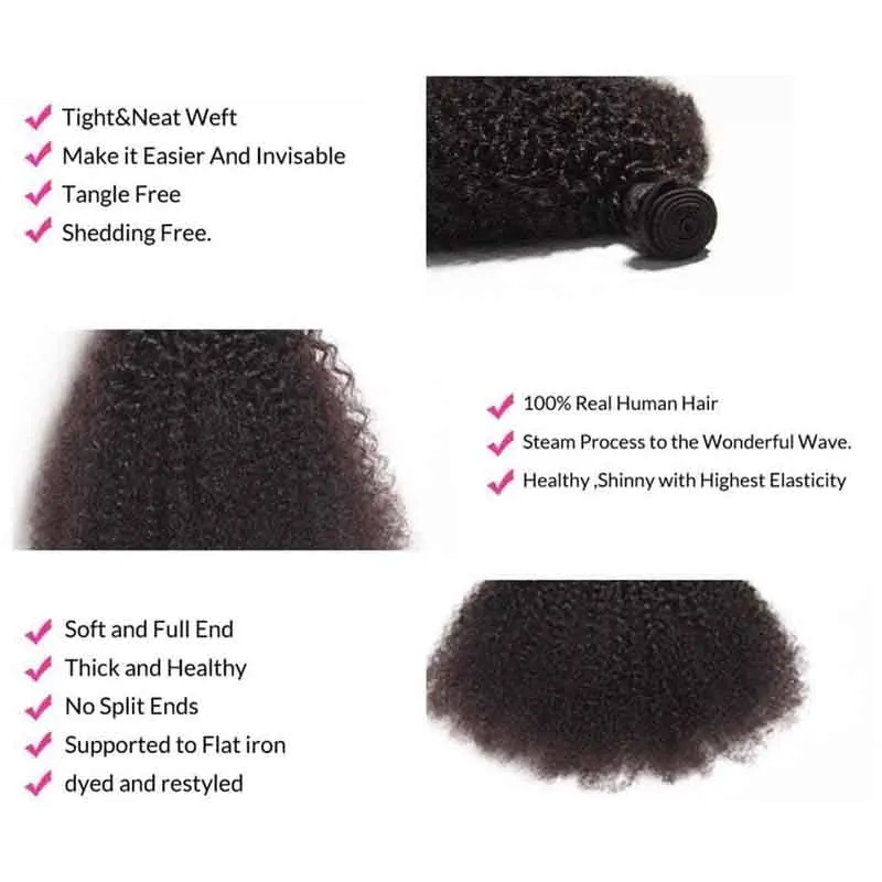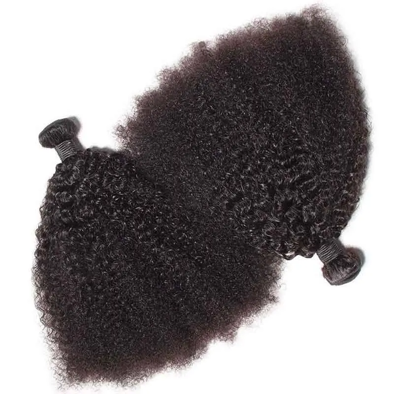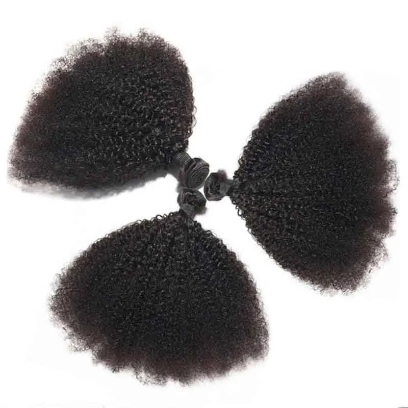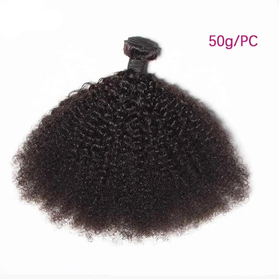 3/4PC Afro Kinky Curly Human Hair Bundles 50g/PC Mongolian Kinky Curly Hair Bundle Double Weft Hair Extension Remy Natural Color