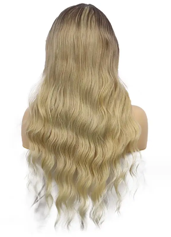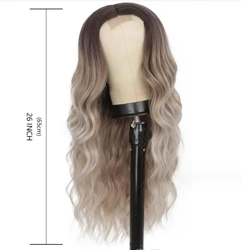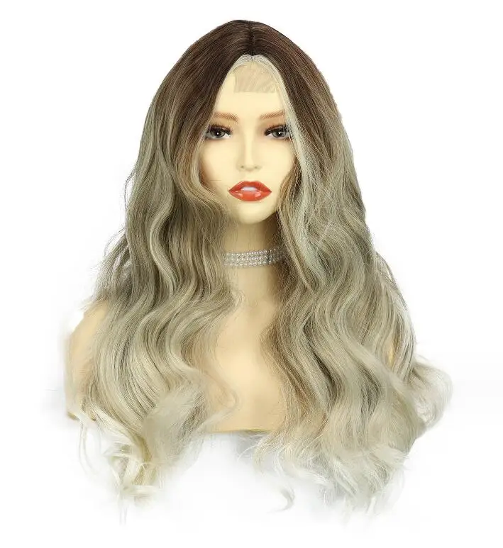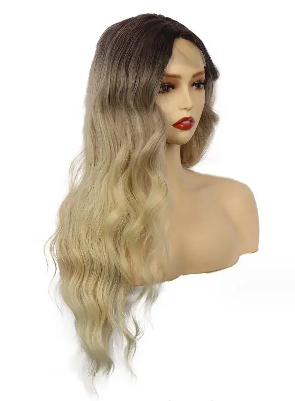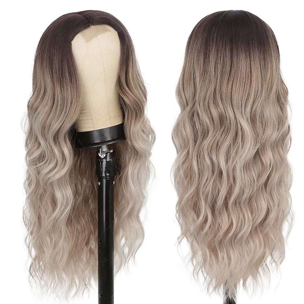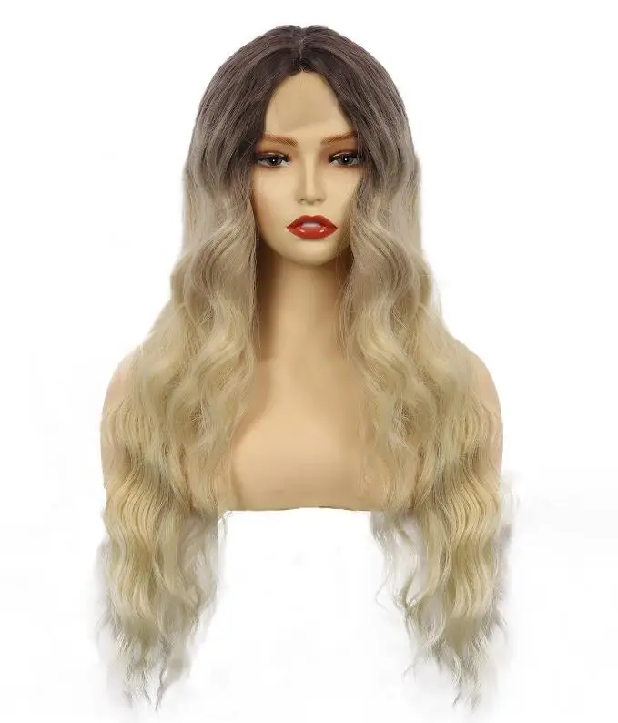 3 Color New Women's Long black MIX Blonde Middle Part Ombre Hairs Curly small Lace Hair Wig