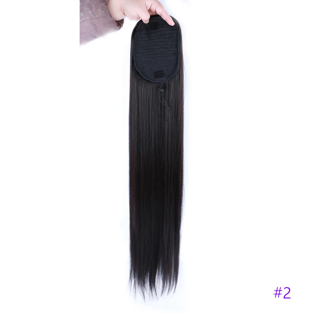 30 Inch Long Straight Ponytail Synthetic Drawstring Ponytail Chip-In Hair Extension Straight Pony Tail For Woman Fake Hairpiece