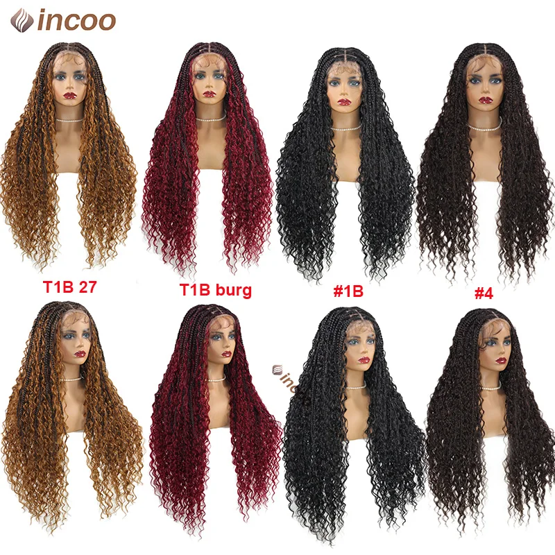 32 Inch Lace Front Box Braided Wigs Goddess Locs Boho Curls Synthetic Knotless Cornrow Braids Wig With Baby Hair For Black Women