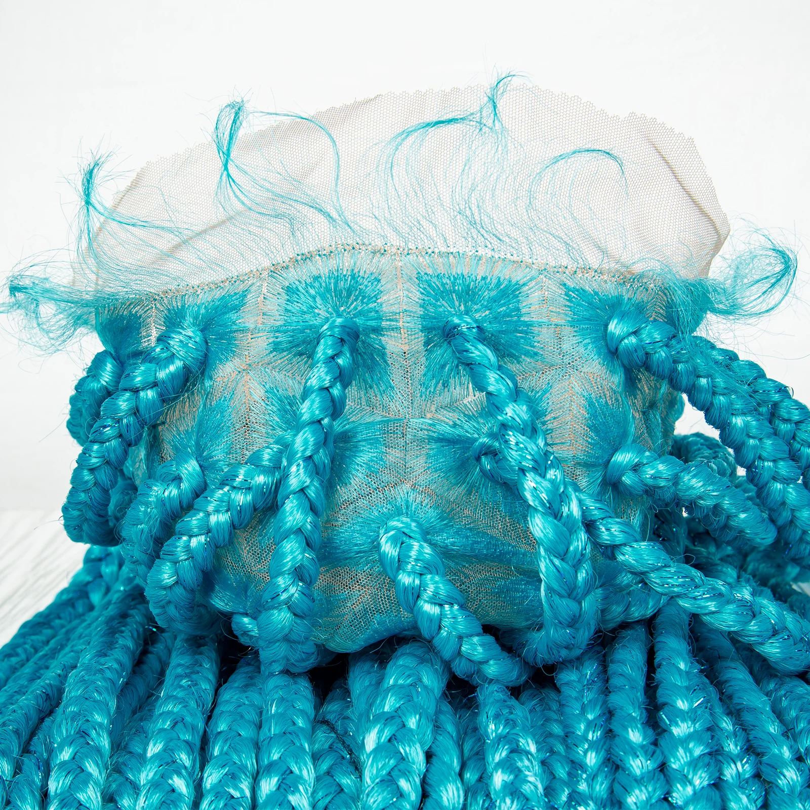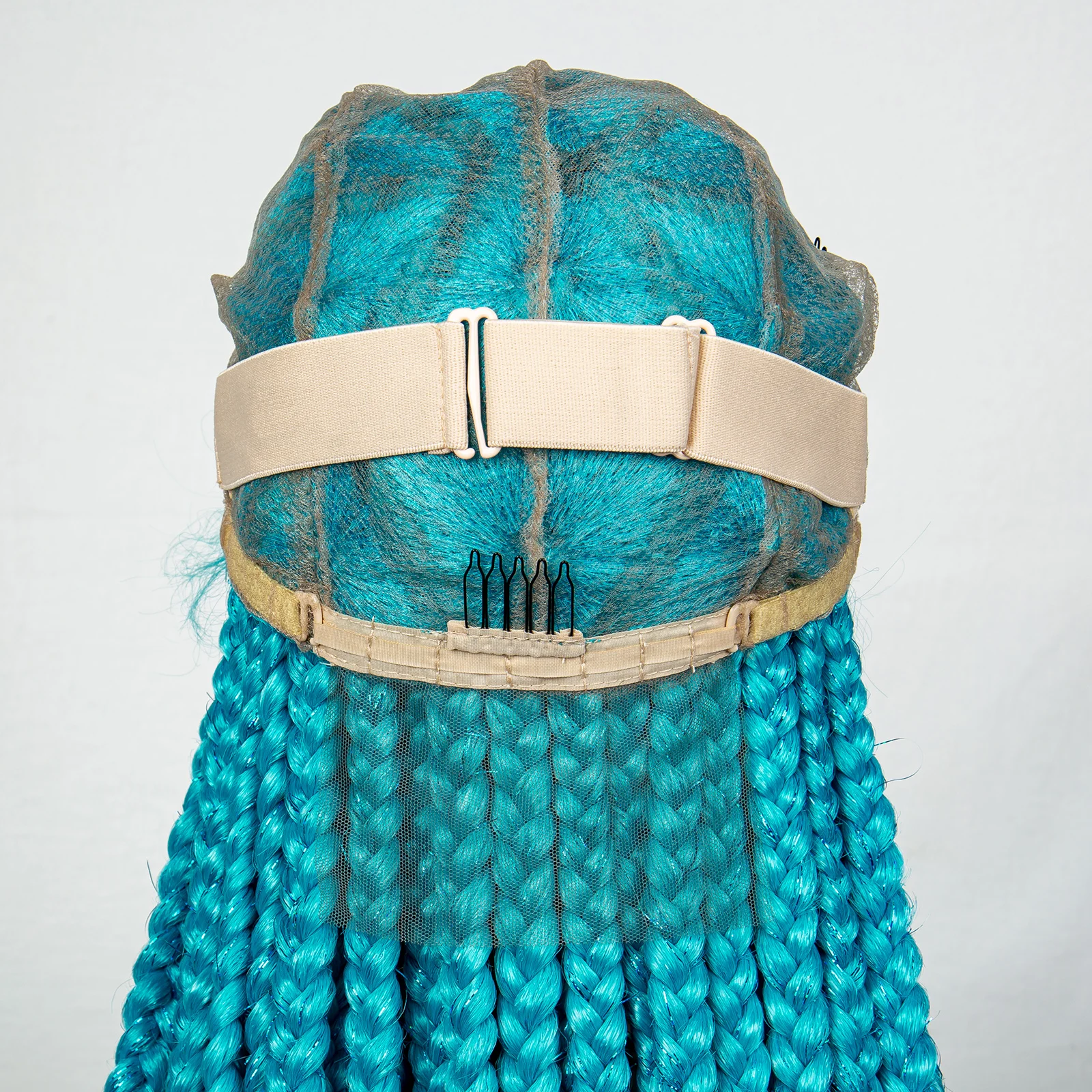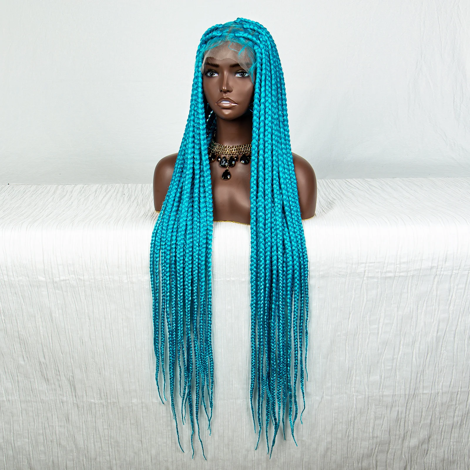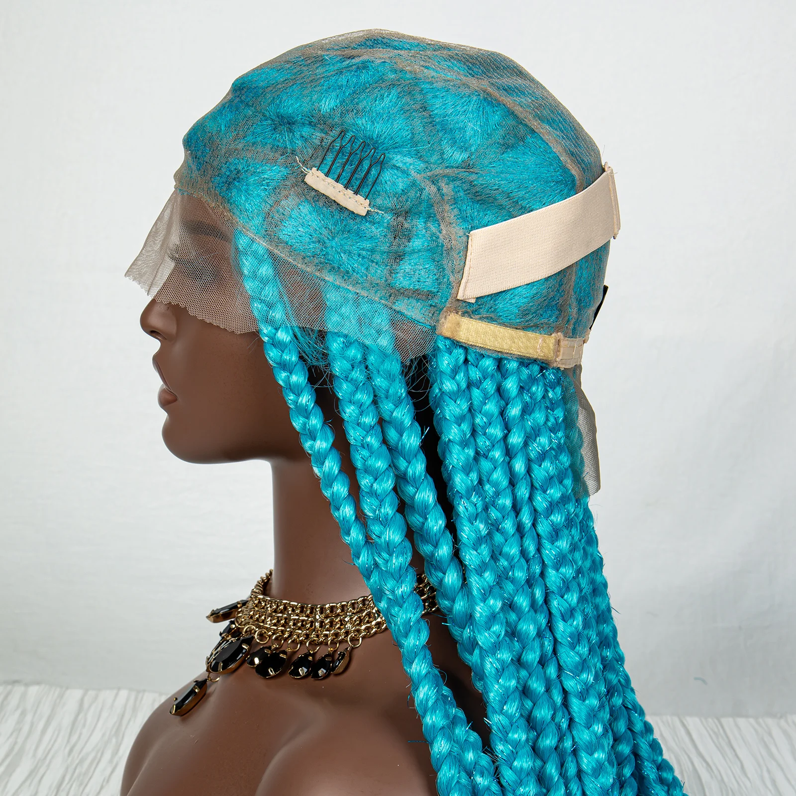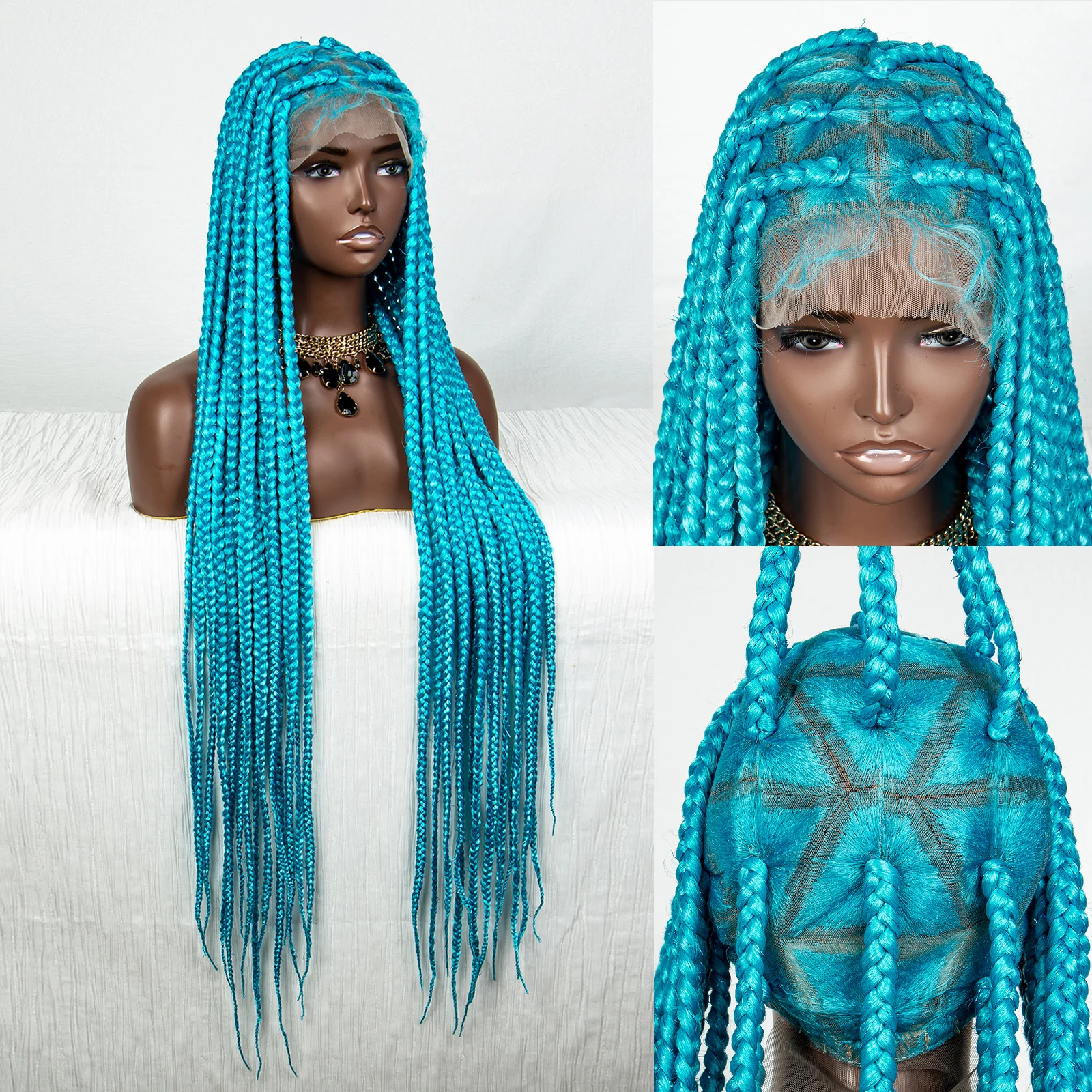 32 Inch Synthetic Full Lace Braided Wigs Knotless Box Braids Wigs Blue Color Crochet Hair for Women Straight Braiding Hair Wigs