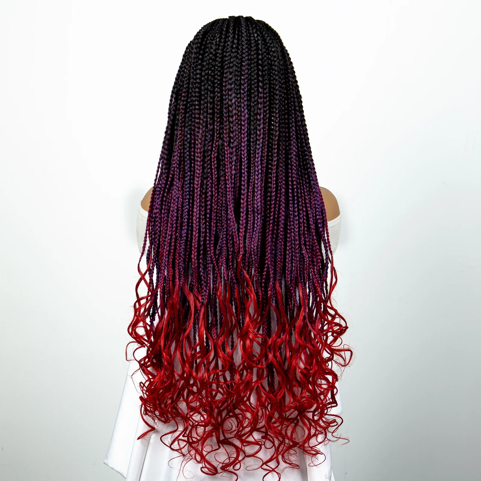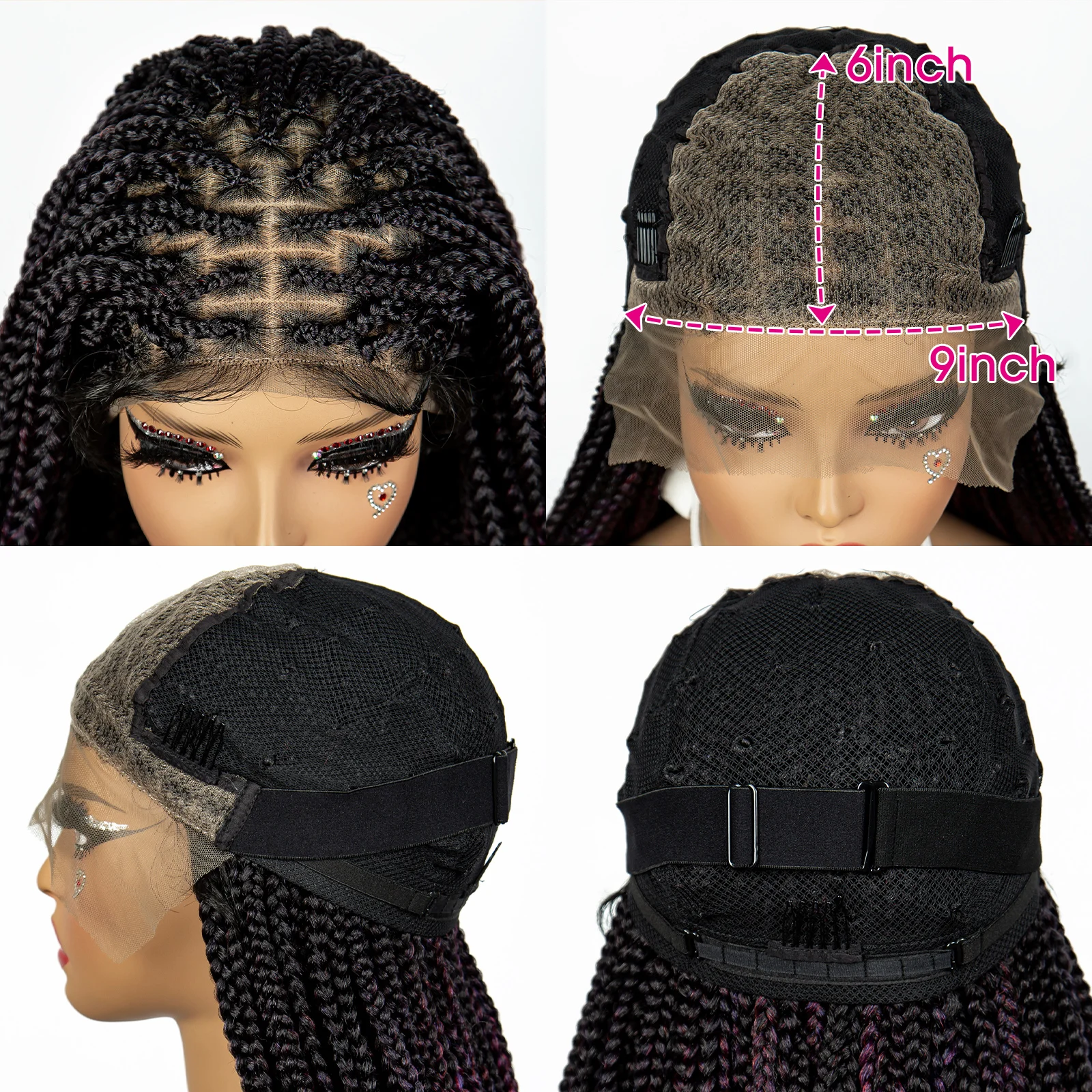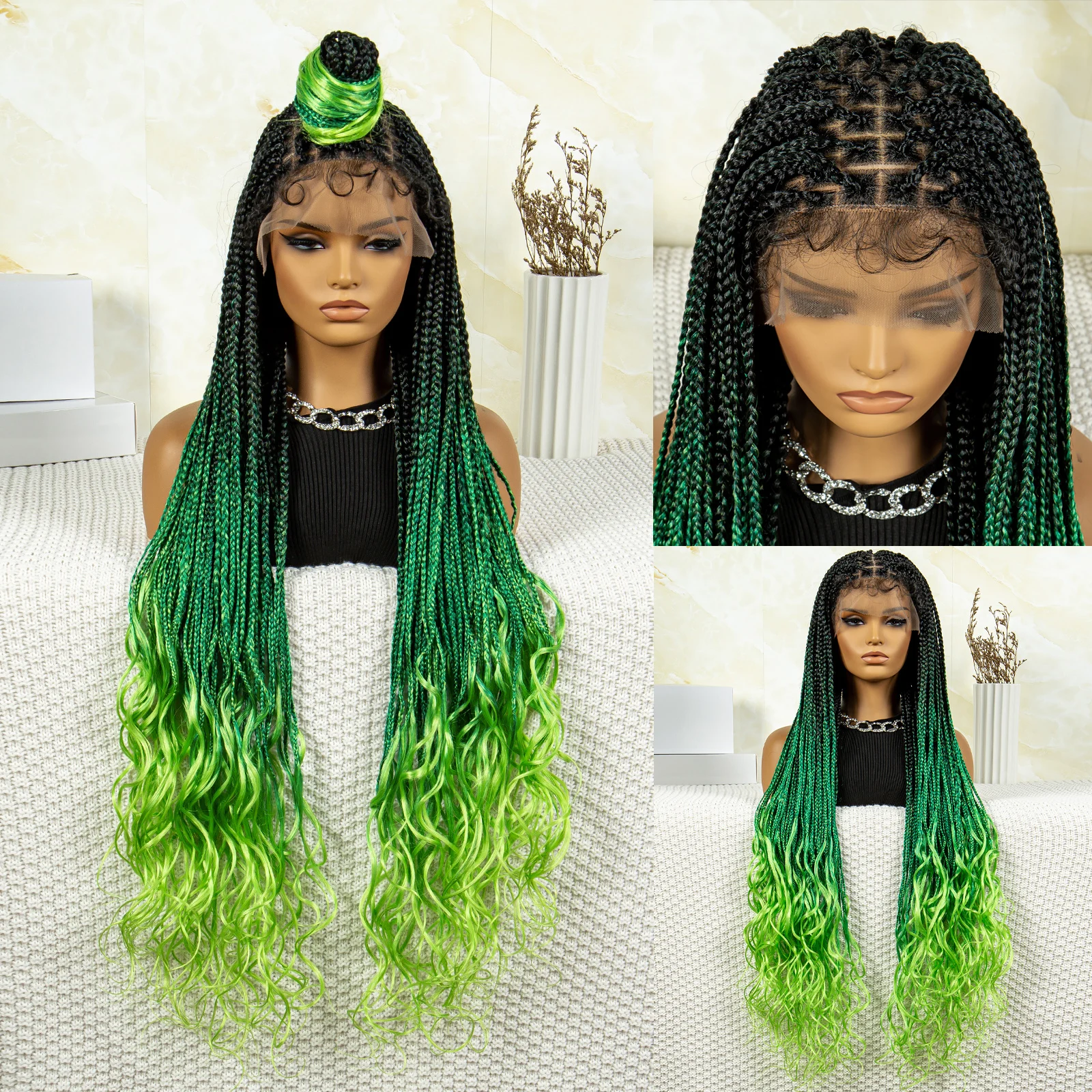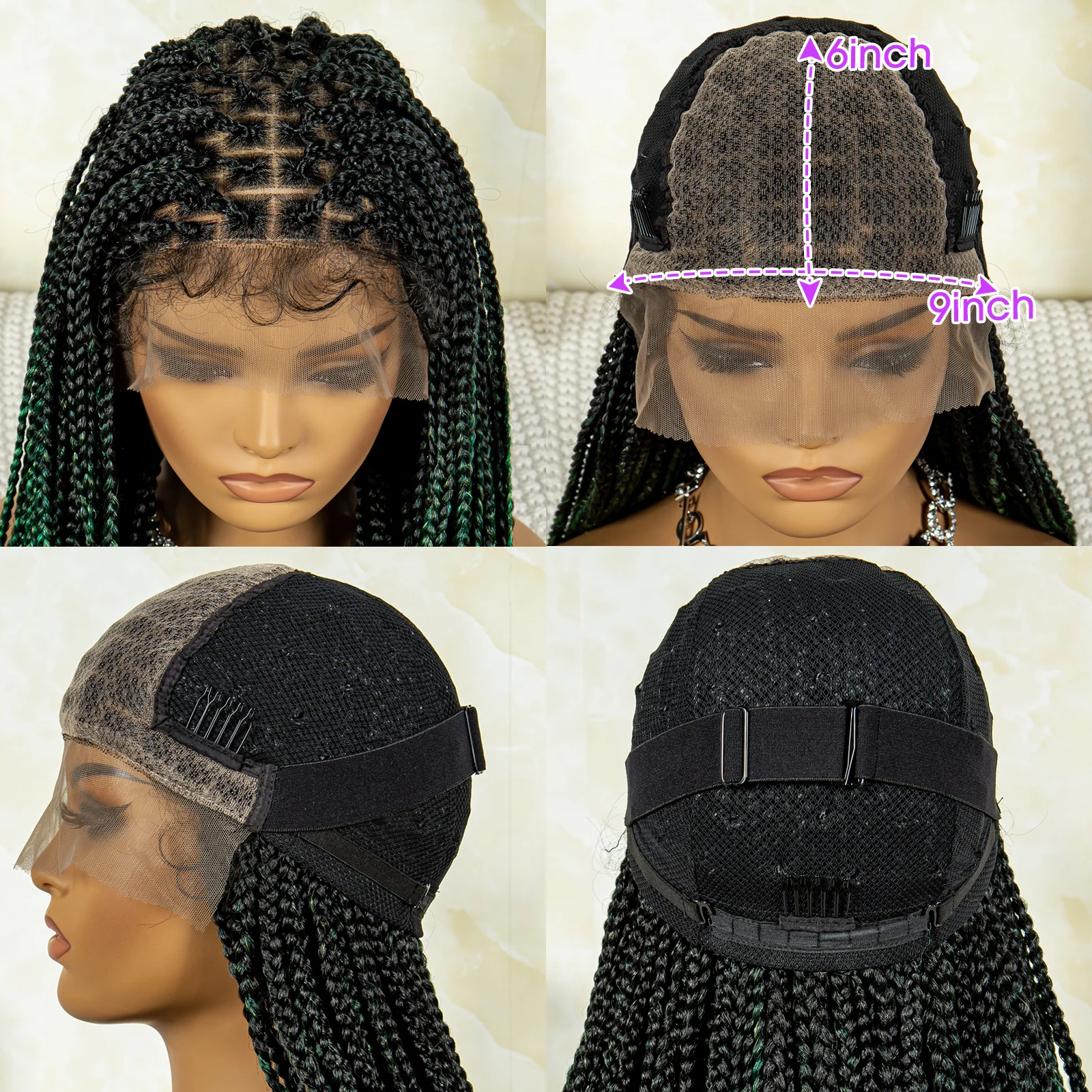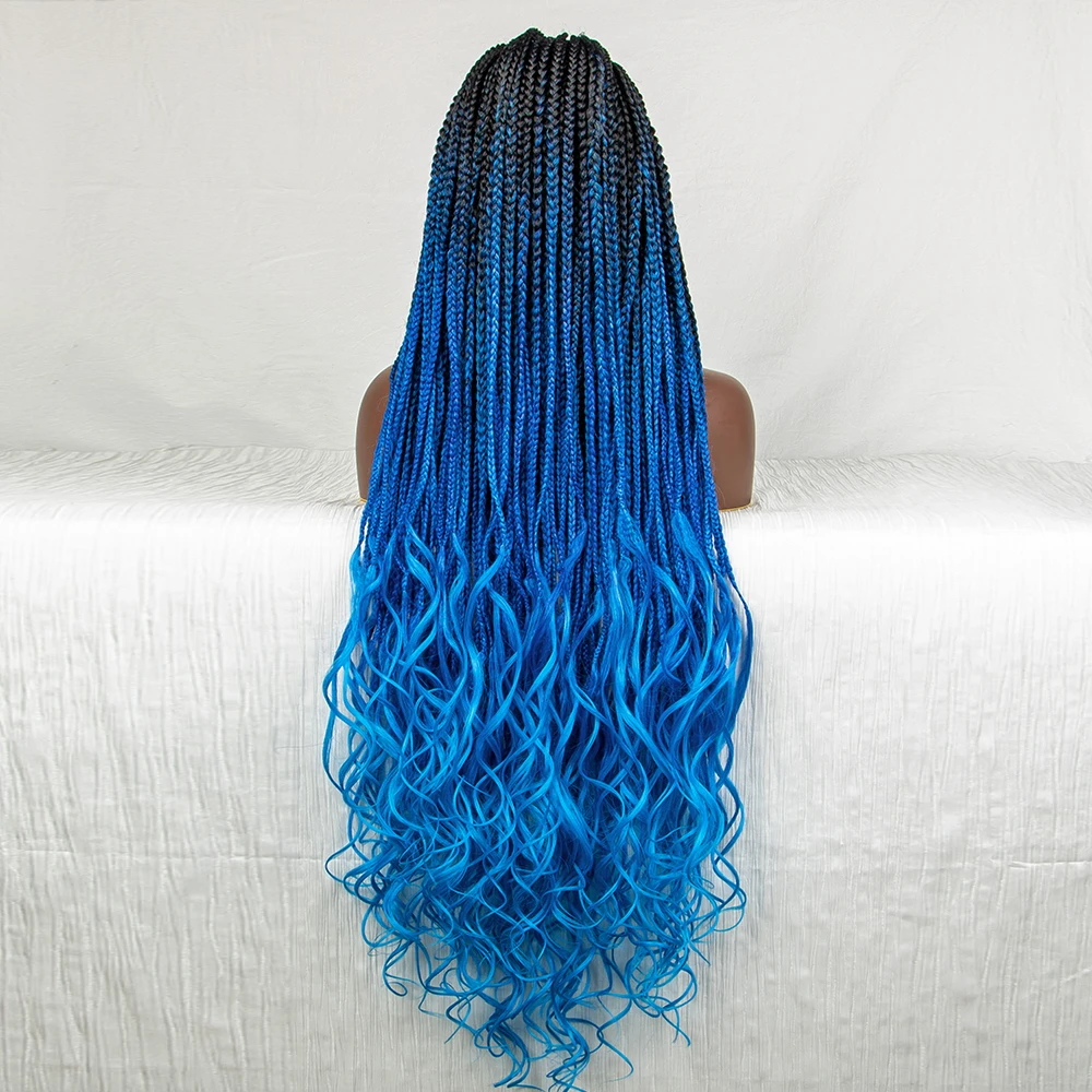 32 inches Synthetic Braided Wigs for Black Women 9X6 Lace Front Box Braided Wigs Knotless with Baby Hair Ombre Blue Afro Wigs