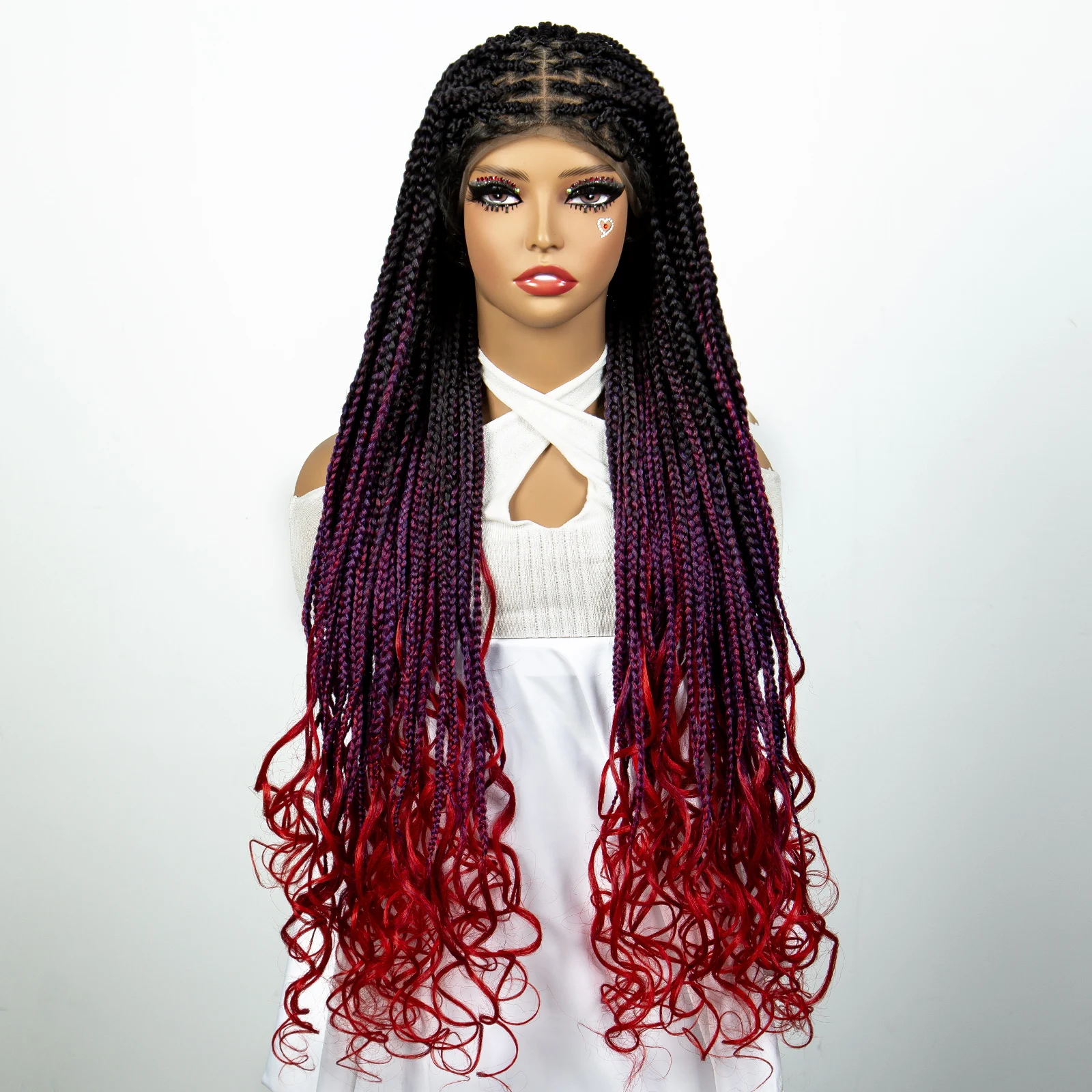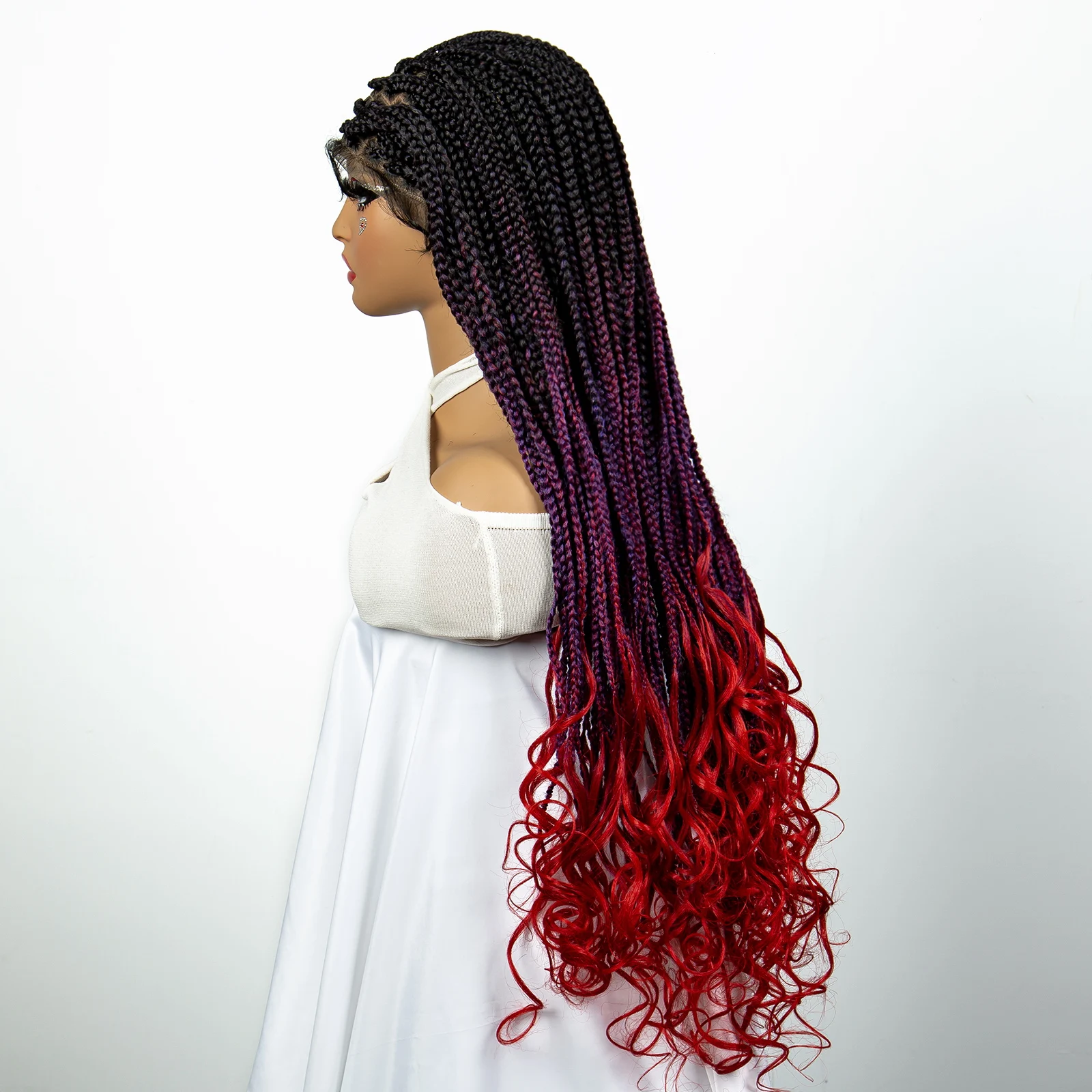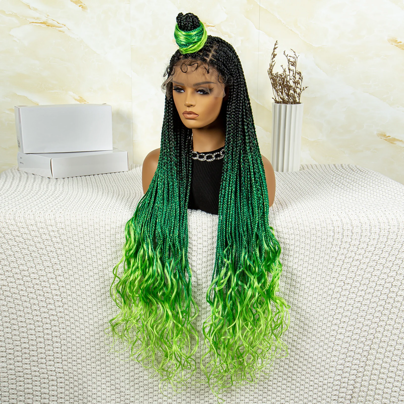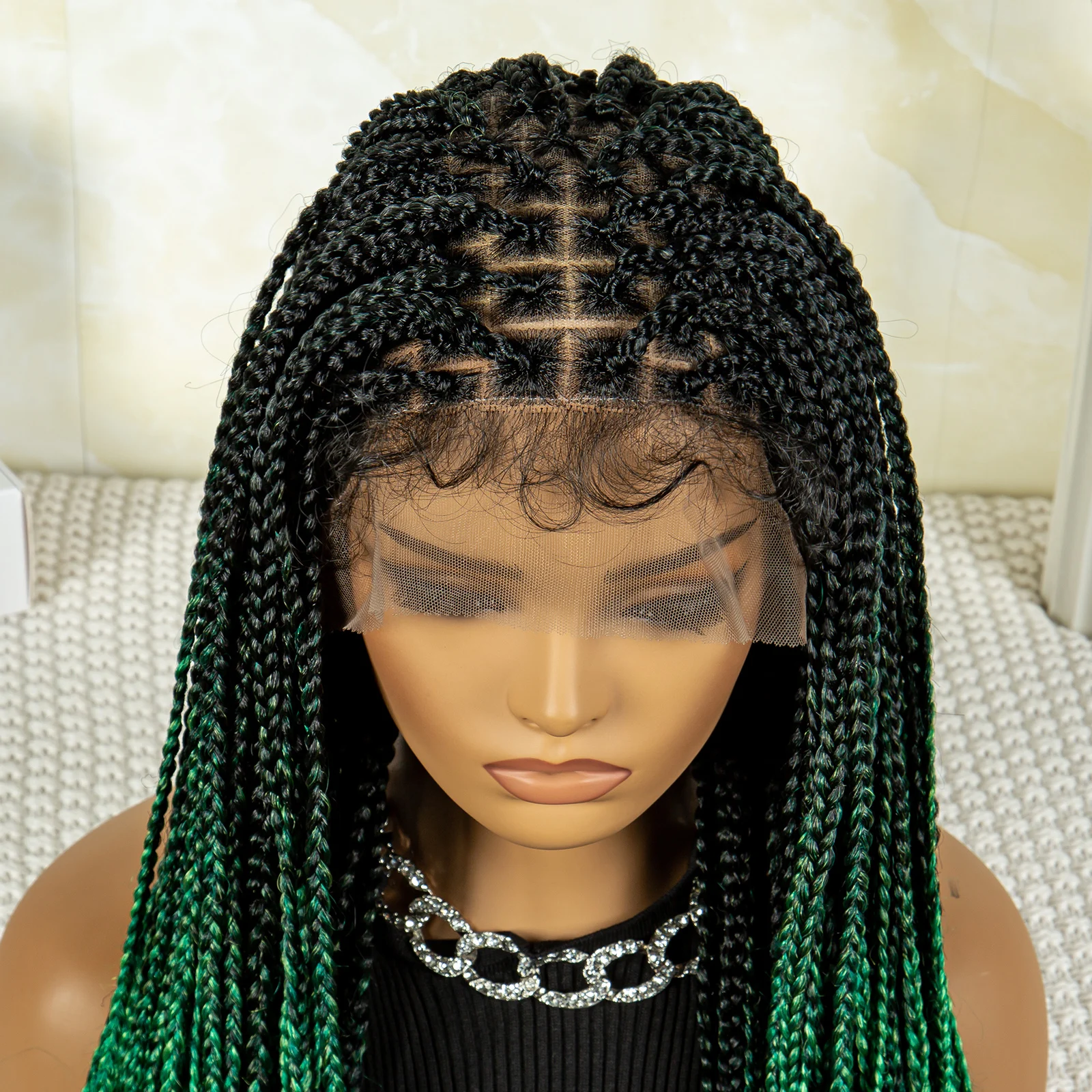 32 inches Synthetic Braided Wigs for Black Women 9X6 Lace Front Box Braided Wigs Knotless with Baby Hair Ombre Blue Afro Wigs