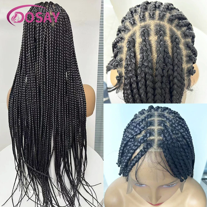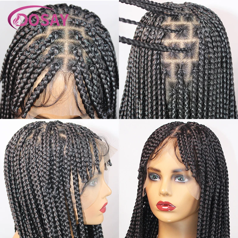 32" Synthetic Wig Dosay Front Bangs Knotless Box Braids Black Braid Braided Wigs Lace Front Wig For Black Women Durable Hair