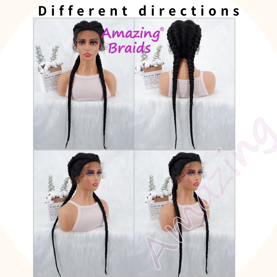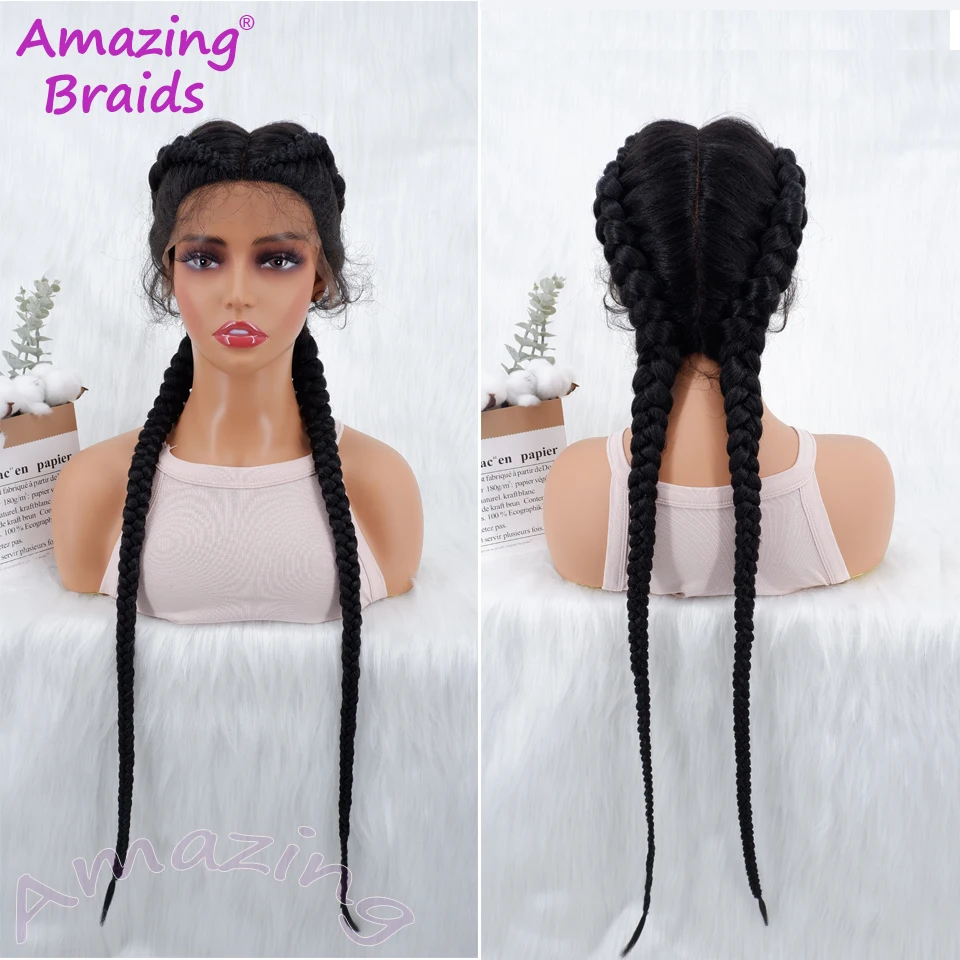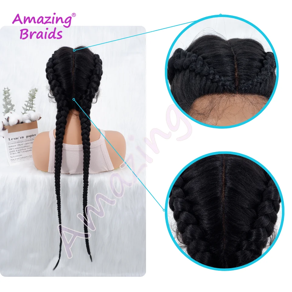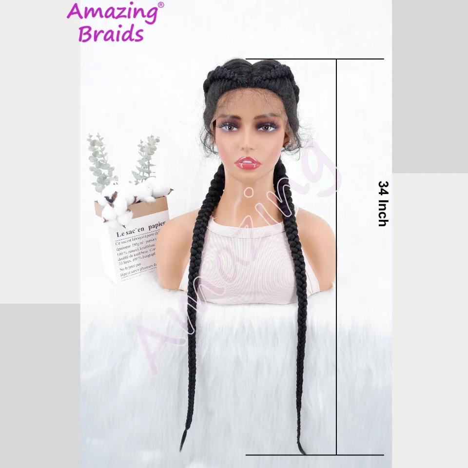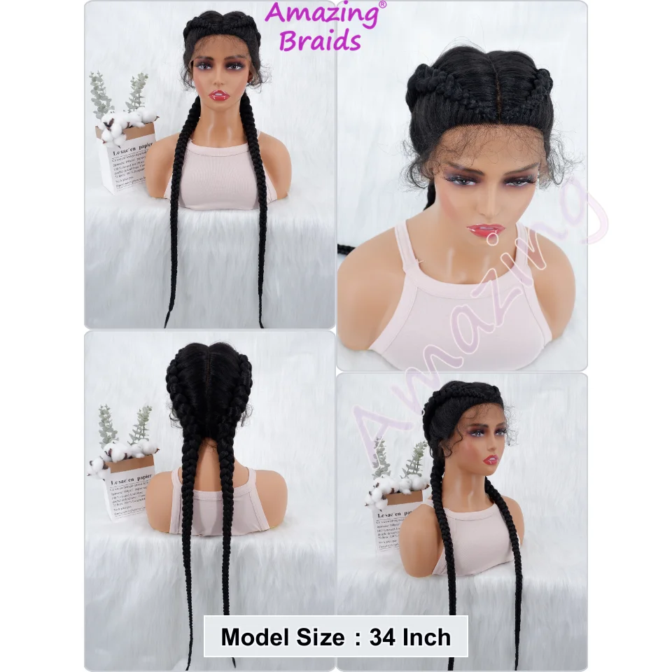 34 Inches Long Lace Front Synthetic Braided Wigs Lace Front Dutch Twins Braids Wig With Baby Hair for Black Women