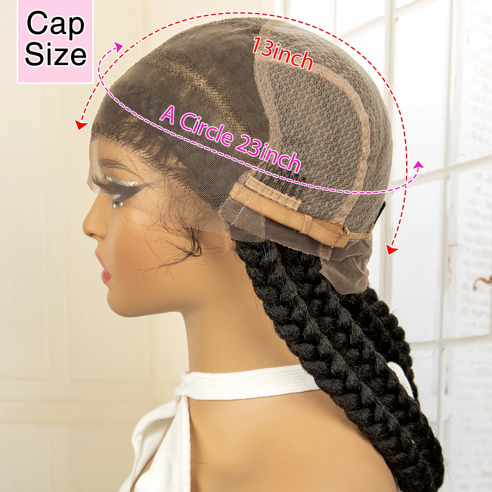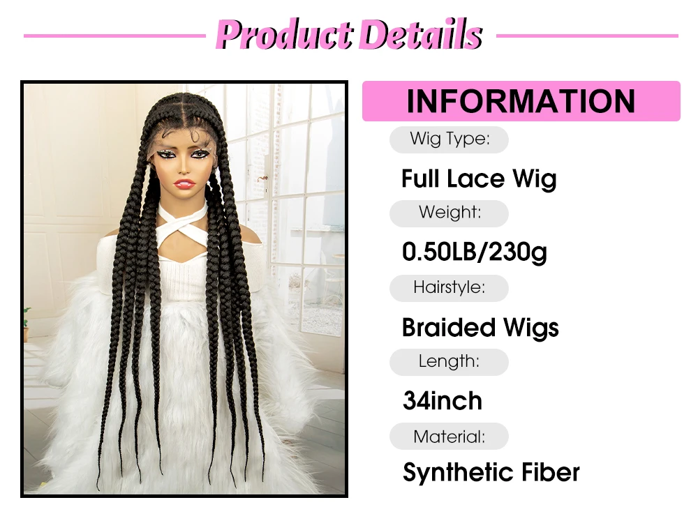 34 inches Synthetic Full Lace Braids Wig for Black Women Cornrow Braided Wig Lace Frontal Box Braiding Wig with Baby Hair