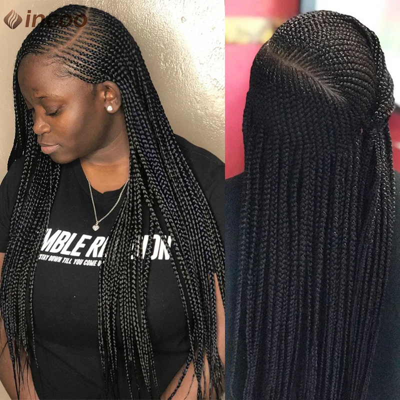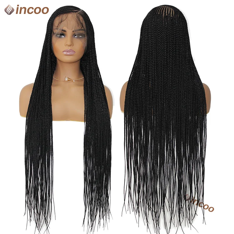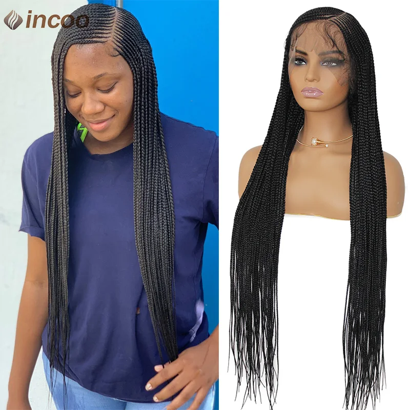 36'' Braided Wigs For Black Women Full Lace Front Knotless Box Braided Wig With Baby Hair Synthetic Side Part Cornrow Braid Wigs
