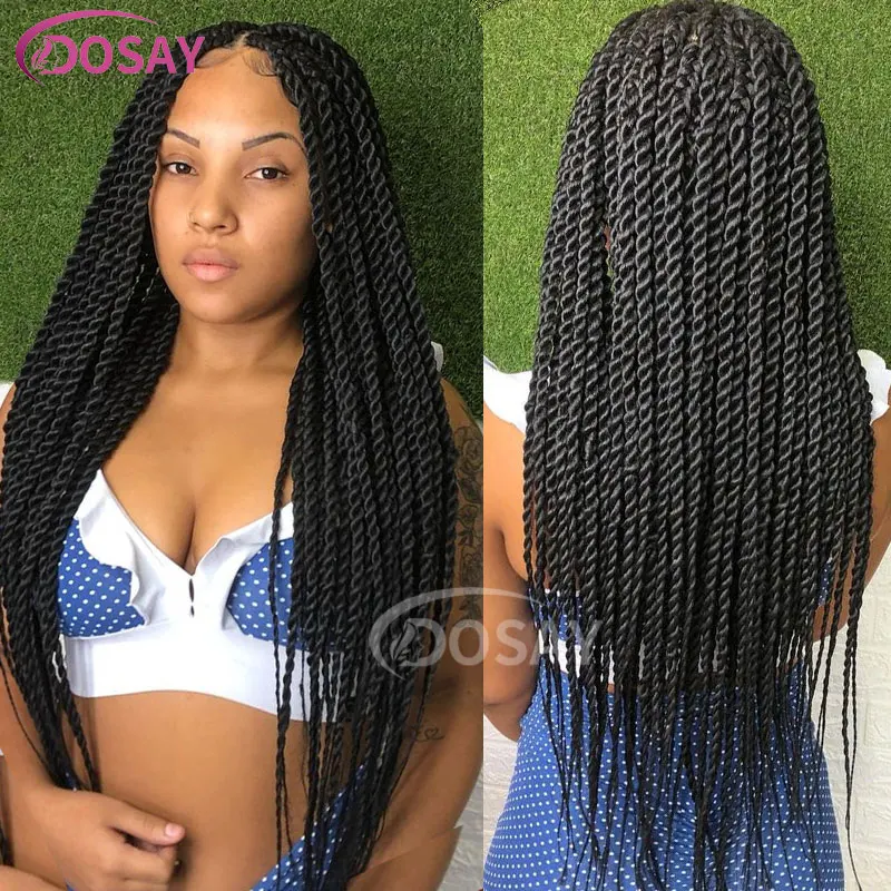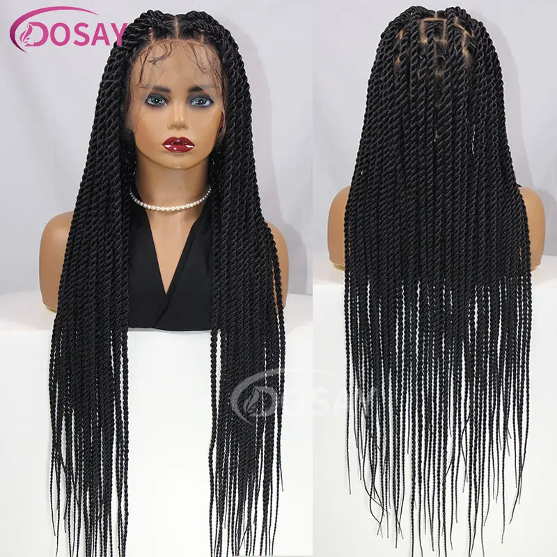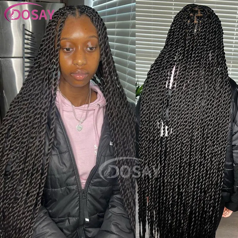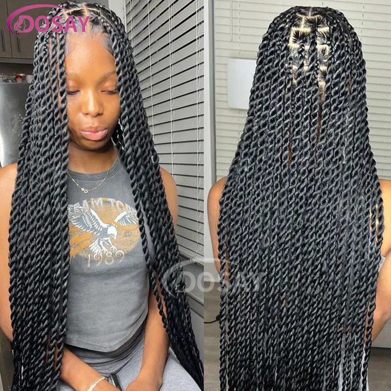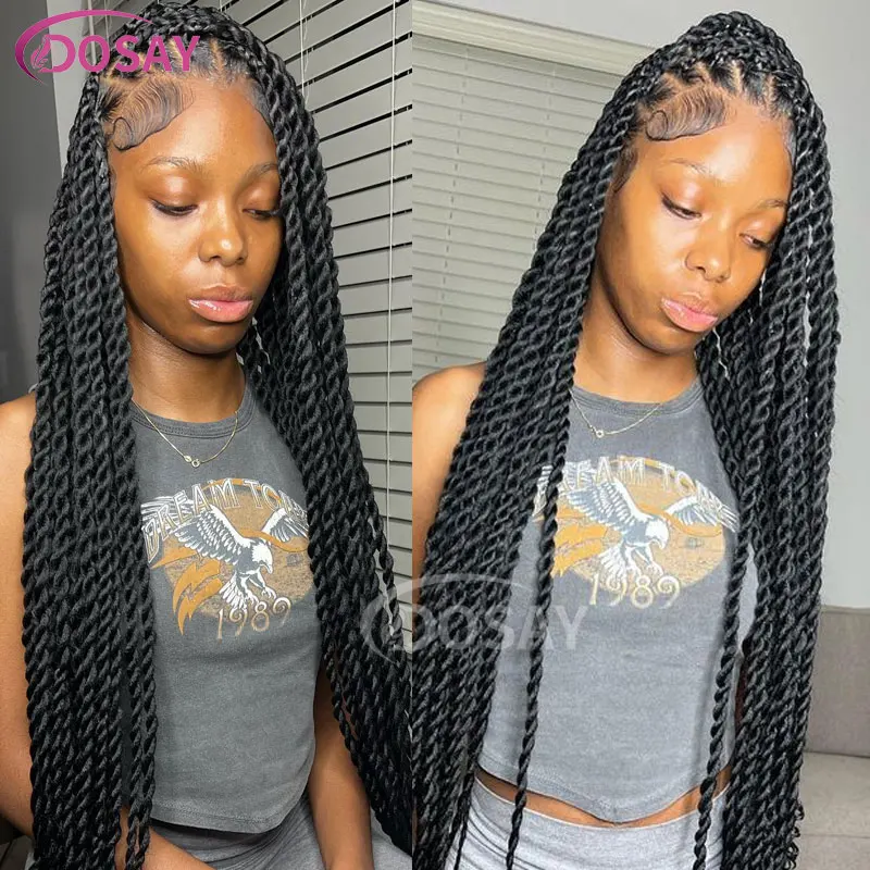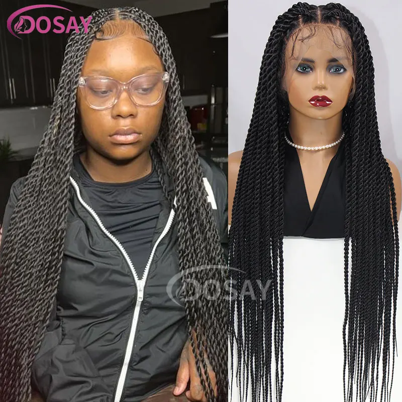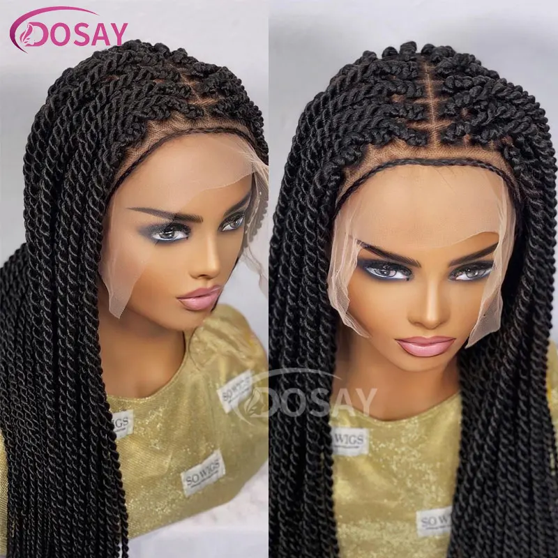 36" Full Double Lace Front Square Knotless Passion Twist Senegalese Twist Braids Wig With Baby Hair For Women Spring Twisted Wig