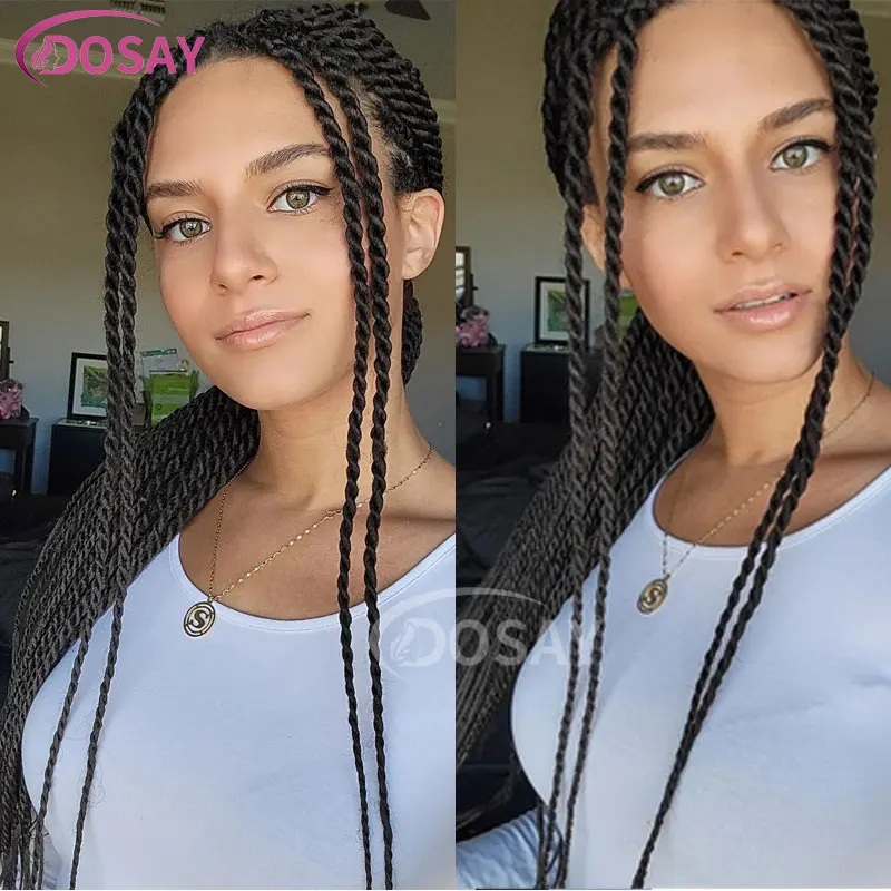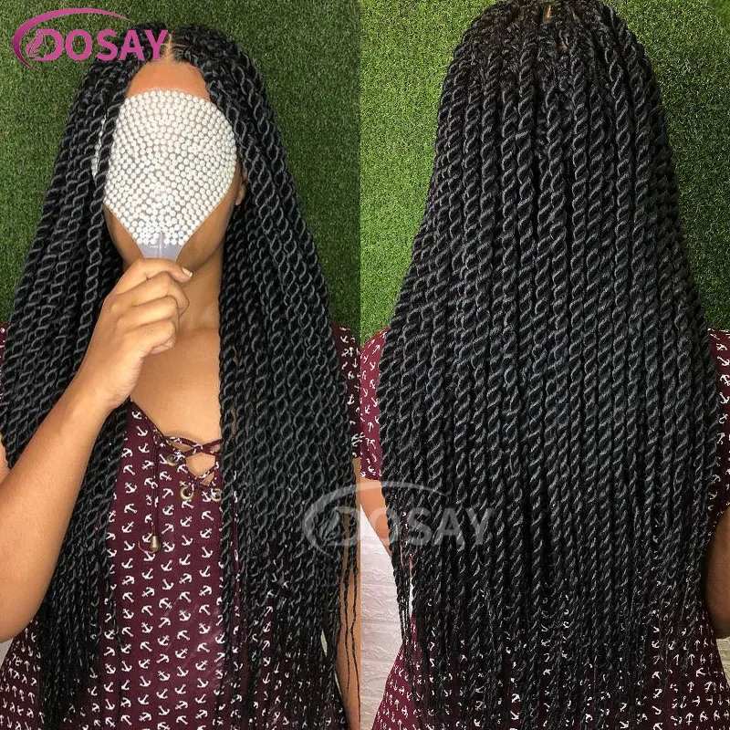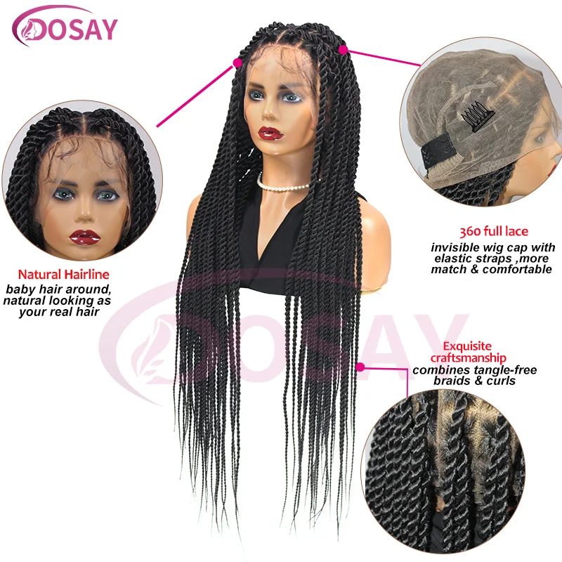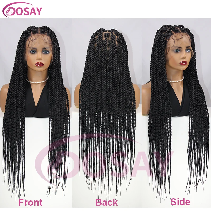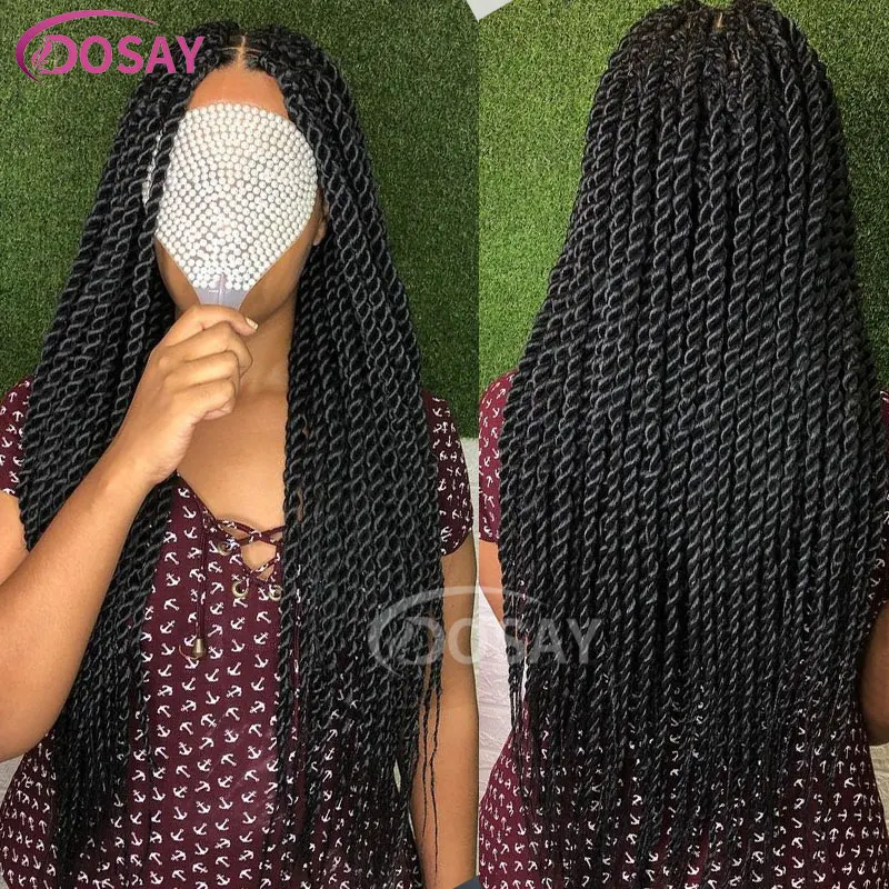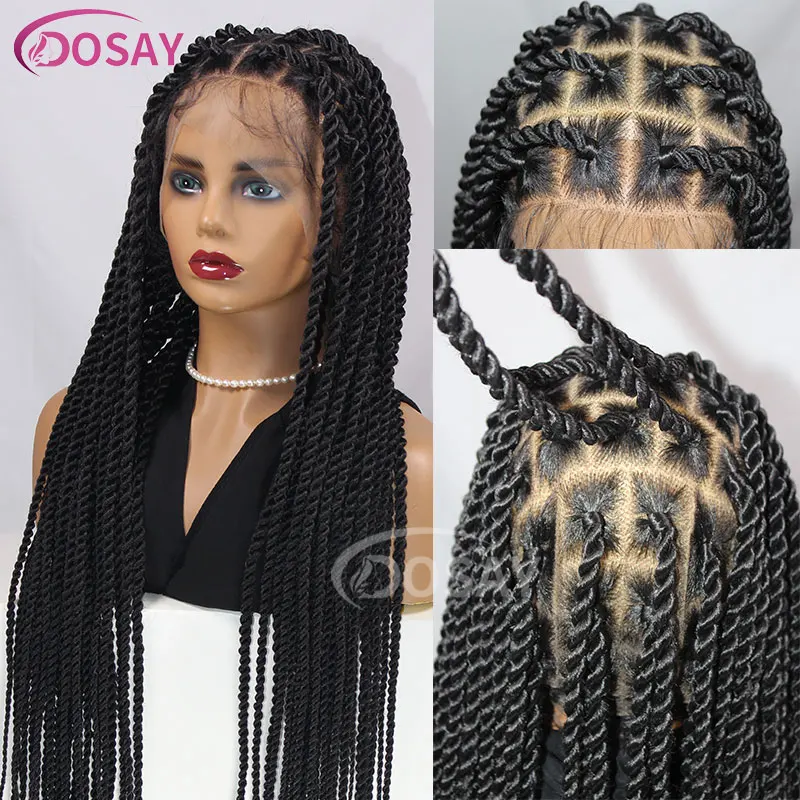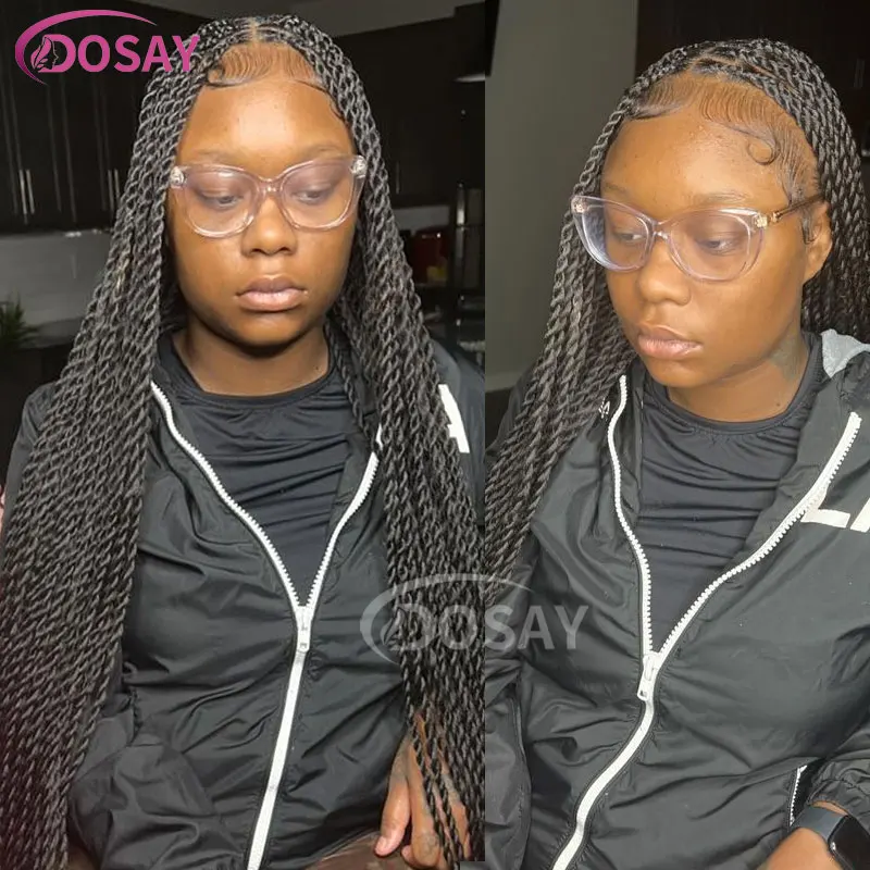36" Full Double Lace Front Square Knotless Passion Twist Senegalese Twist Braids Wig With Baby Hair For Women Spring Twisted Wig