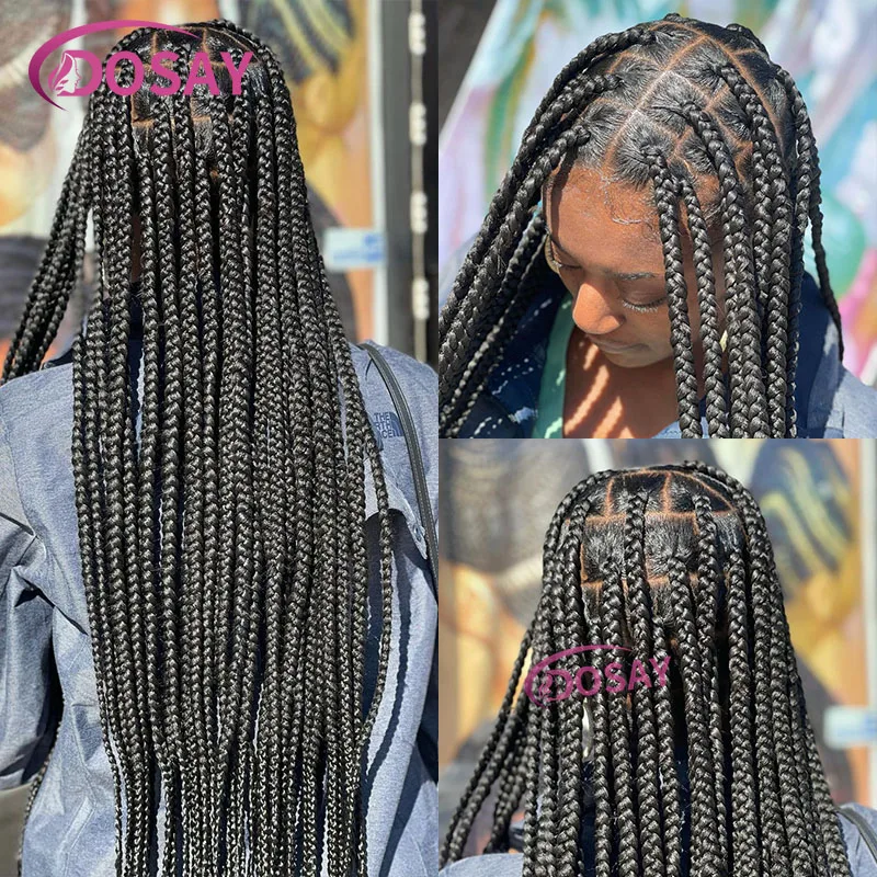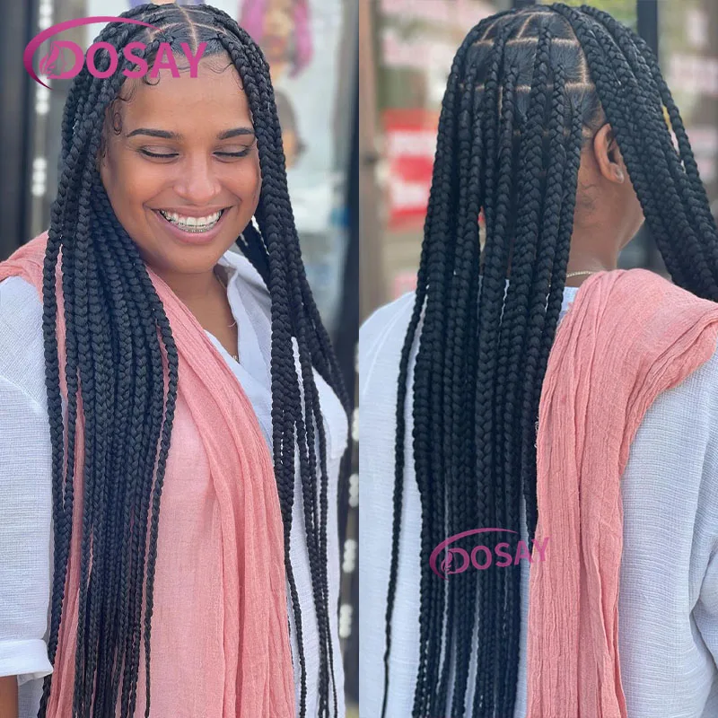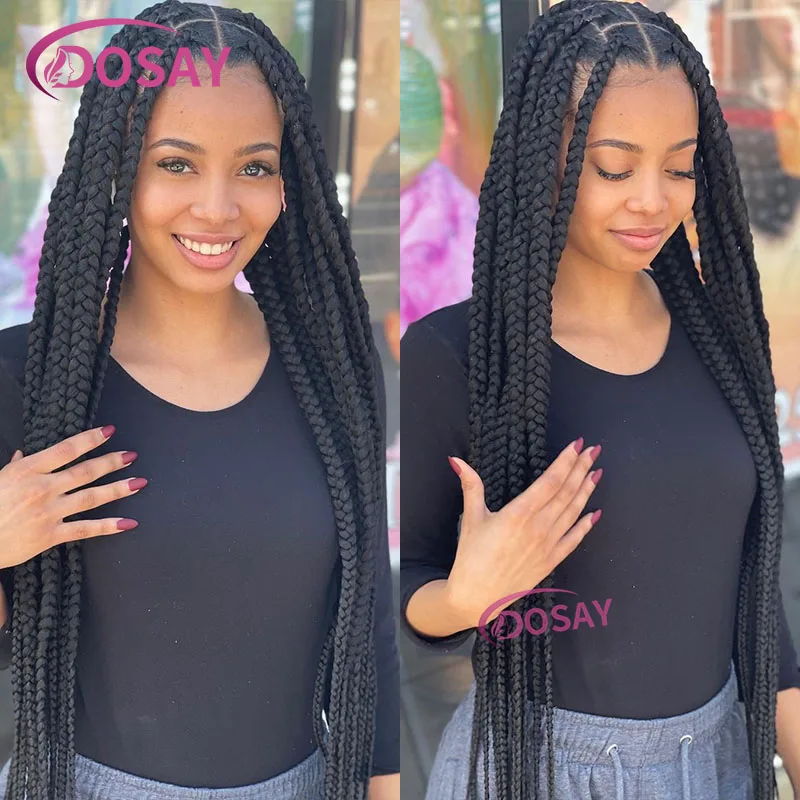 36" Full Lace Front Wig Box Braided Wigs With Baby Hair Big Square Knotess Lace Front Wig Synthetic Braided Wigs For Black Women