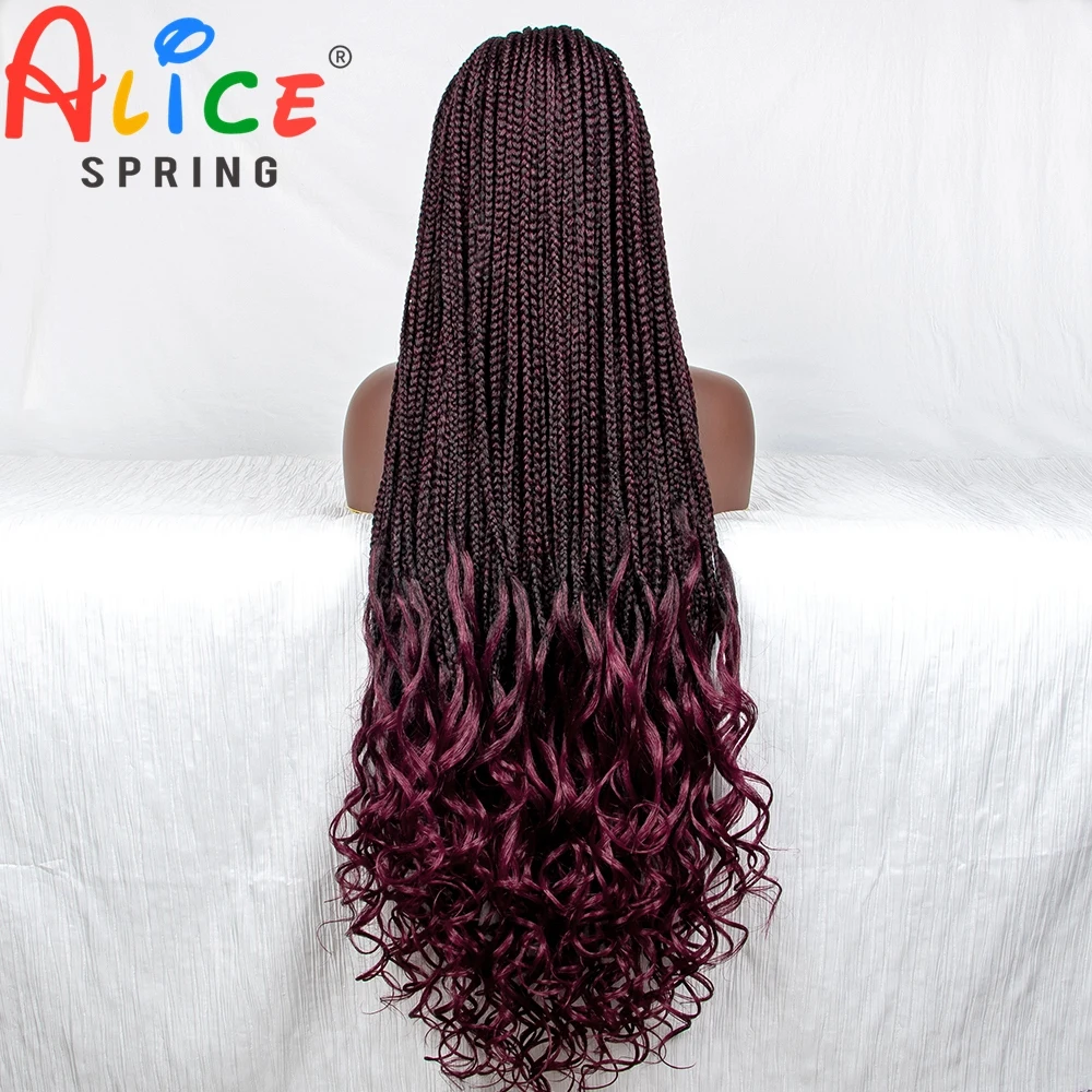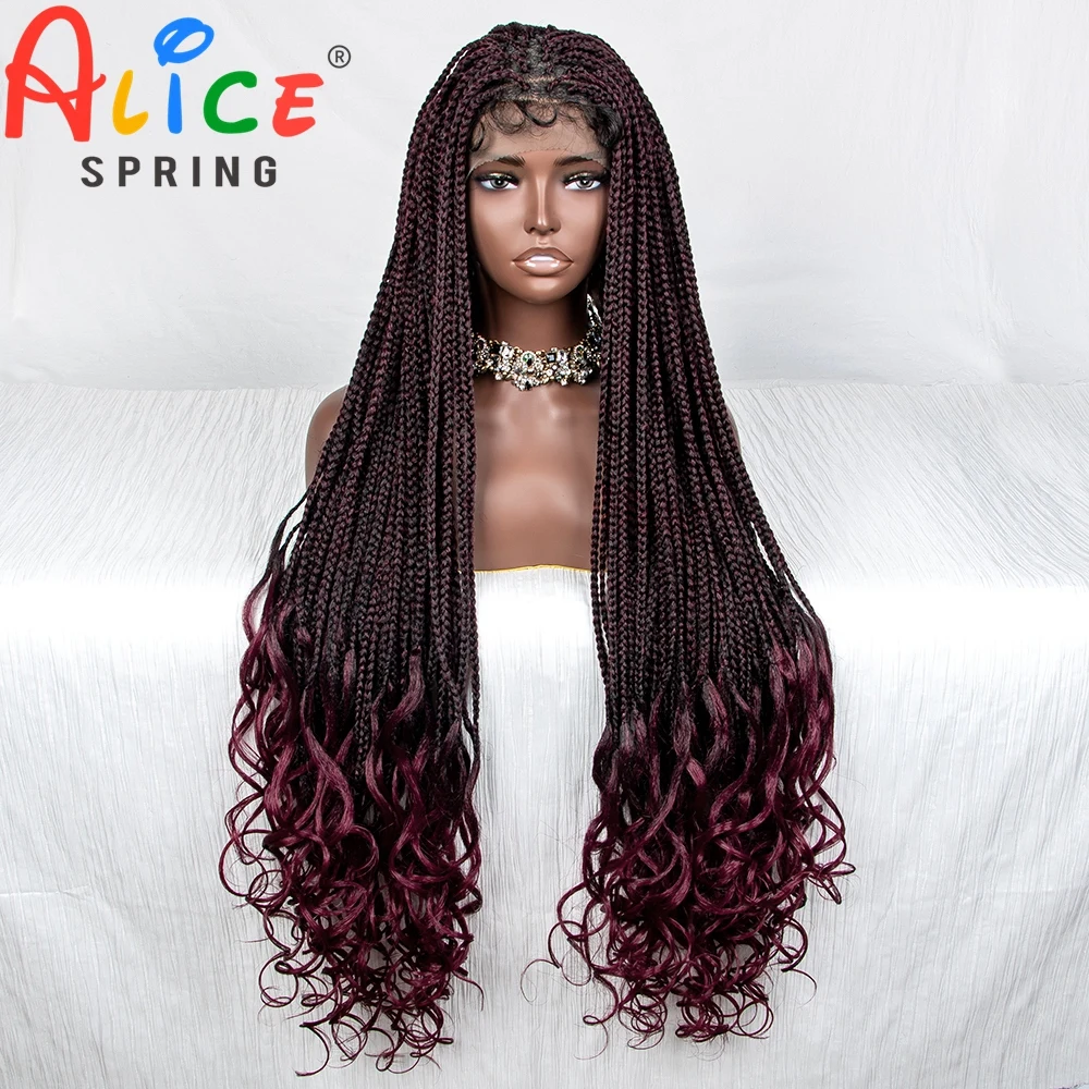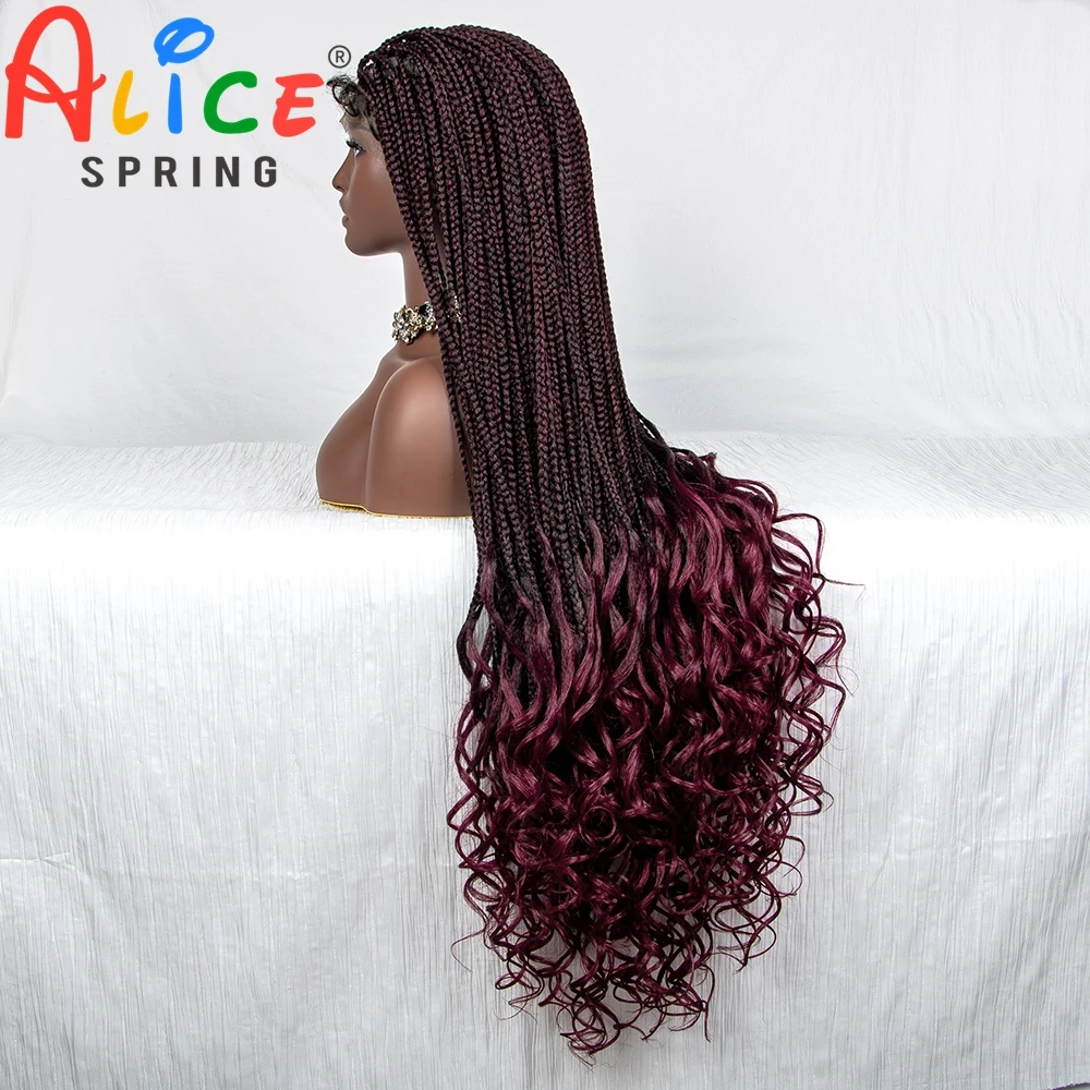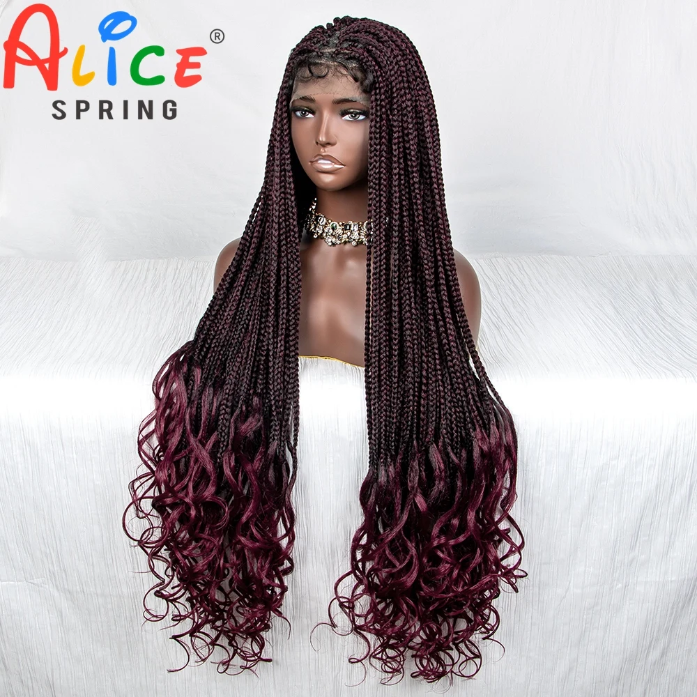 36 Inch 1B-Bug Synthetic Braided Lace Front Wig Crochet Braid Lace Wig with Baby Hair for Black Women Knotless Box Braiding Hair