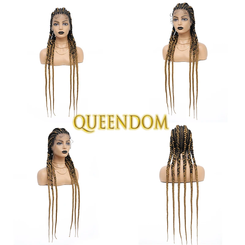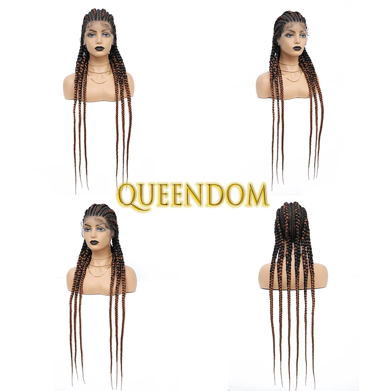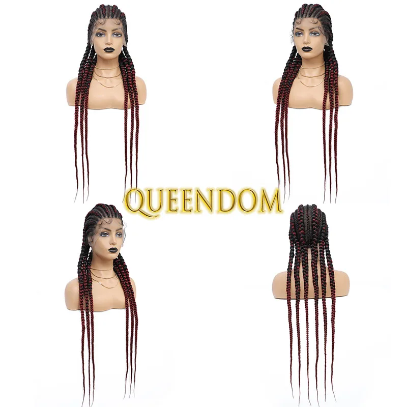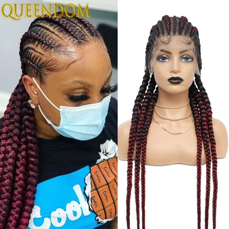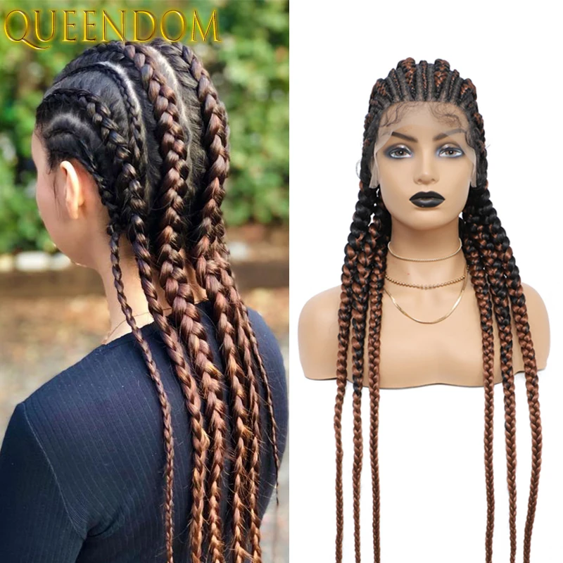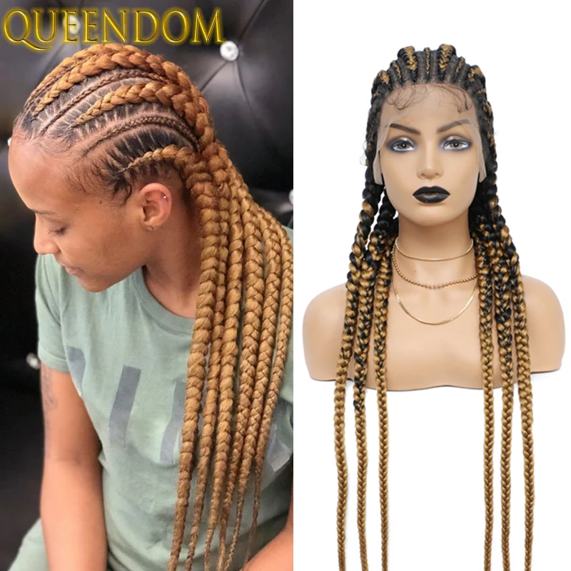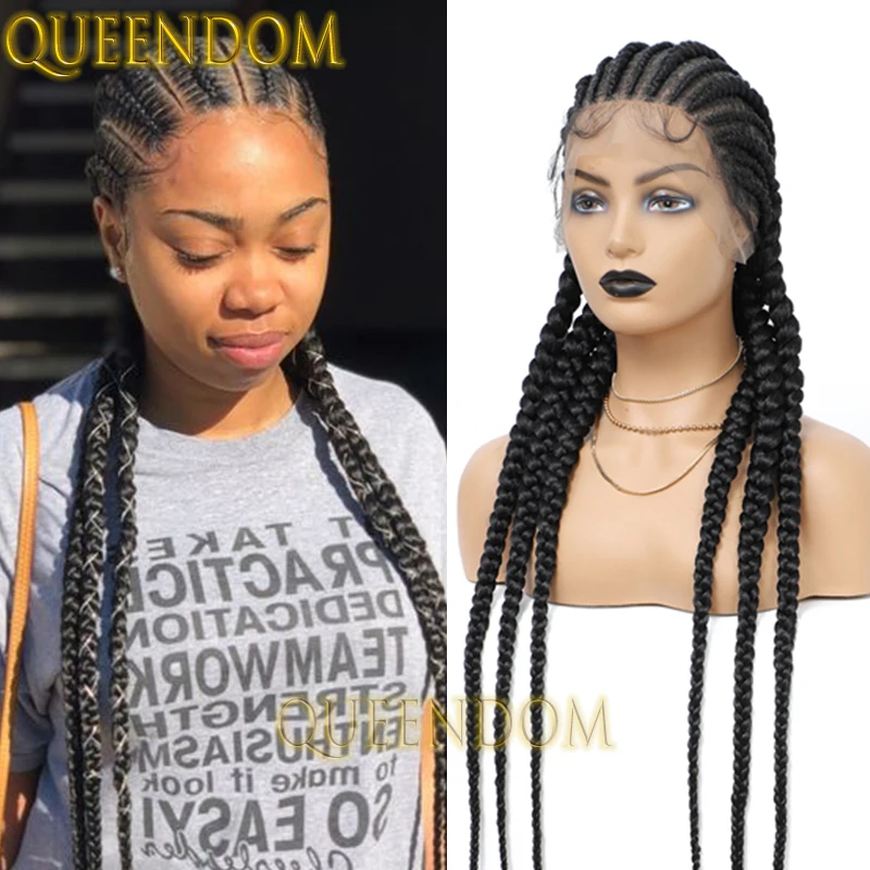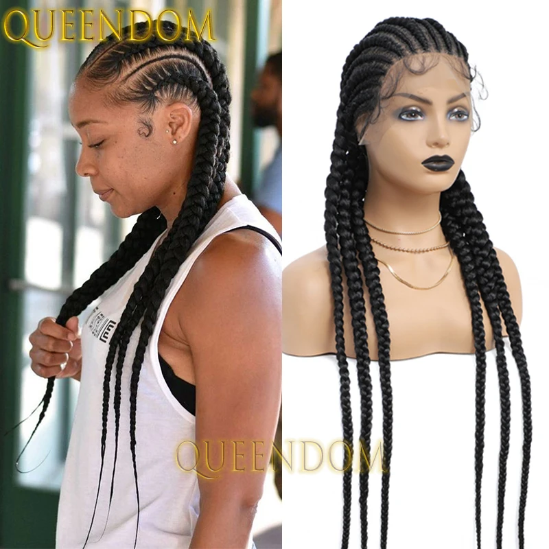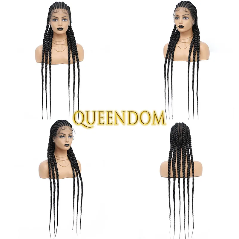 36 Inch Full Lace Jumbo Cornrow Plait Braid Wig Knotless 360 Lace Frontal Wig with Baby Hair Synthetic Glueless Box Braided Wig