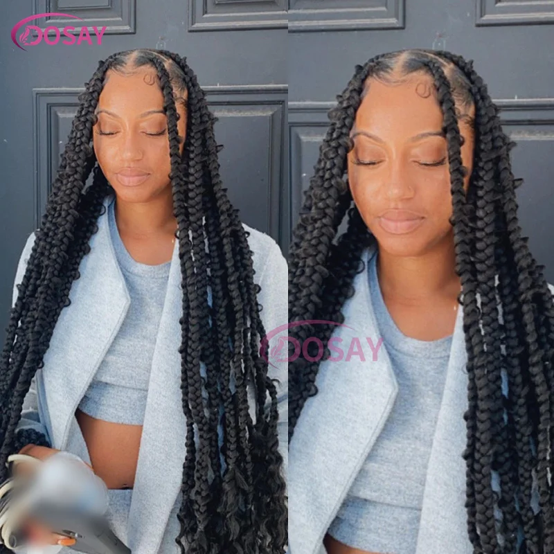 36 Inch Jungle Braided Wig Synthetic Butterfly Braids Full Lace Wigs Goddess Locs Wig Pre-Plucked Baby Hair Box Braids Wig Dosay