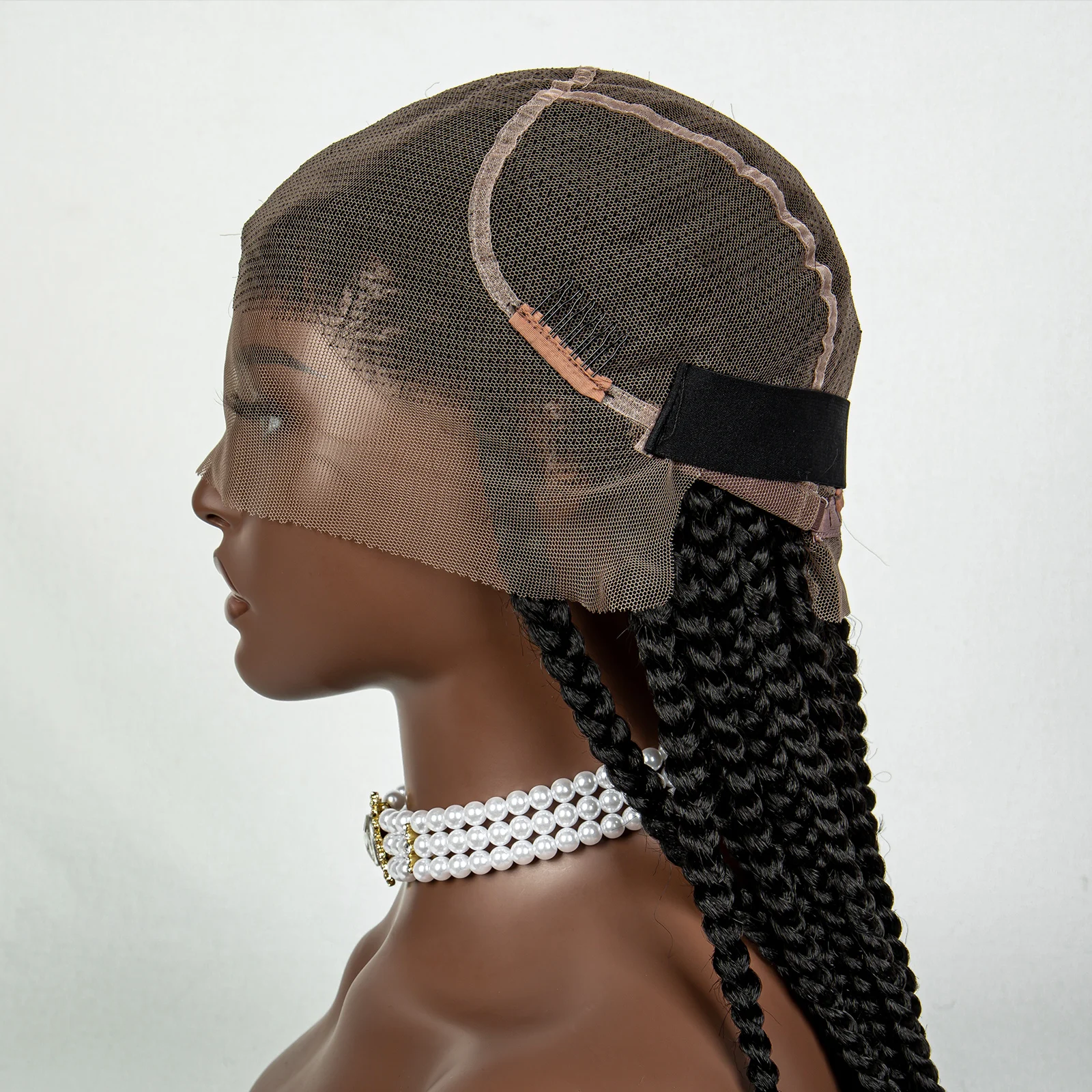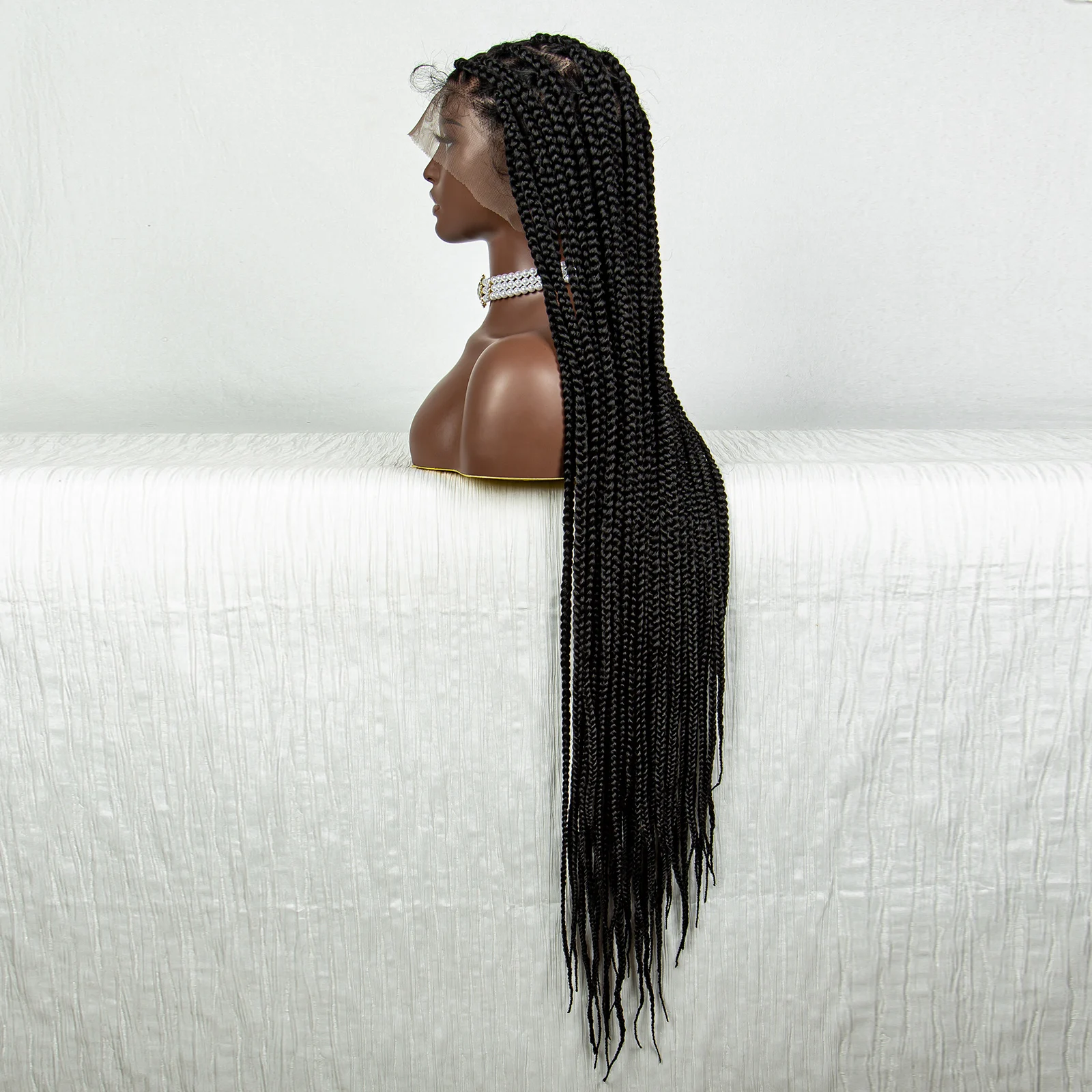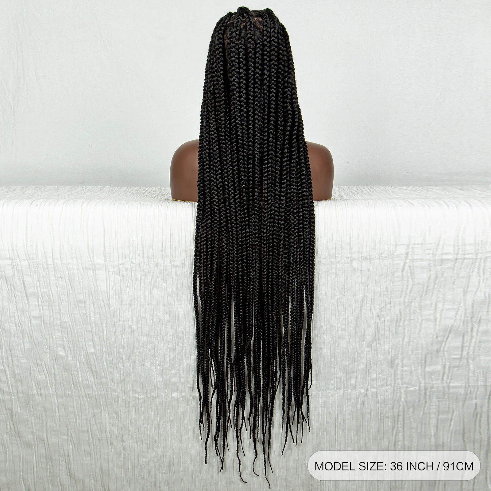 36 Inch Straight Synthetic Full Lace Braided Wigs Crochet Braiding Hair Wig with Baby Hair for Women Big Knotless Box Braids Wig