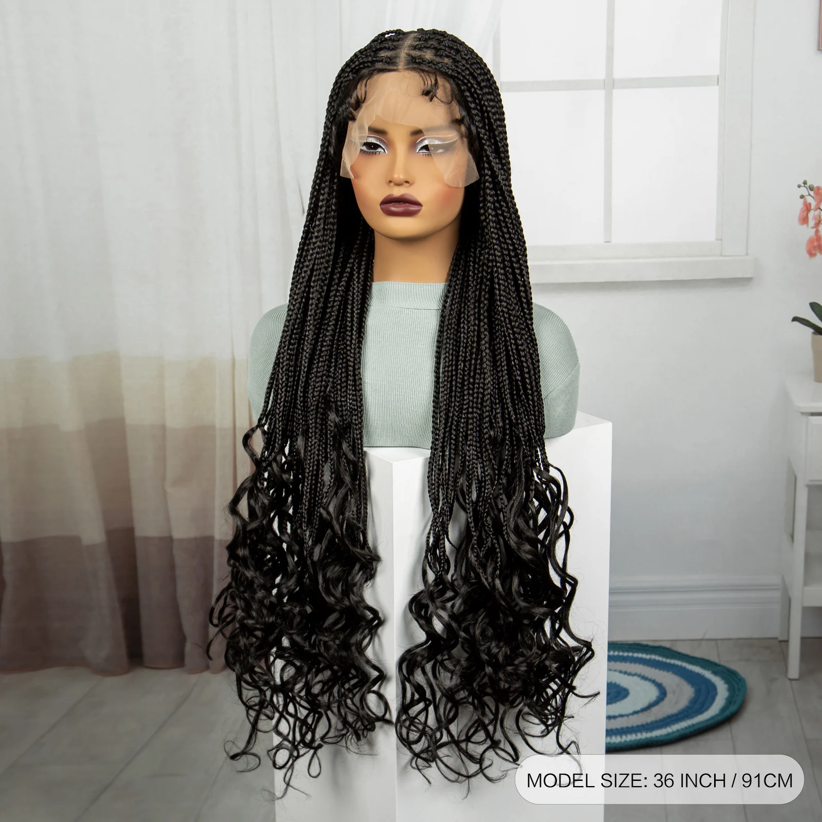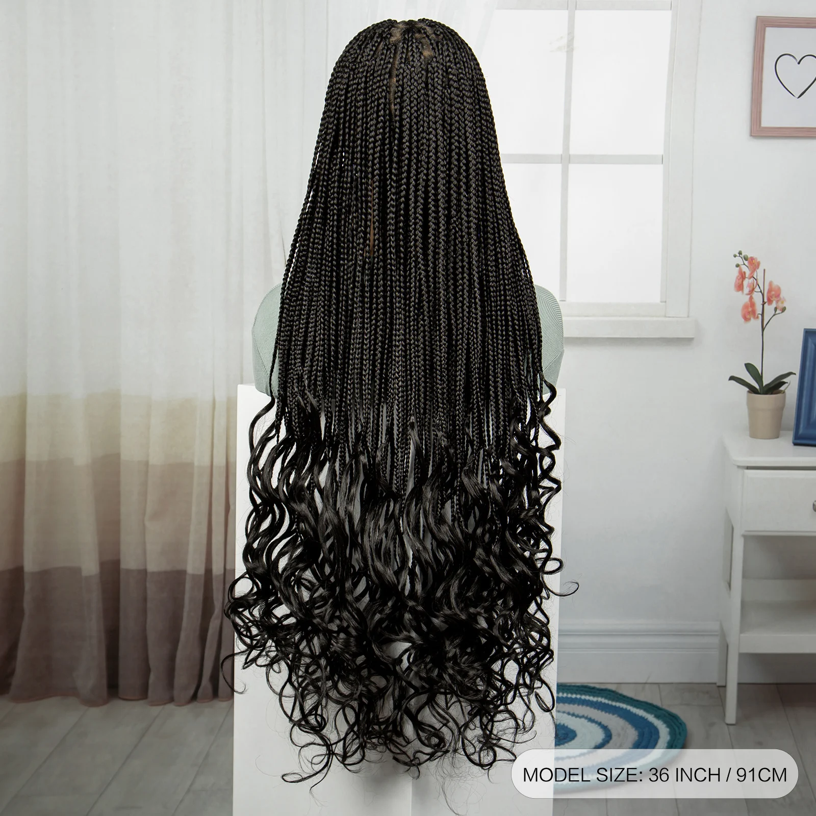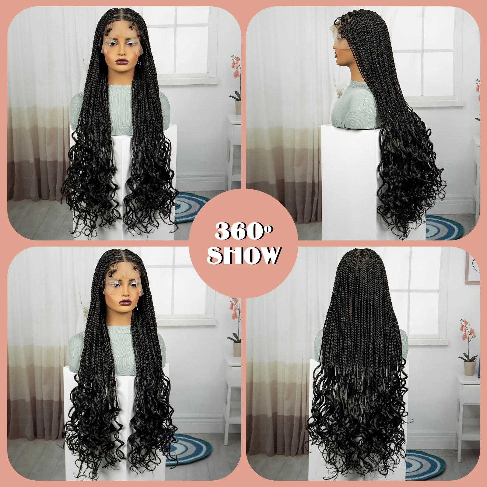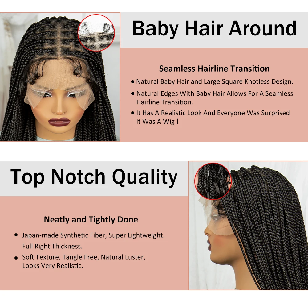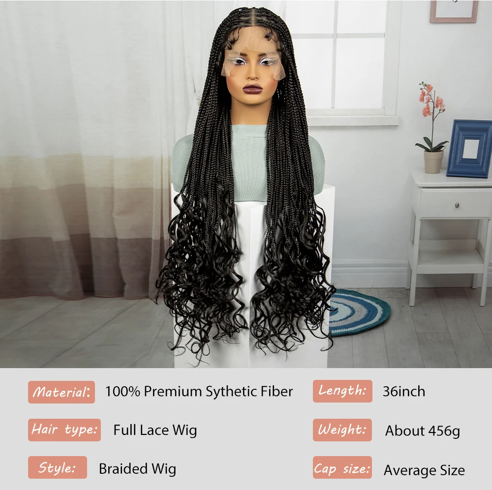 36 Inch Synthetic Full Lace Wigs Natural Knotless Box Braided Wigs Curly Lace Front Braided Wigs for Black Women with Baby Hair