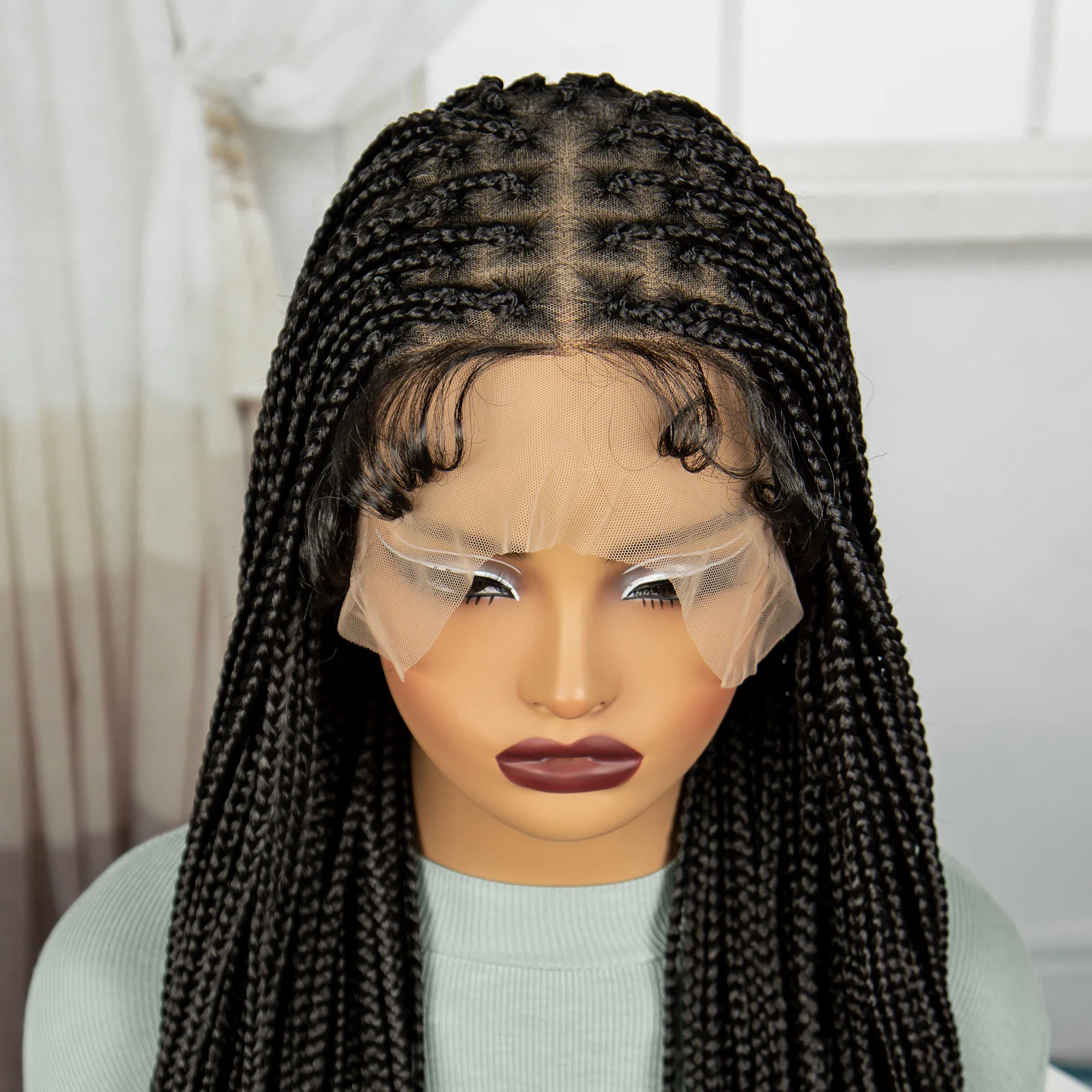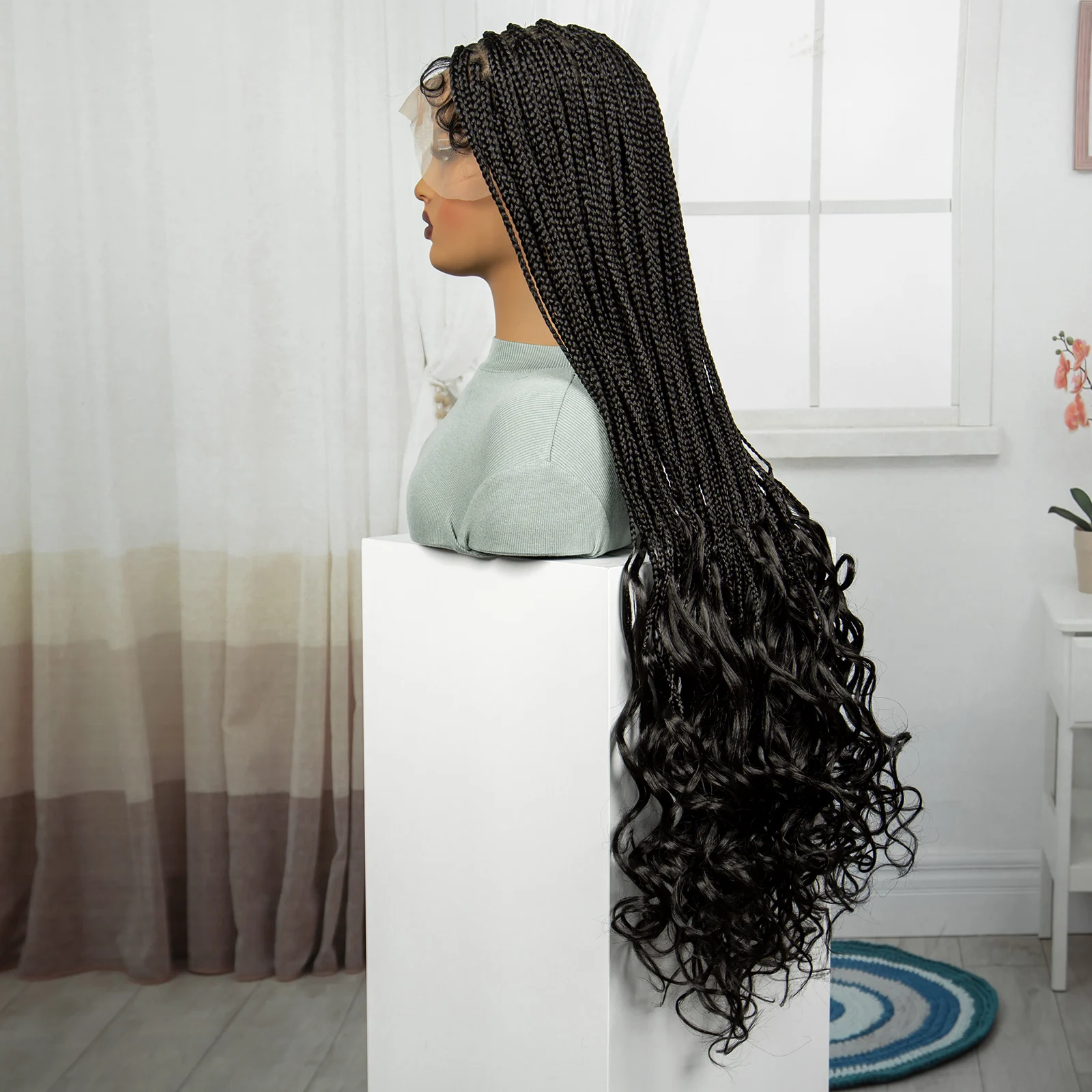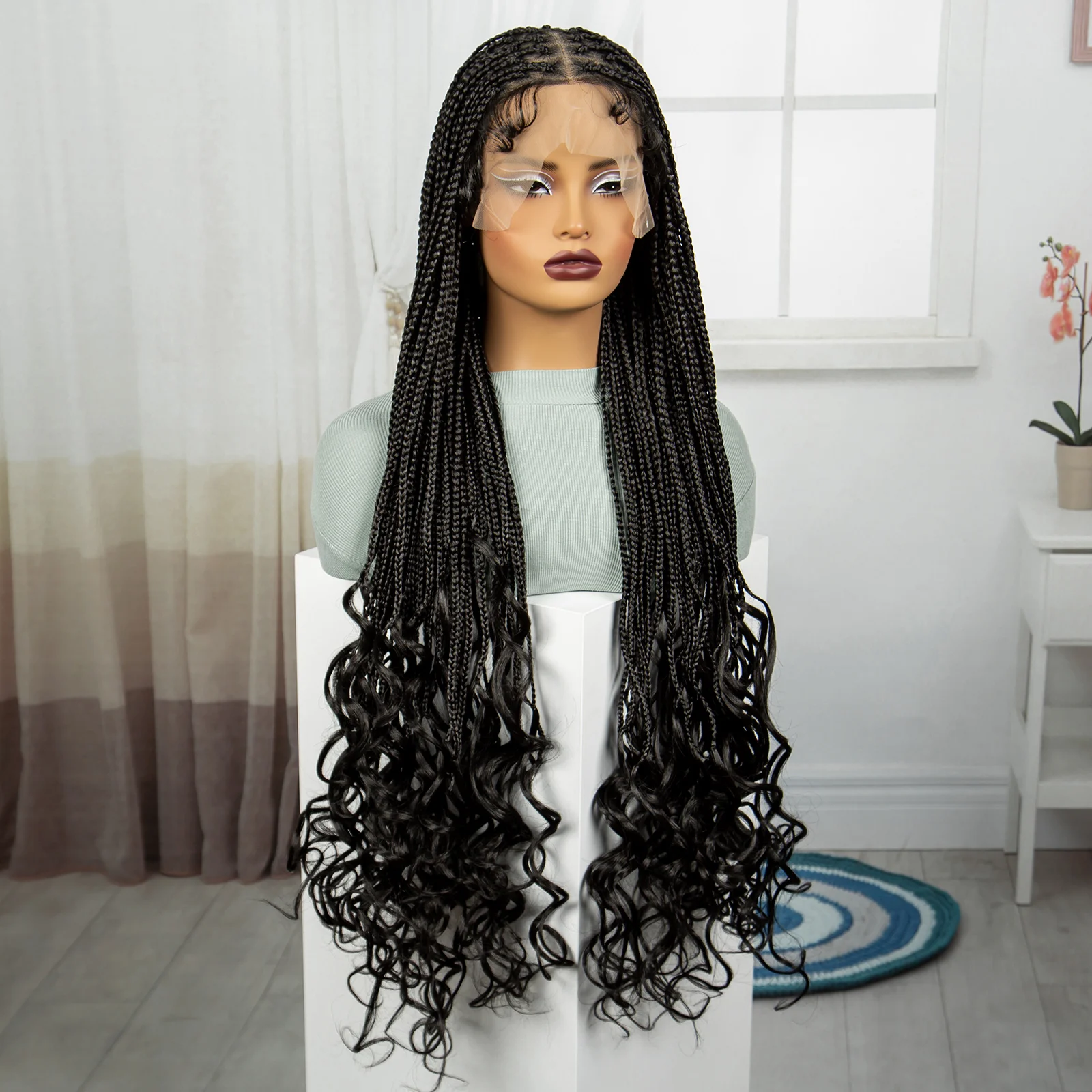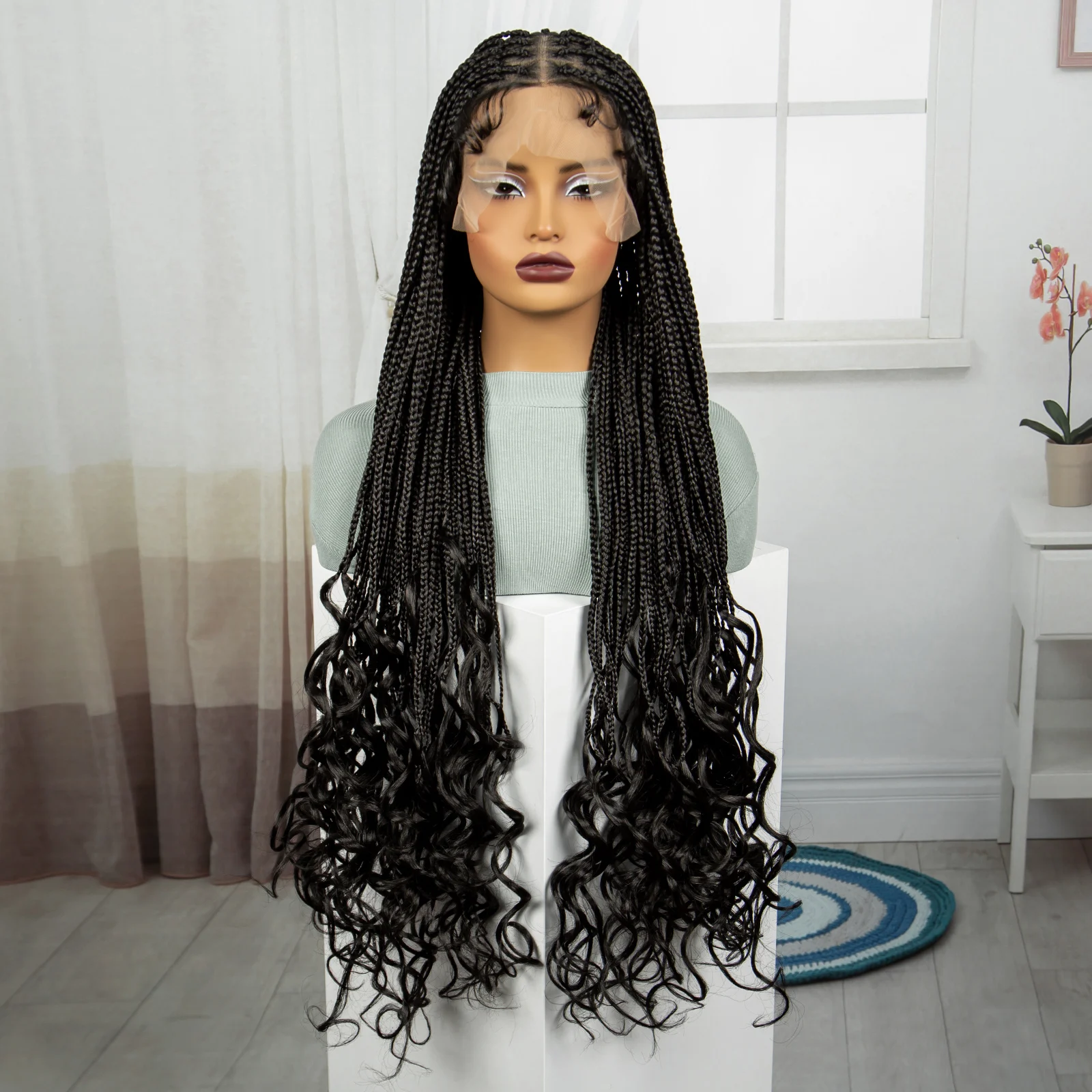 36 Inch Synthetic Full Lace Wigs Natural Knotless Box Braided Wigs Curly Lace Front Braided Wigs for Black Women with Baby Hair