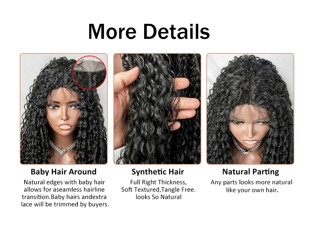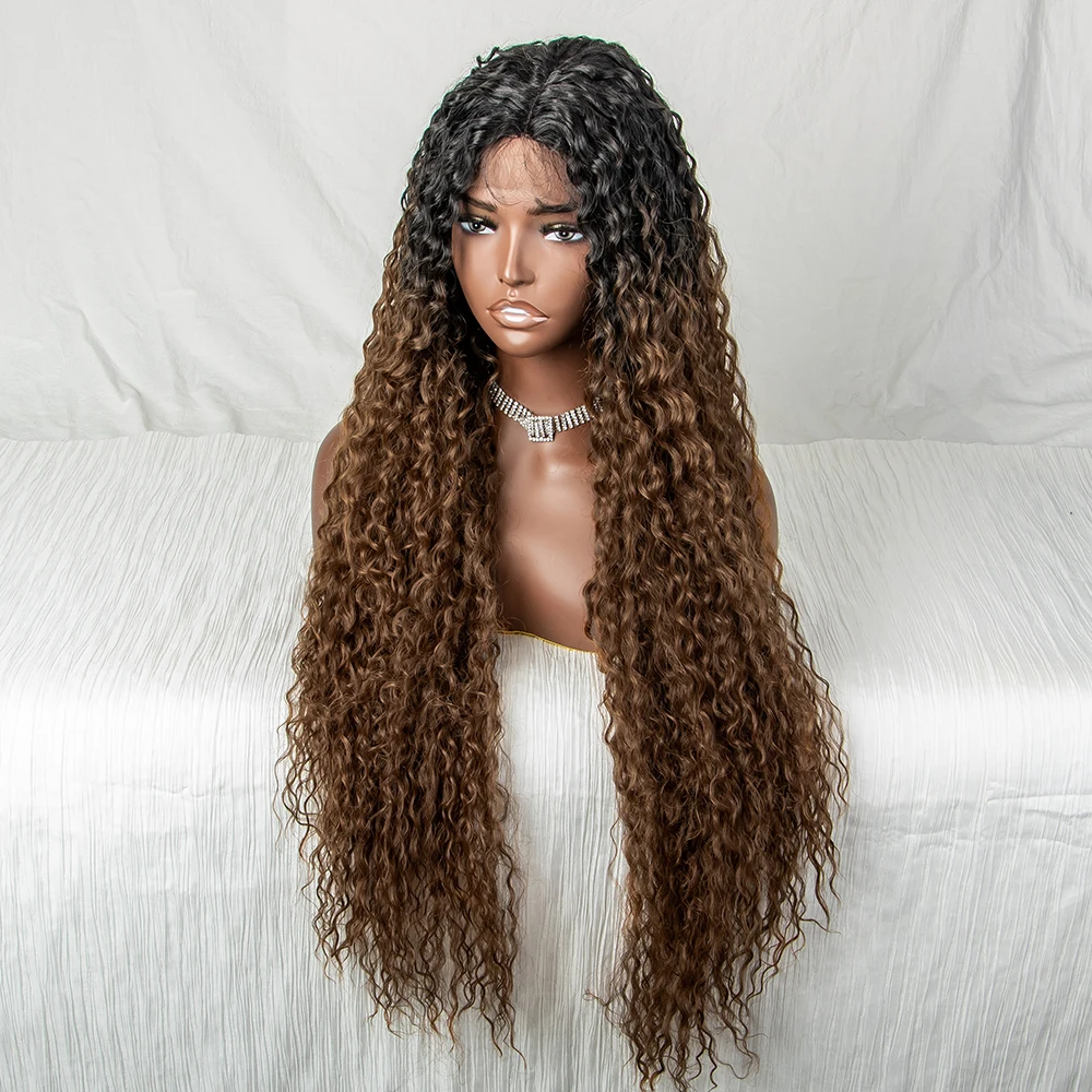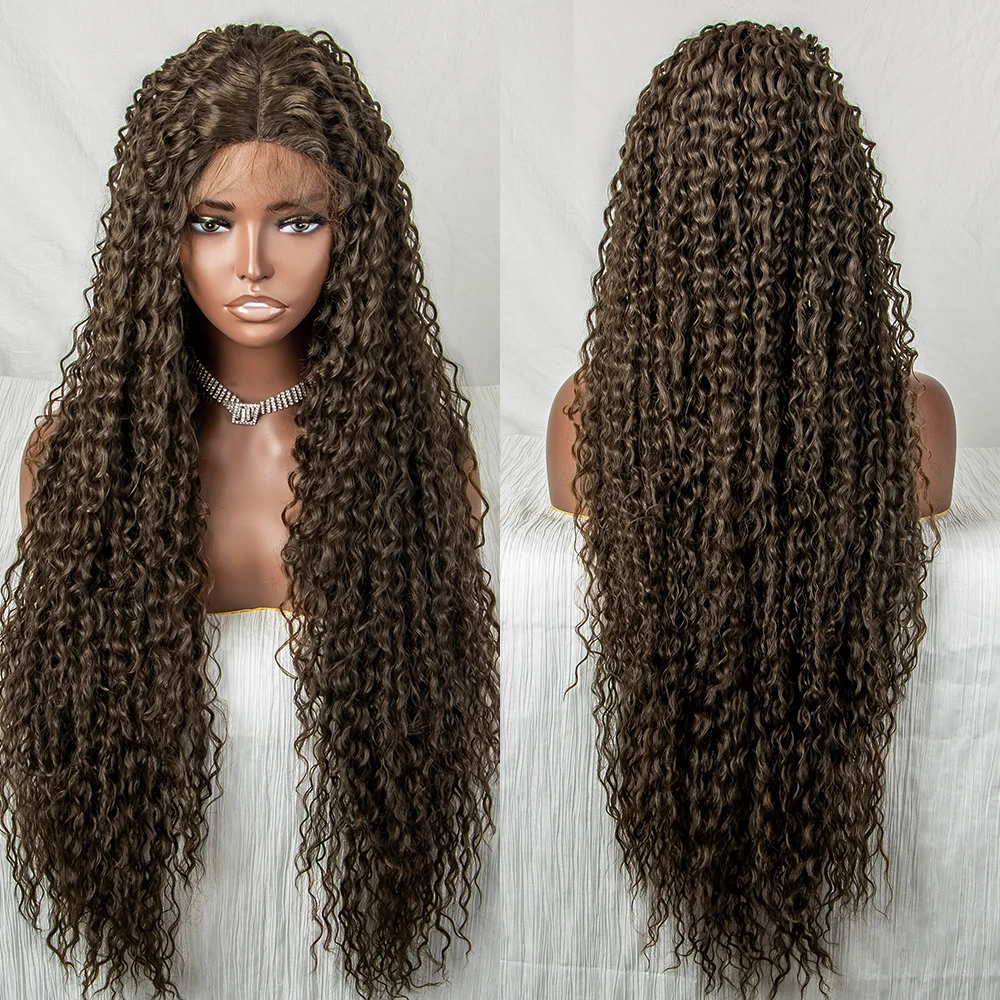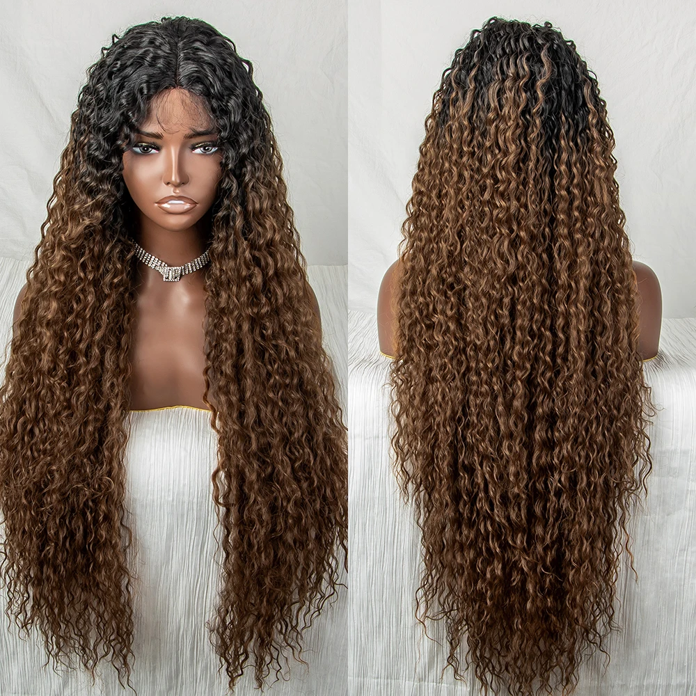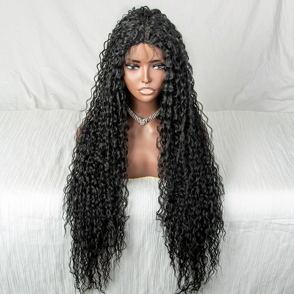 36 Inch Synthetic Lace Front Wigs Curly Hair Water Wave Synthetic Wigs Deep Wave front Wigs Synthetic Lace Wig Afro Black Women
