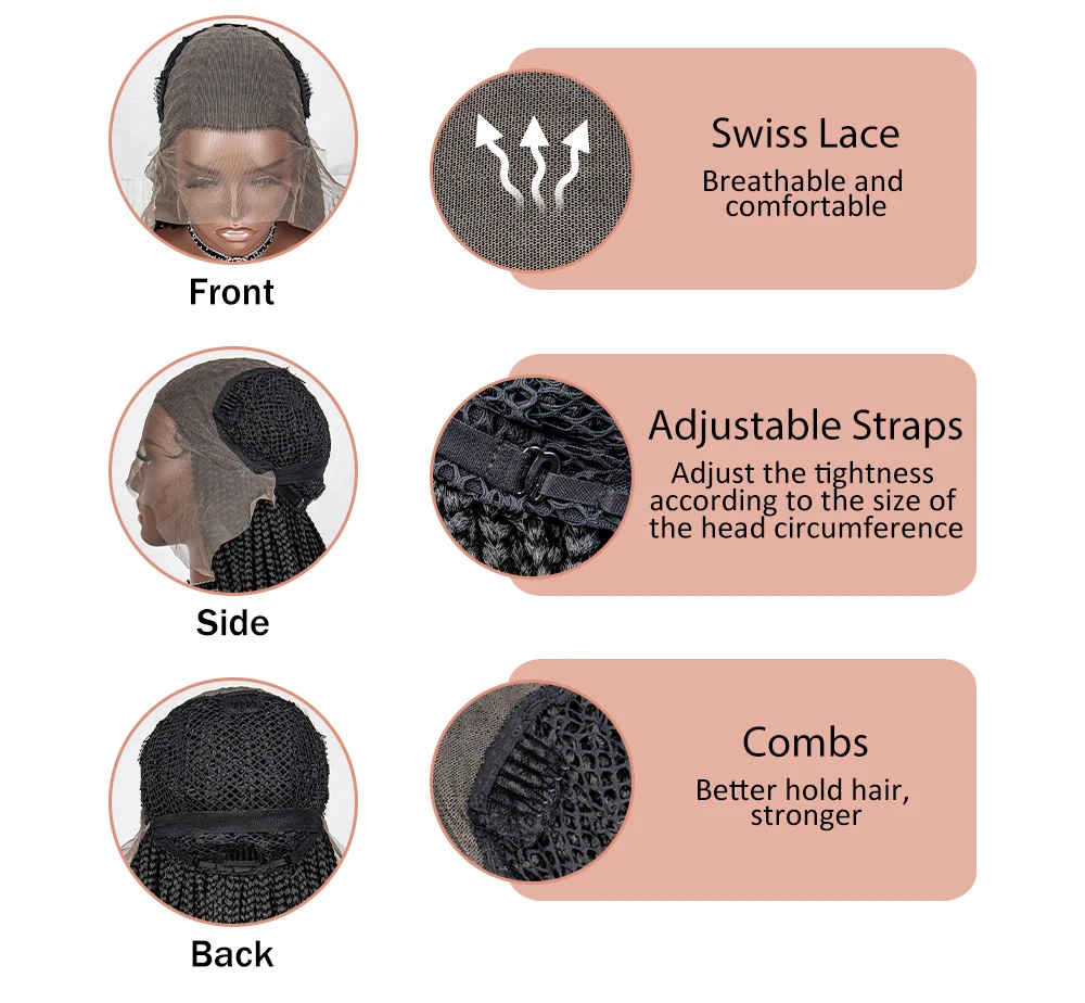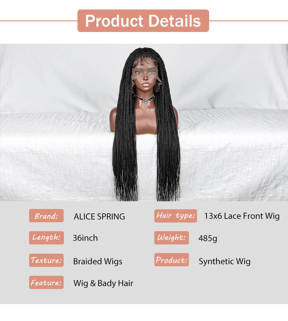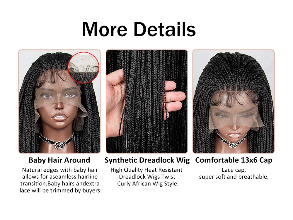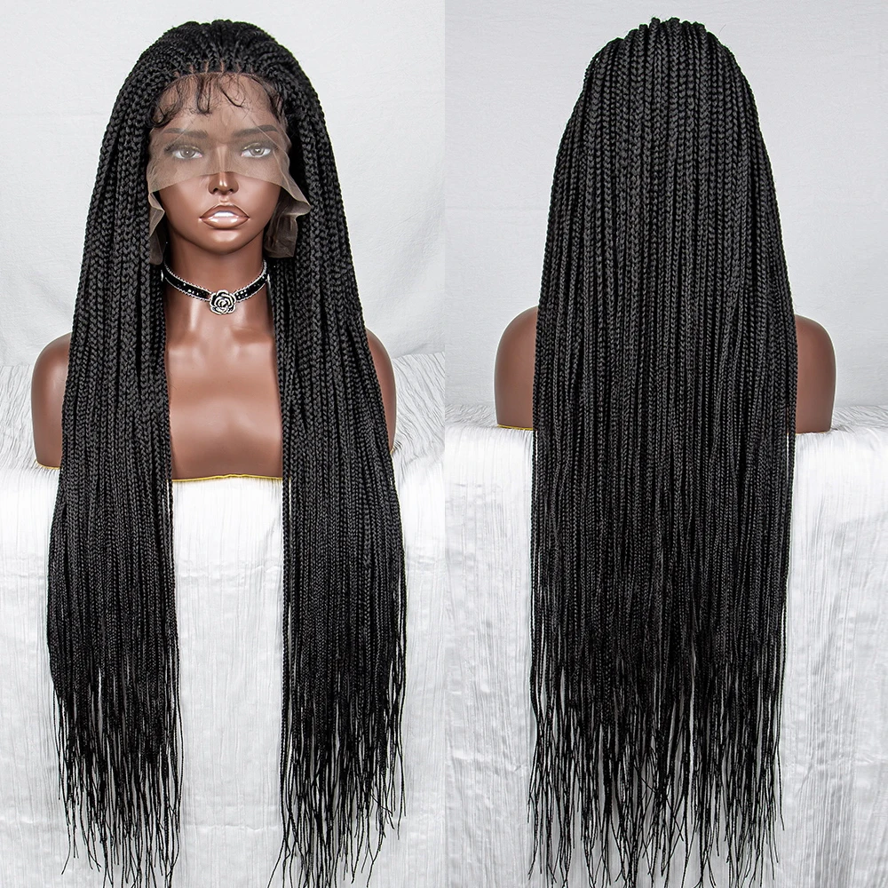 36 Inches 13x6 Lace Synthetic Braided Wigs Lace Frontal Wigs for Black Women Knotless Box Braided Wigs with Baby Hair Front Wigs
