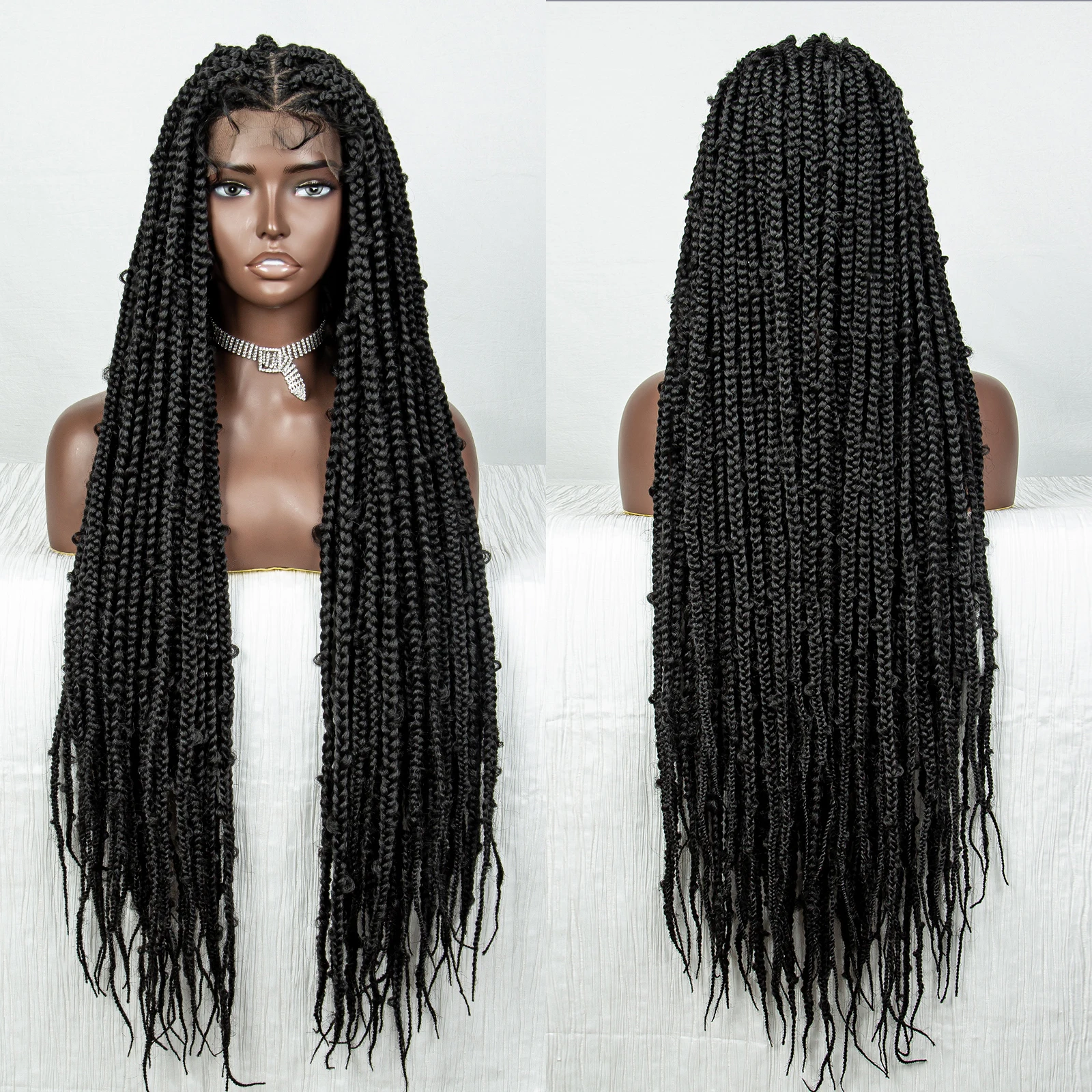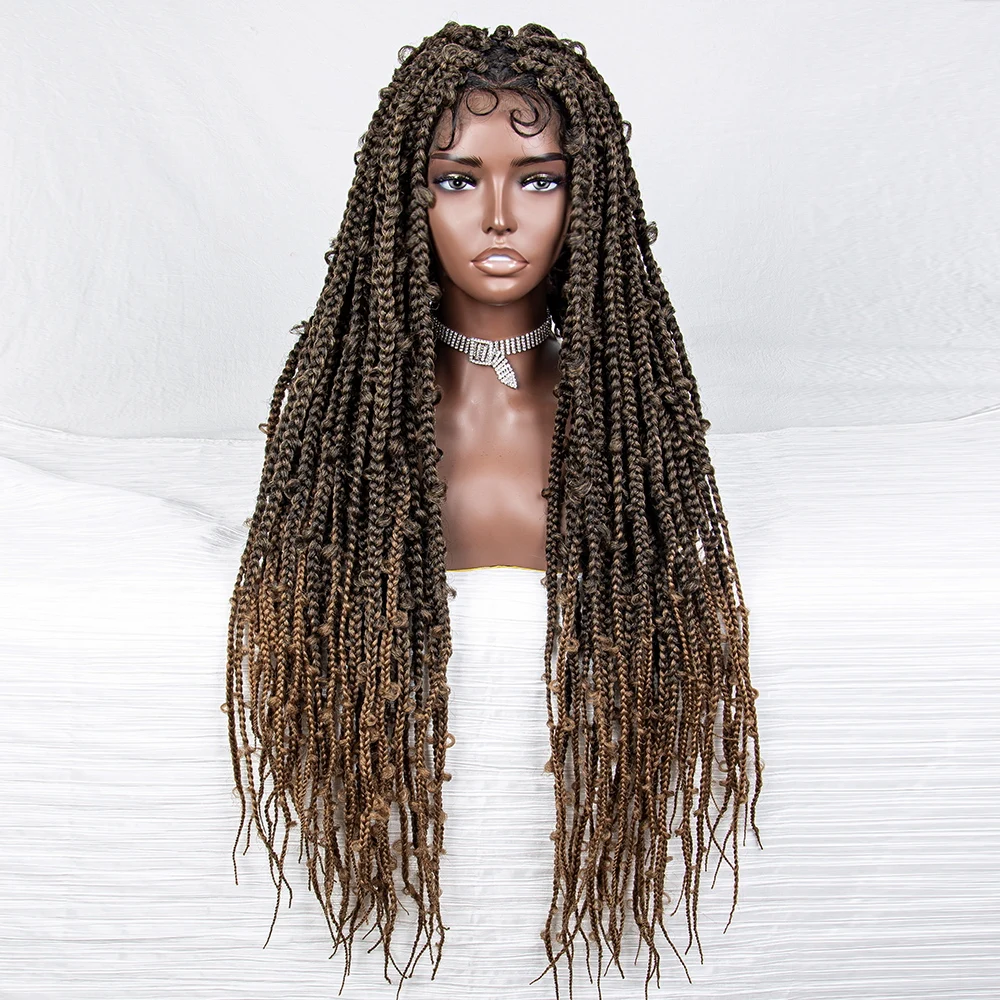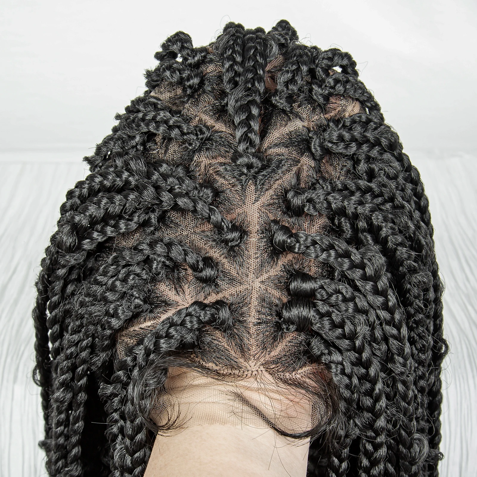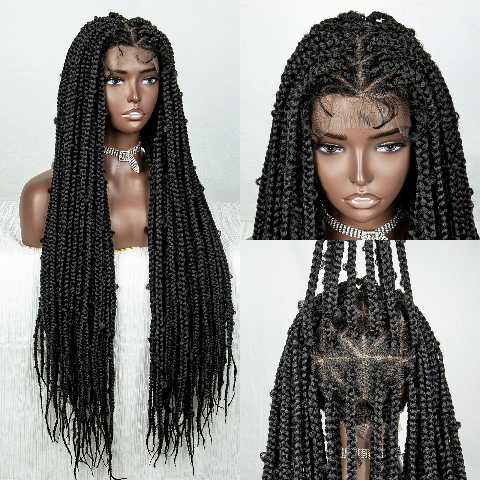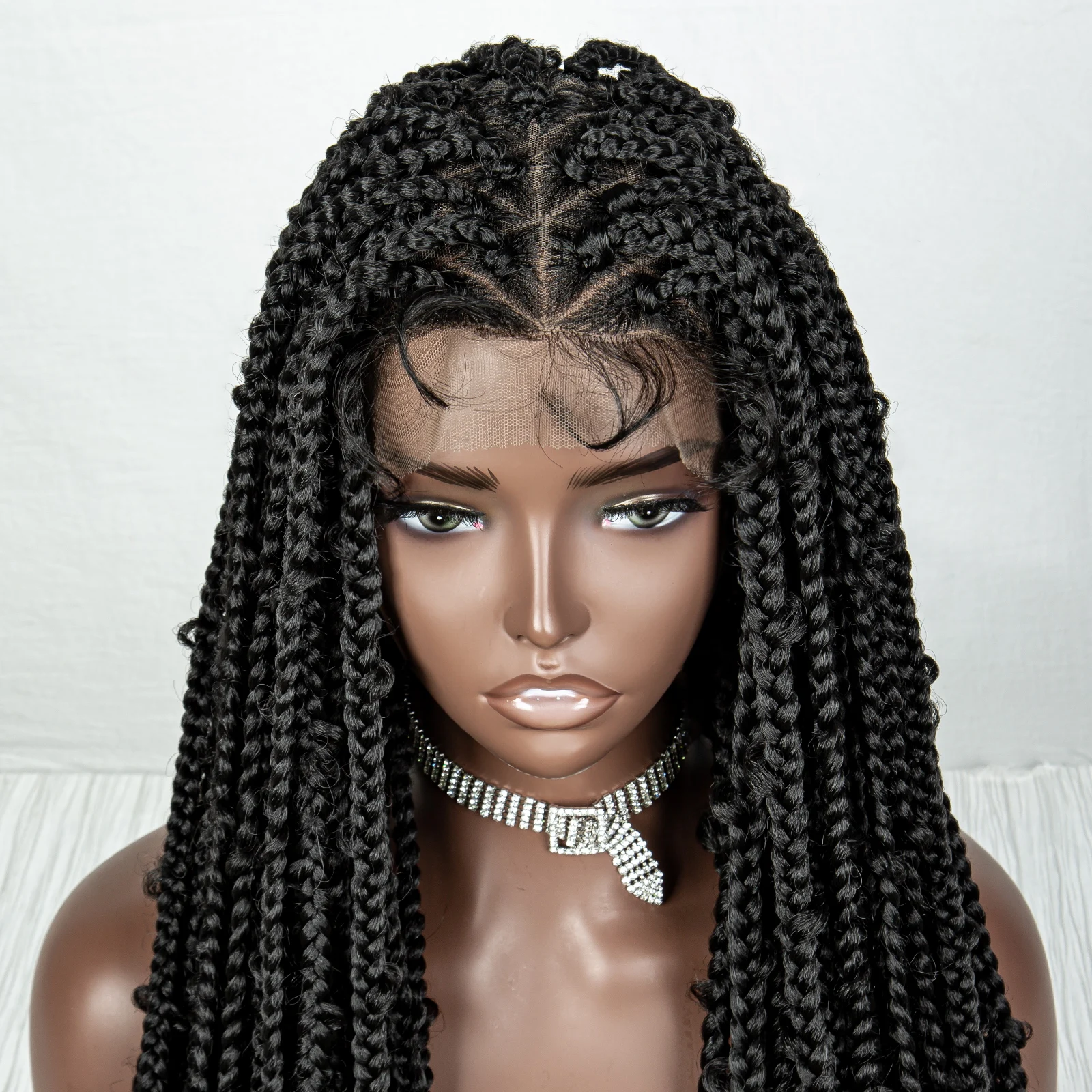 36 Inches 4/27 Synthetic Full Lace Braided Wigs Cornrow Knotless Box Brading Wig with Baby Hair Crochet Hair Jumbo Braids Wig