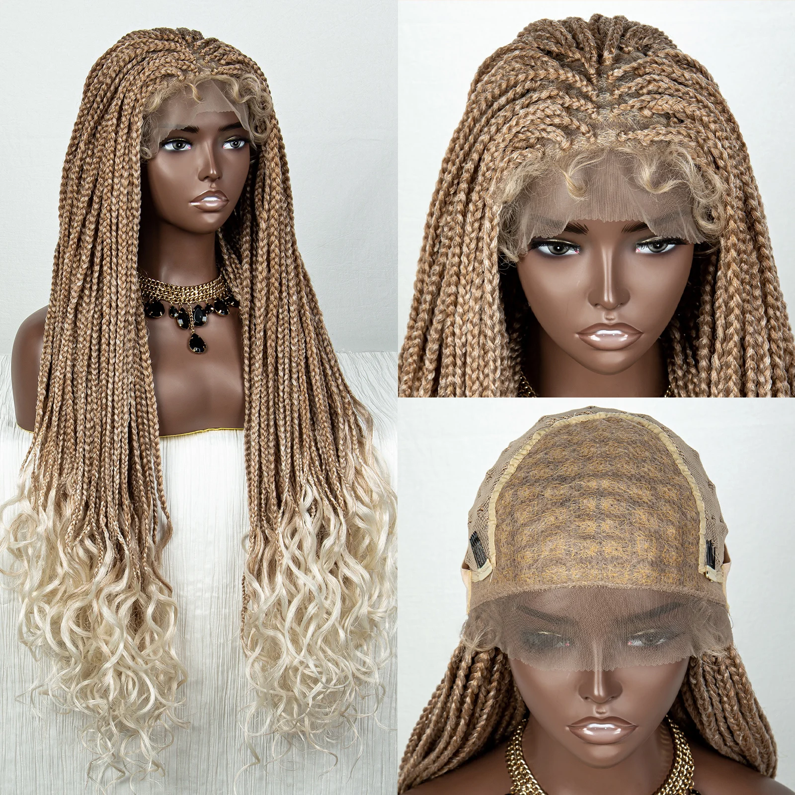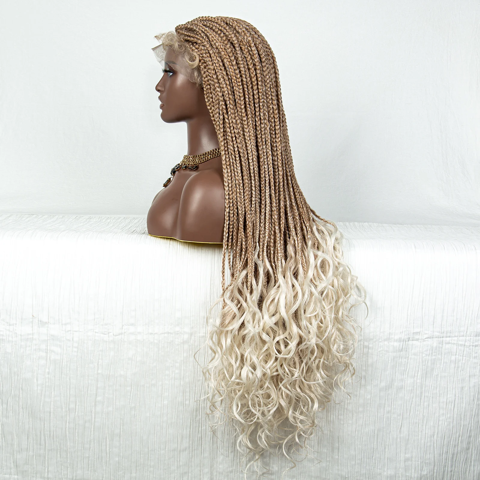 36 Inches 613 Blonde Synthetic Braided Lace Front Braide Wigs with Baby Hair for Black Women Colored Lace Front Braiding Hair