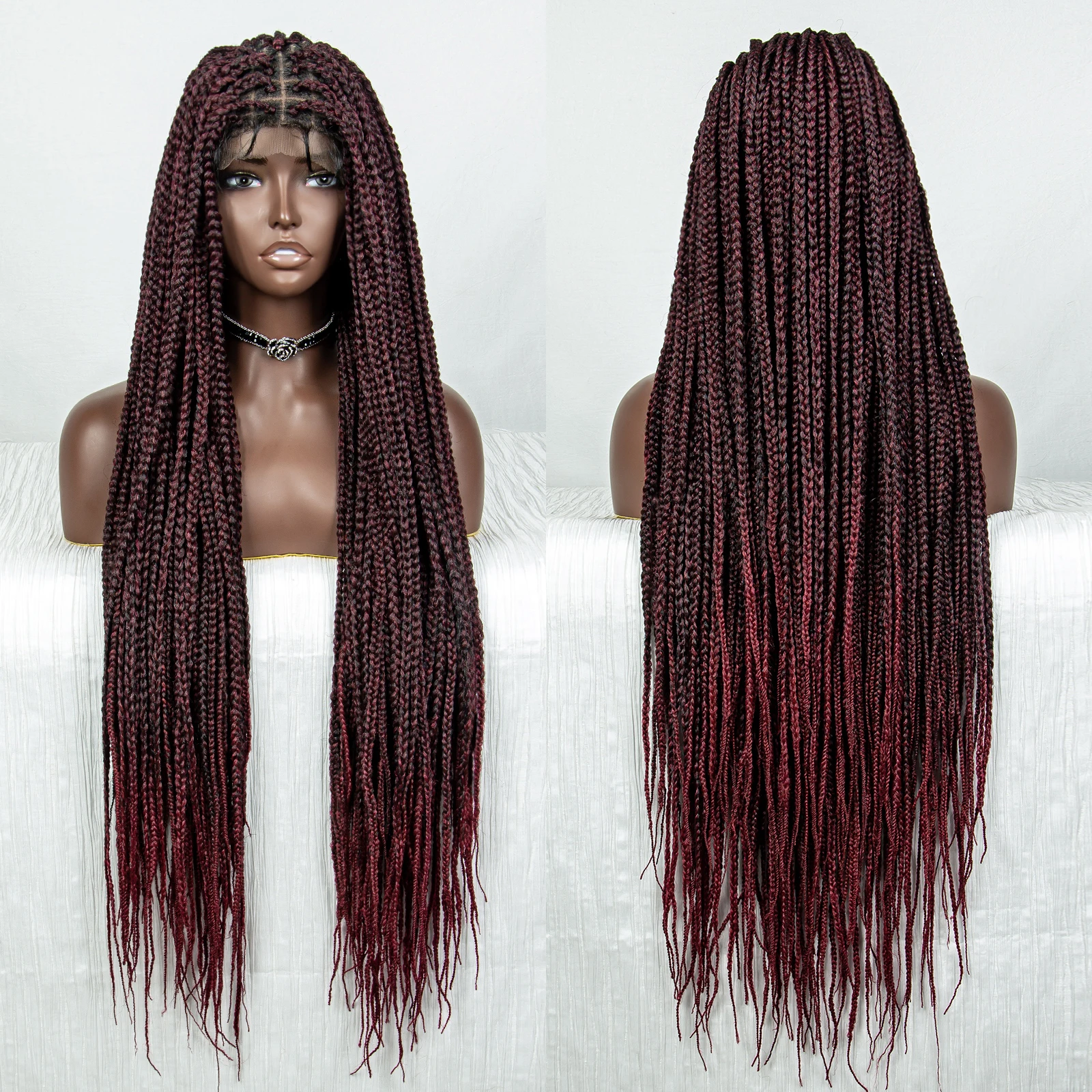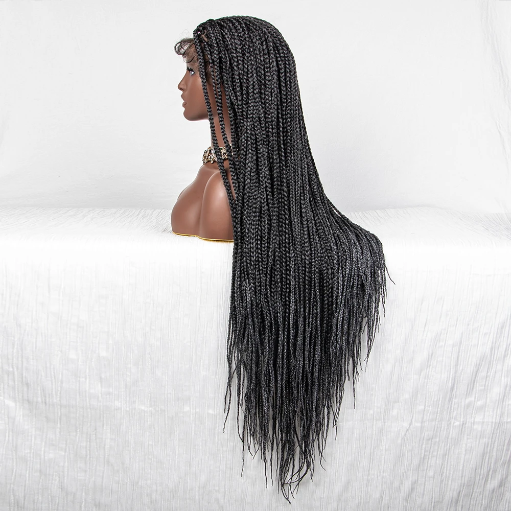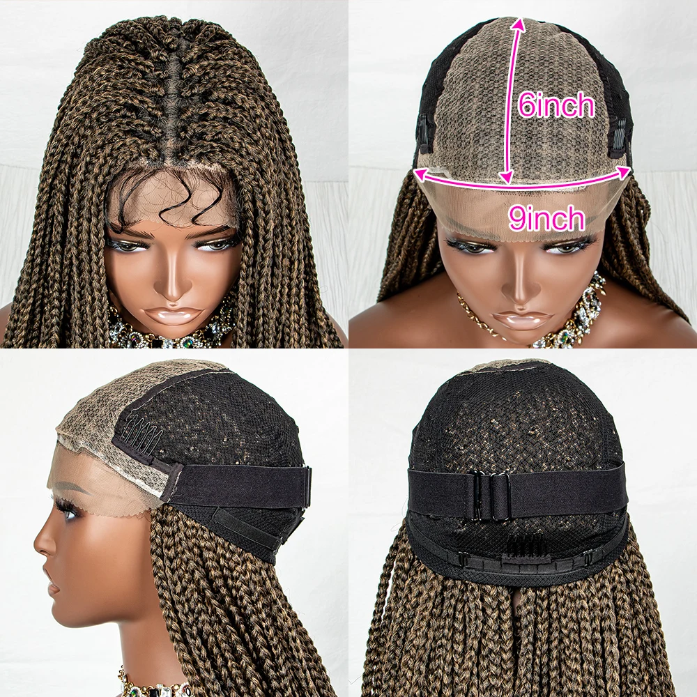 36 Inches Braided Wigs Synthetic Lace Front Wigs with Baby Hair Long Straight Braids Wig for Women Knotless Box Braids Lace Wigs