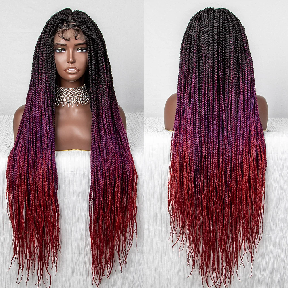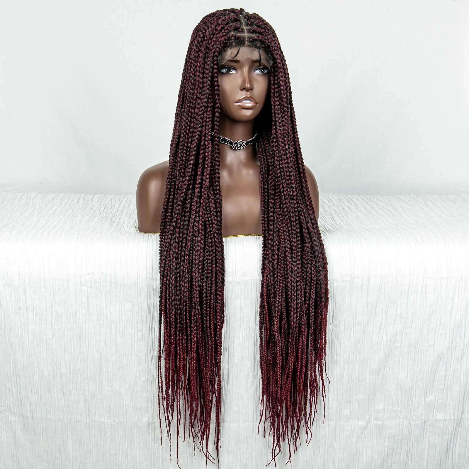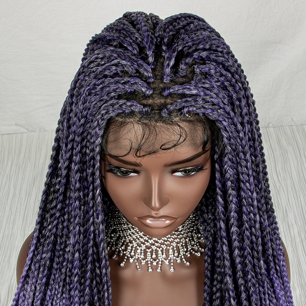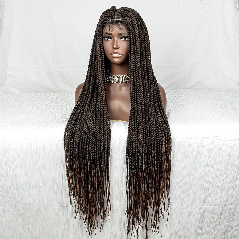 36 Inches Braided Wigs Synthetic Lace Front Wigs with Baby Hair Long Straight Braids Wig for Women Knotless Box Braids Lace Wigs