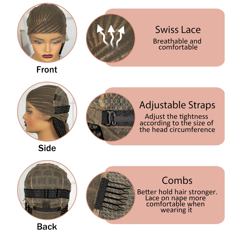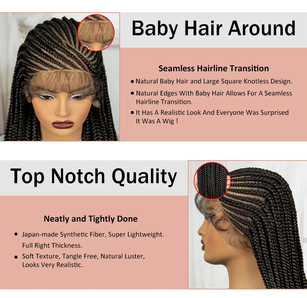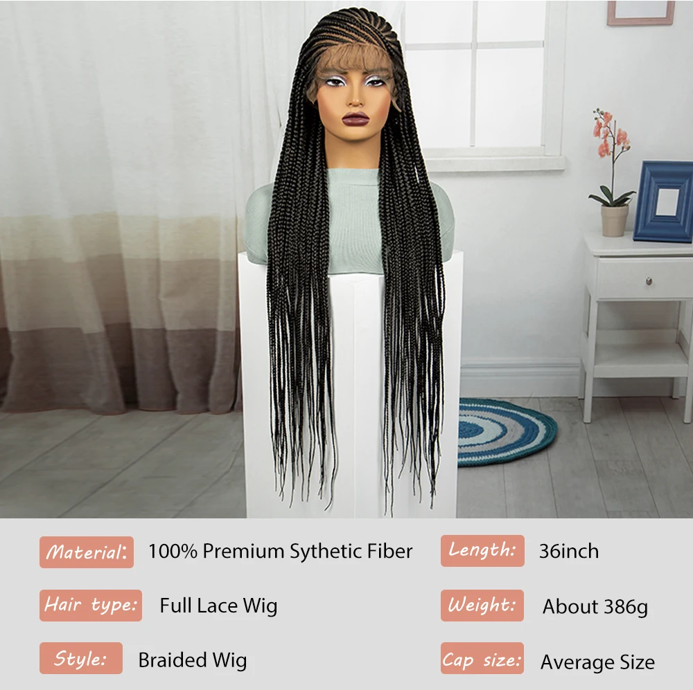 36 Inches Cornrow Braided Wigs Synthetic Full Lace Knotless Braids Wig for Black Women Straight Braiding Hair Wig with Baby Hair