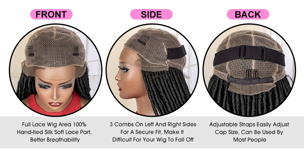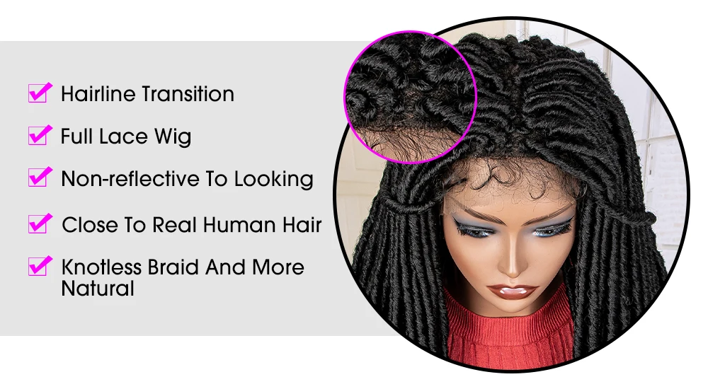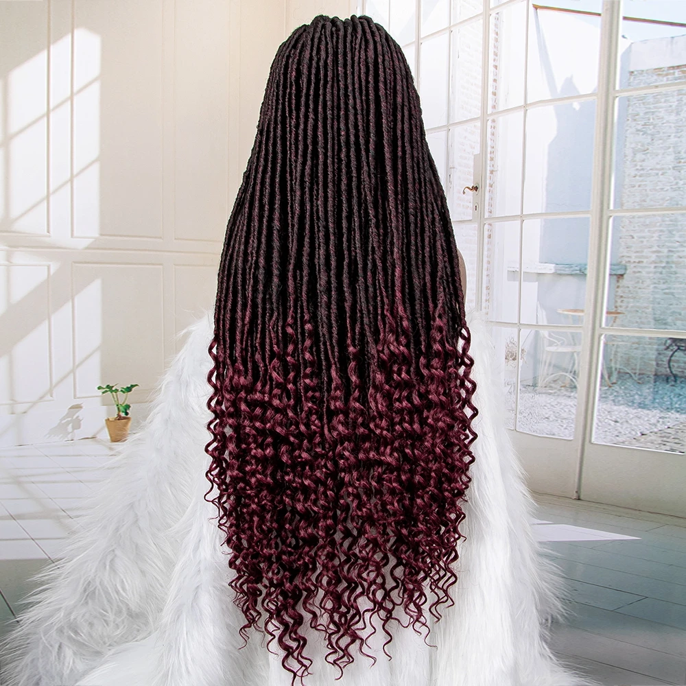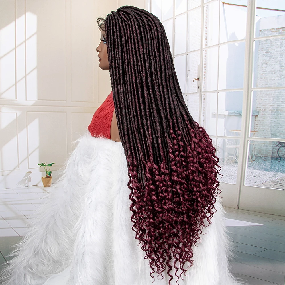 36 Inches Curly African Synthetic Full Lace Knotless Braided Wigs with Baby Hair for Black Women Lace Frontal Dreadlocks Wigs