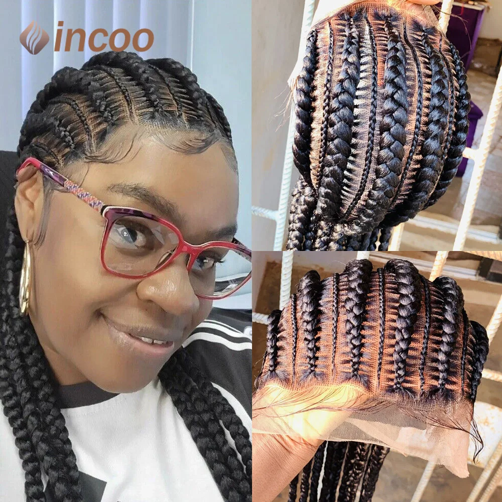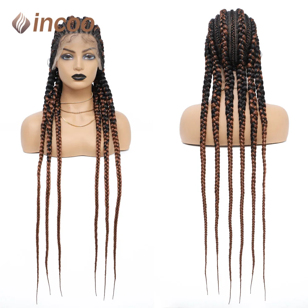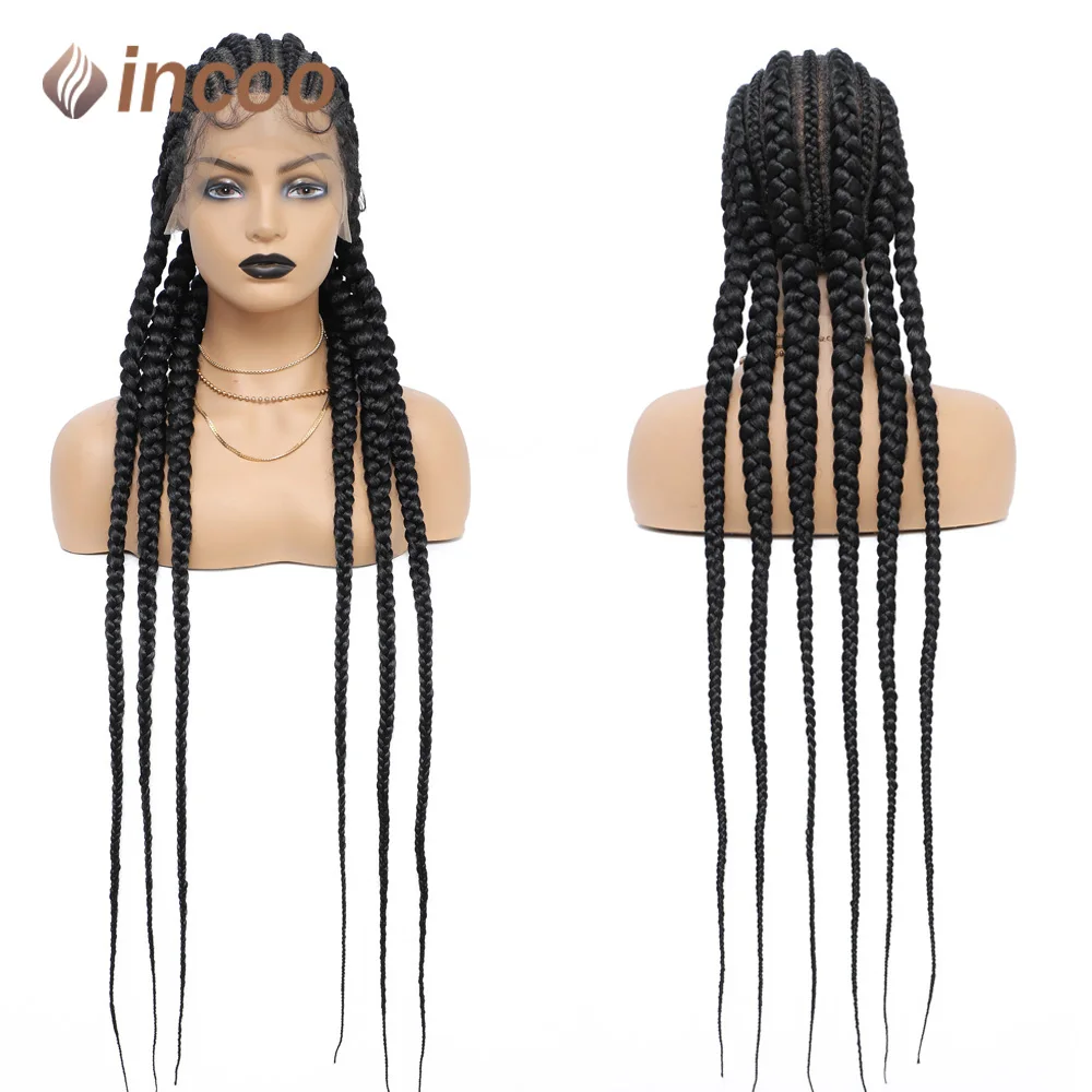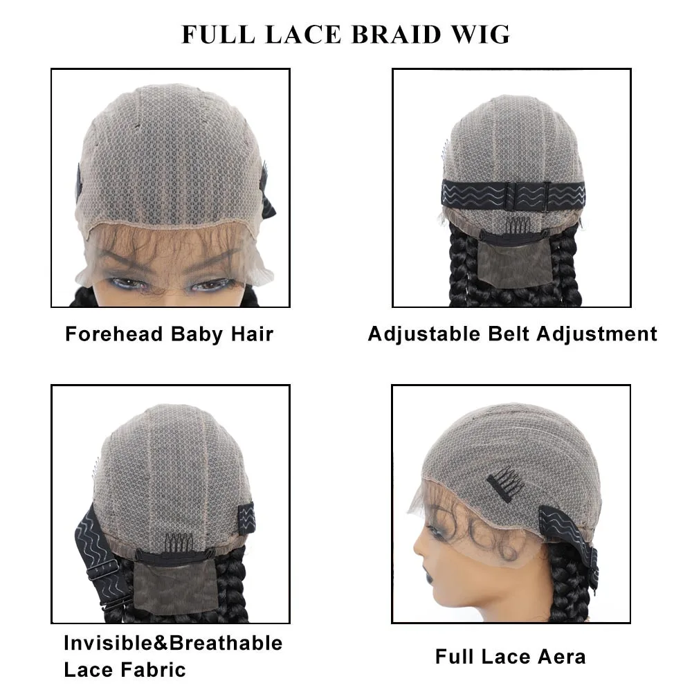 36 Inches Synthetic Braided Wigs With Baby Hair Full Lace Frontal Black Knotless Box Braids Wig For Black Women Cornrow Wigs