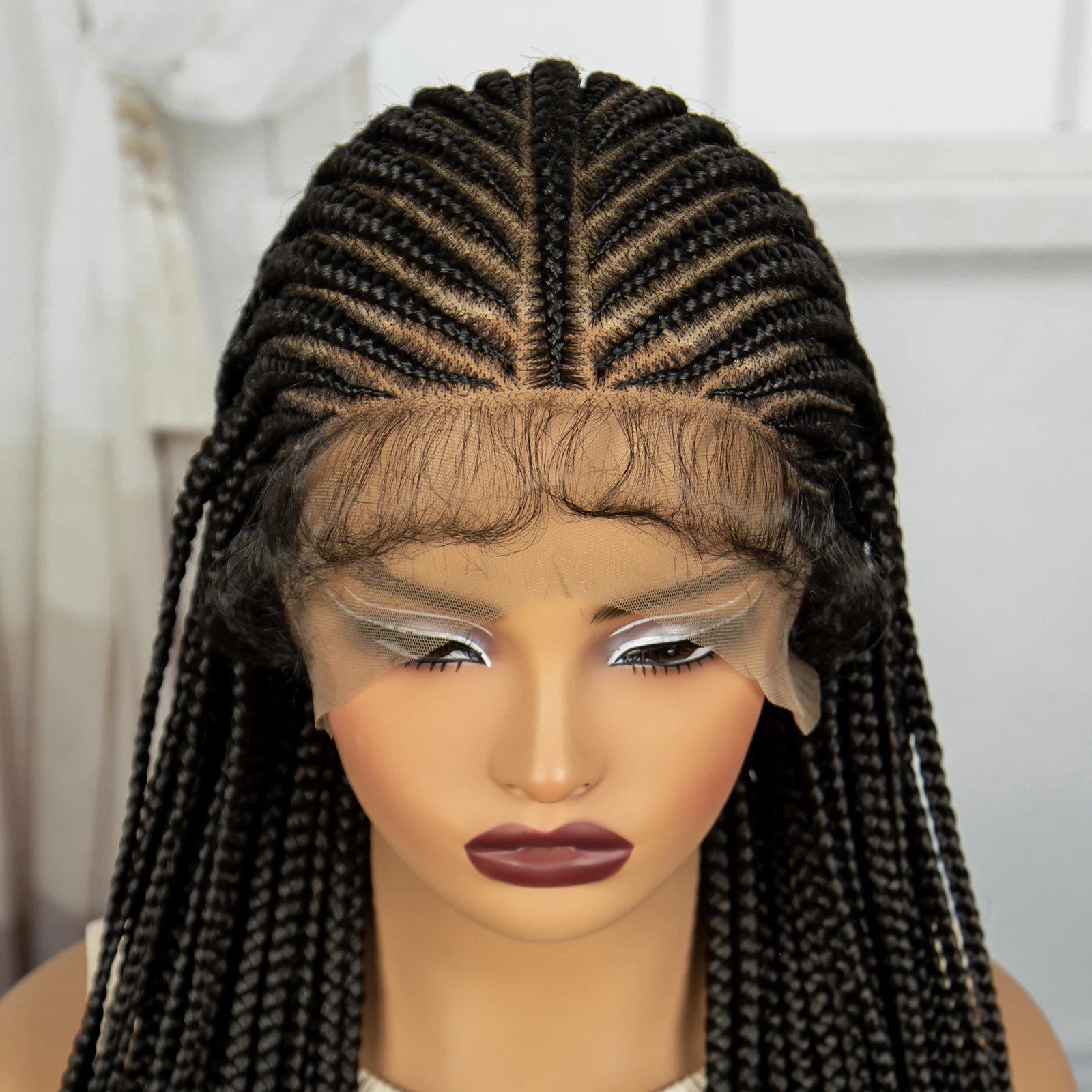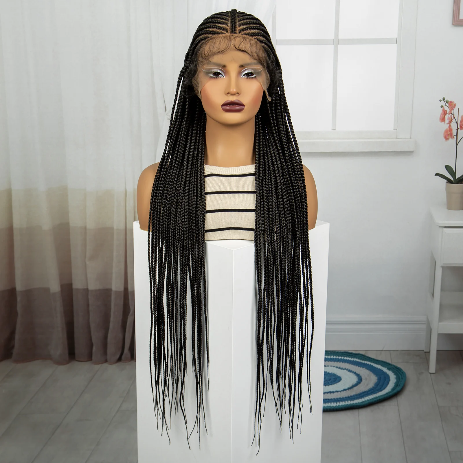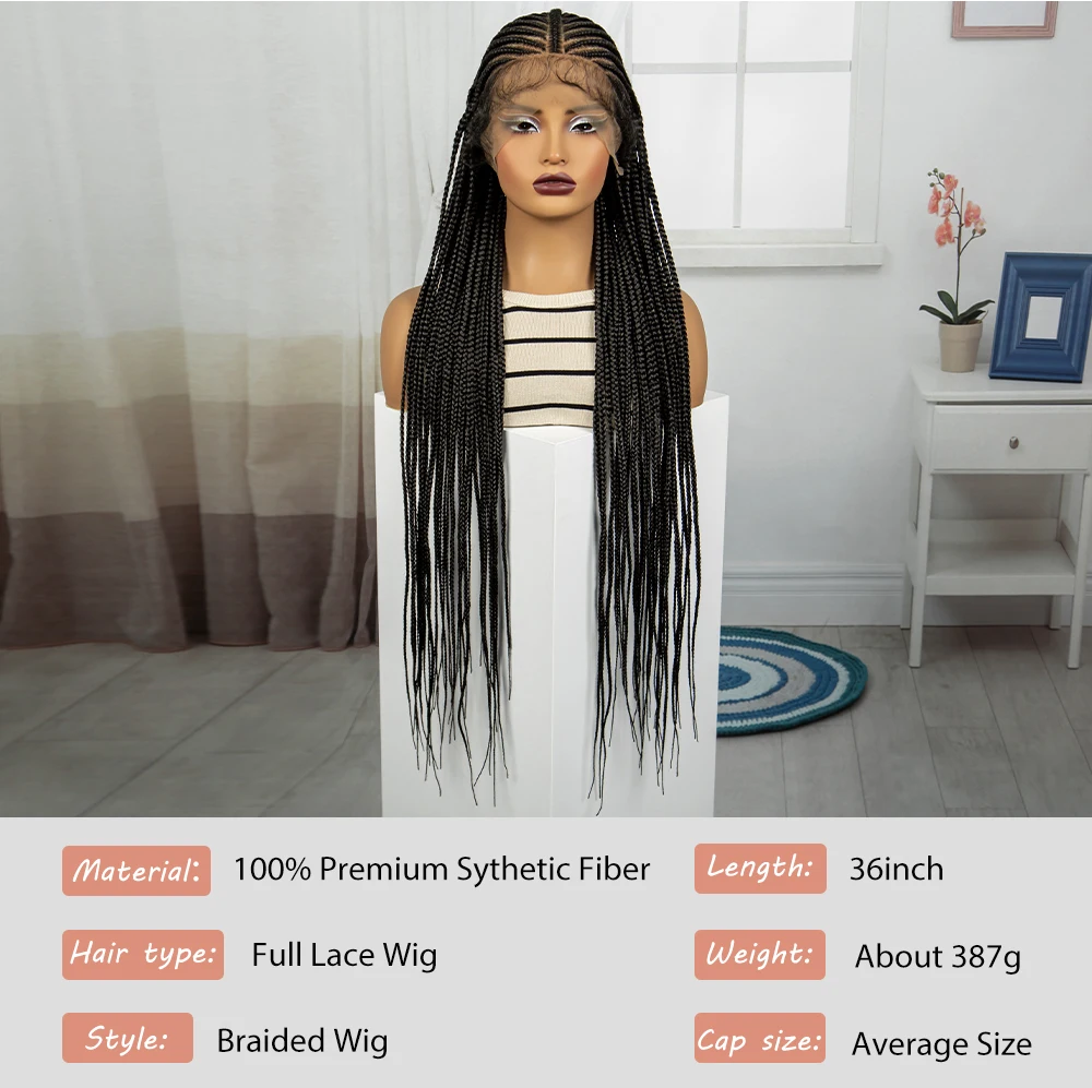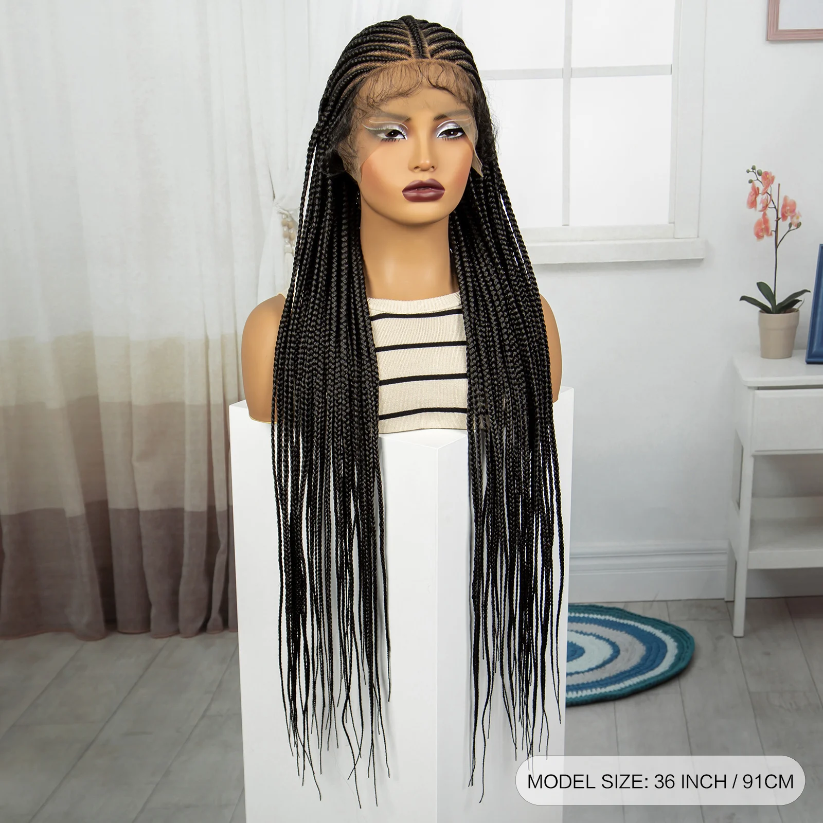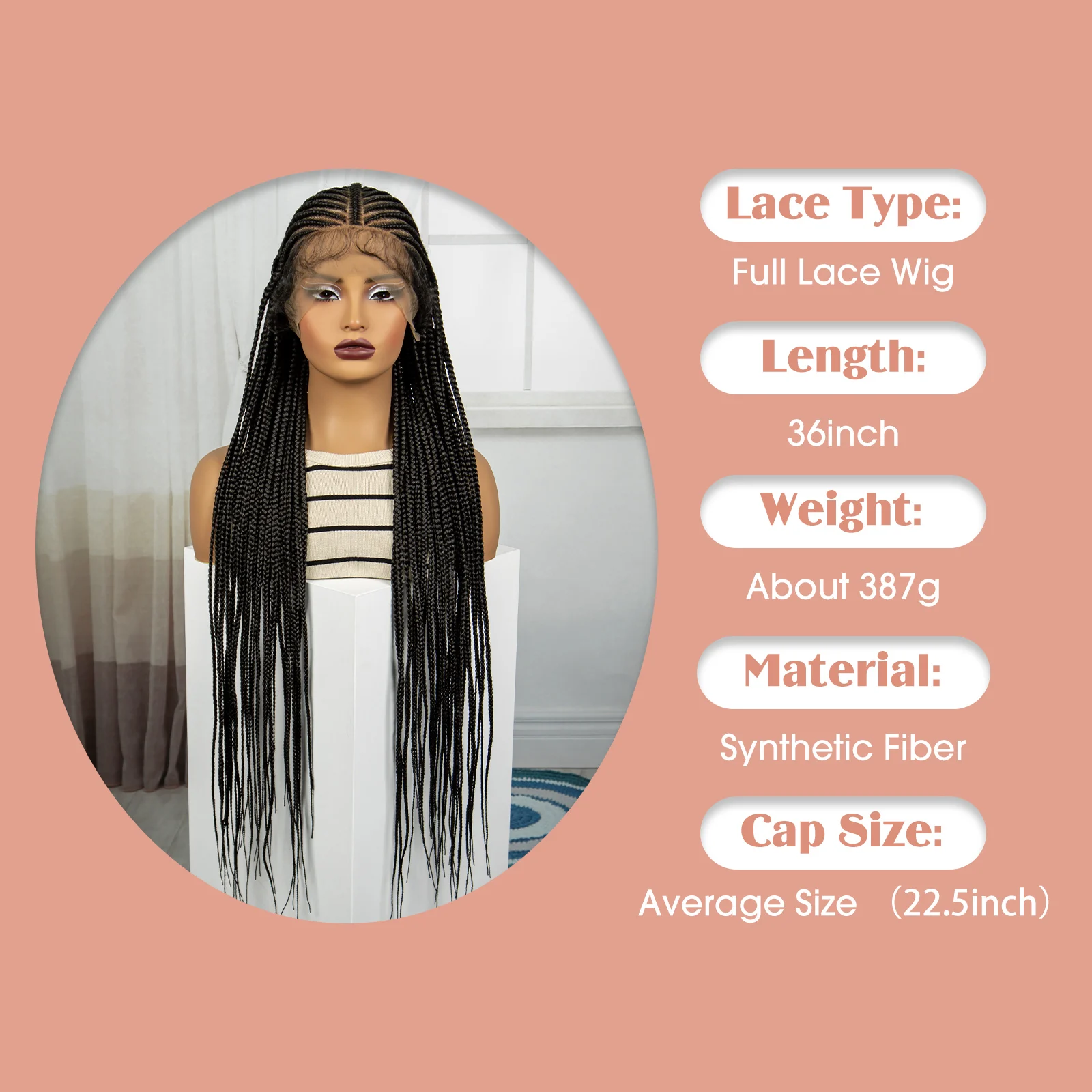 36 Inches Synthetic Cornrow Braided Wigs Full Lace Knotless Braided Lace Wig for Black Women Braiding Hair Wig with Baby Hair