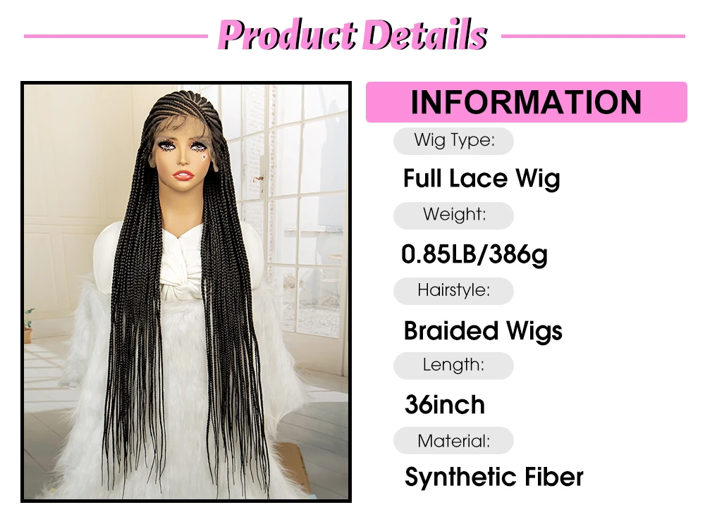 36 Inches Synthetic Full Lace Braided Wigs with Baby Hair Cornrow Braided Wigs for Black Women Twist Knotless Box Braid Wig