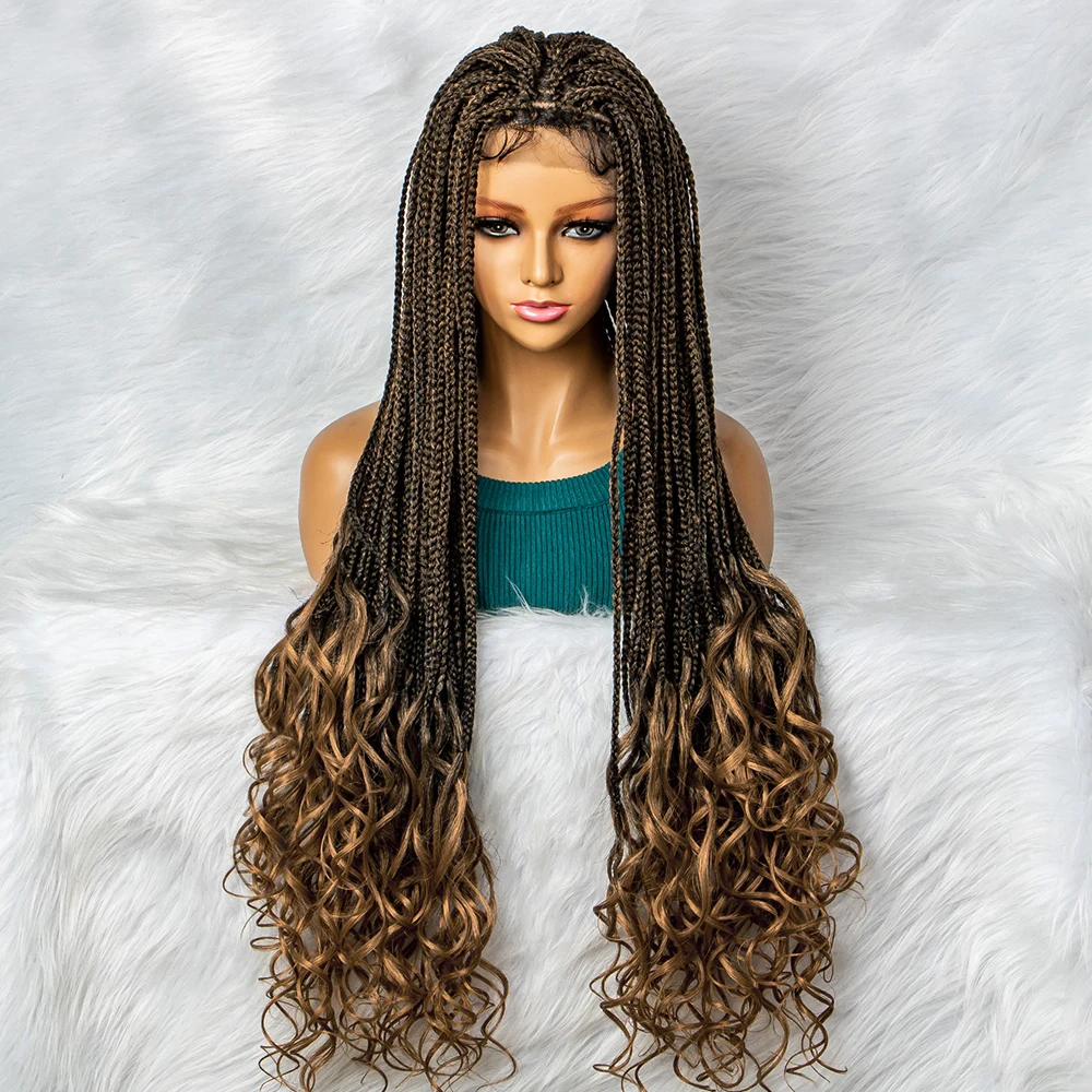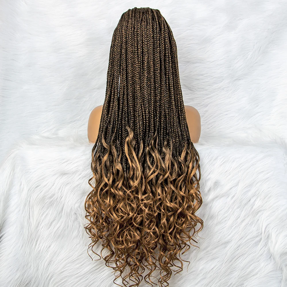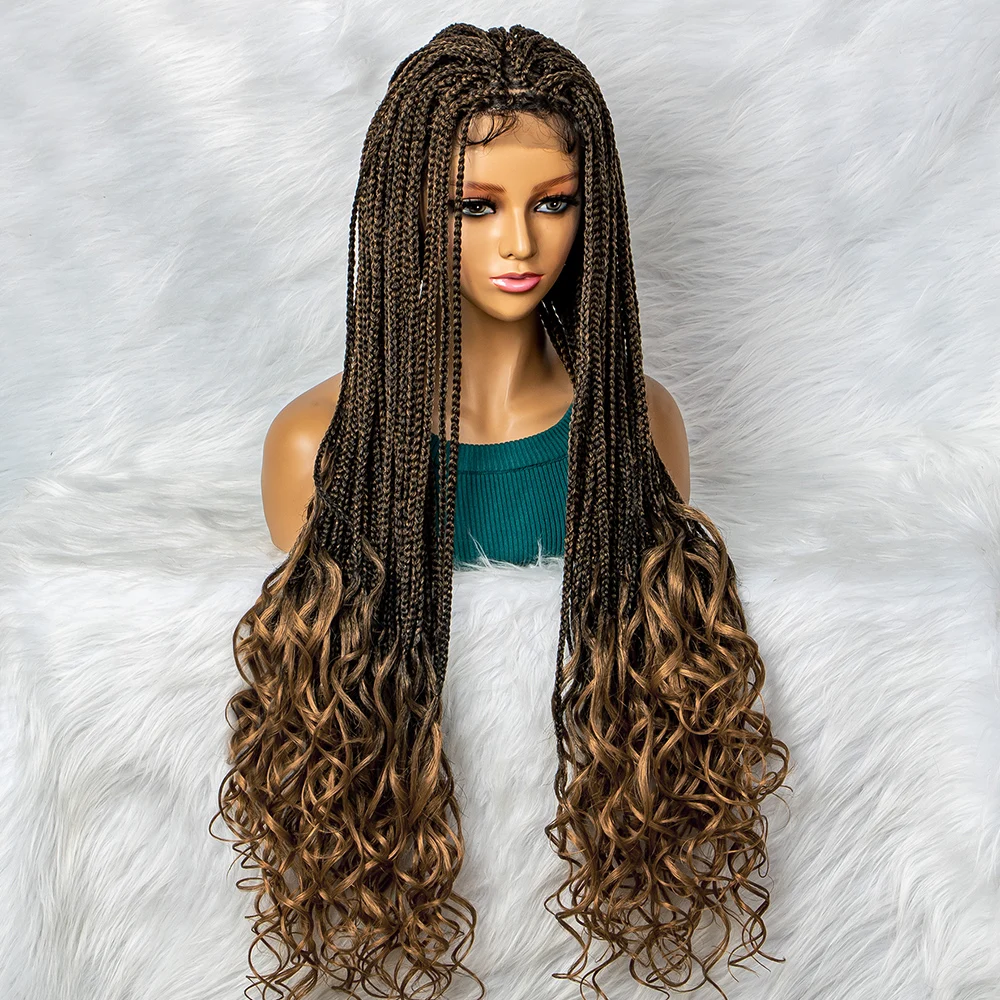 36 inches Synthetic Lace Front Wig Braided Wigs Braid African With Baby Hair Braided Lace Front Wigs Water Wavy Wigs