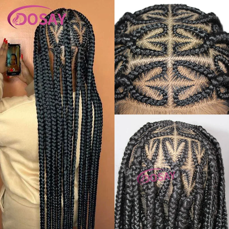 36" Knotless Heart Braided Wig Jumbo Knotless Full Lace Braid Wig with Baby Hair Cornrow Synthetic Braid Wigs for Women African