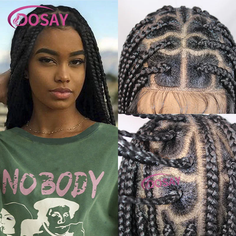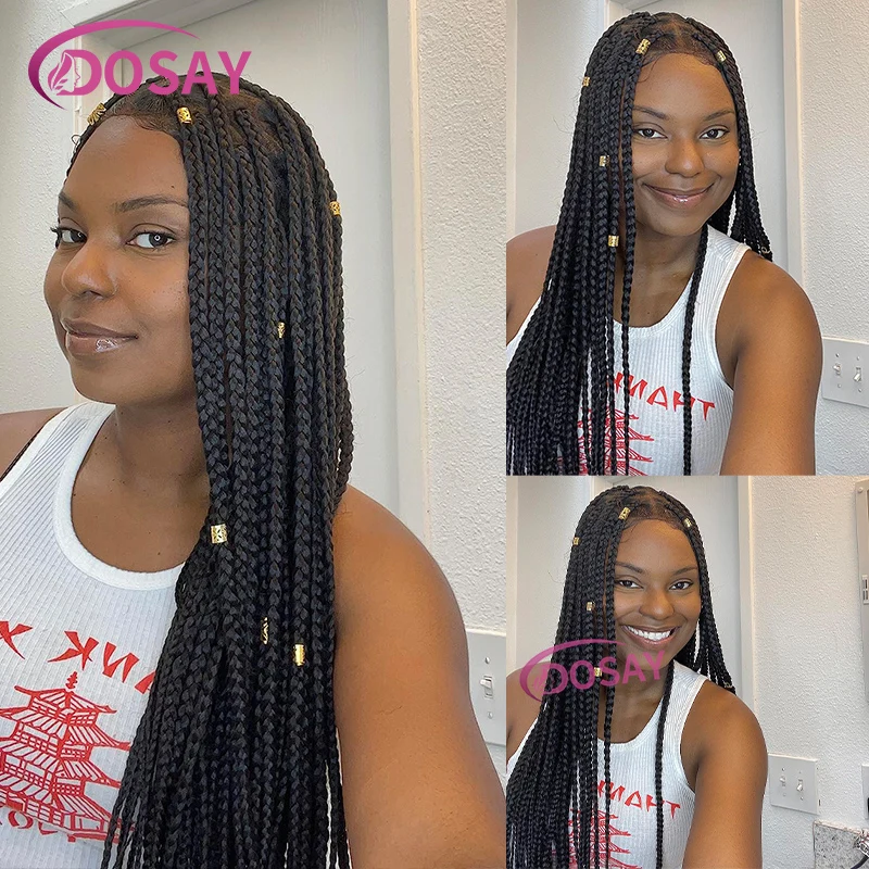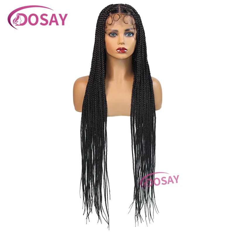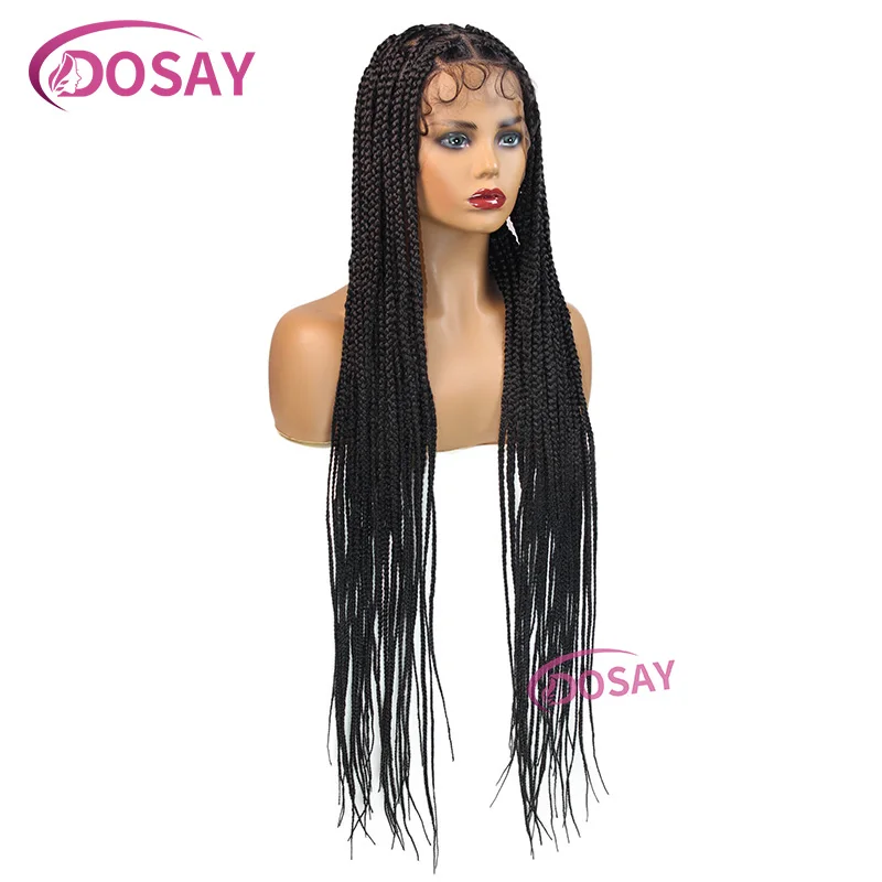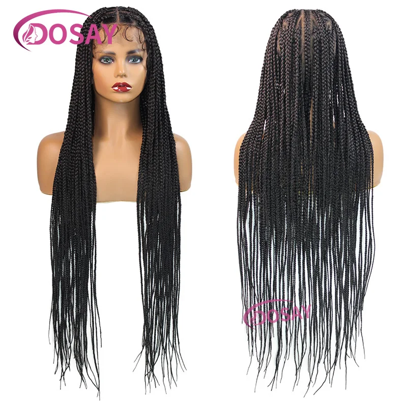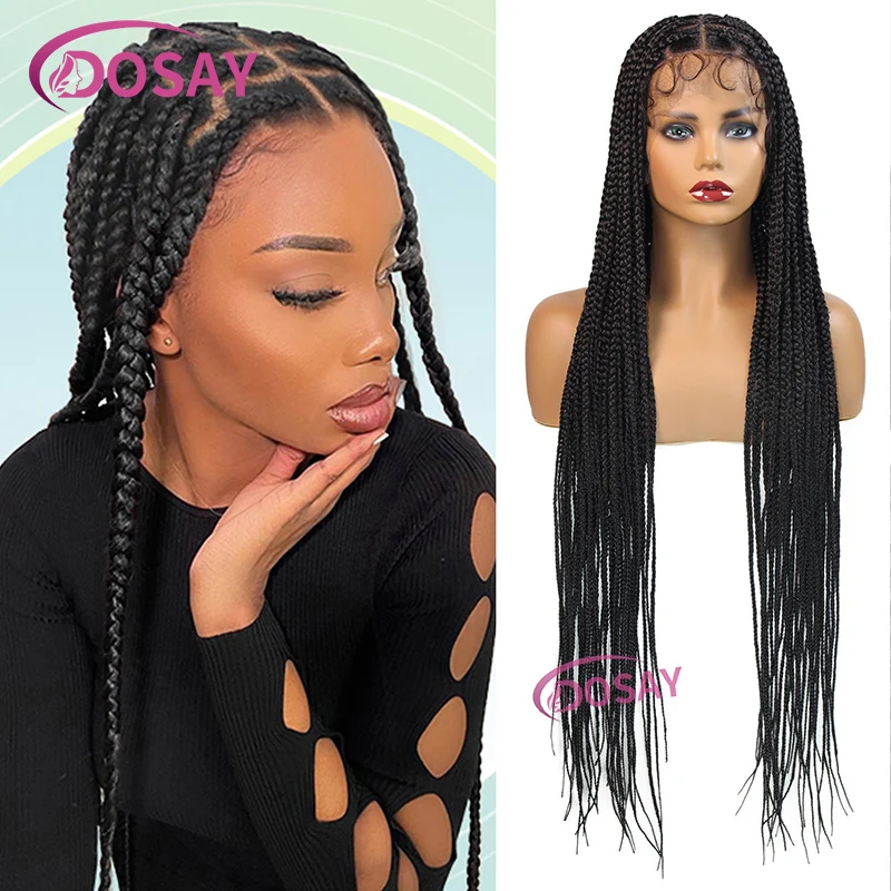 36" Knotless Synthetic Box Braided Wigs for Women Heart and Round Braids Wig Full Double Lace Braid Wigs with Baby Hair African
