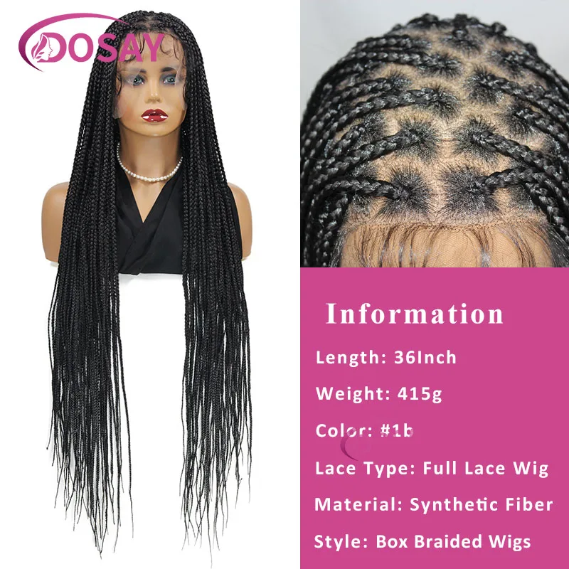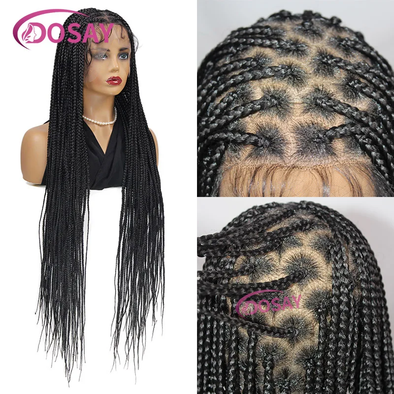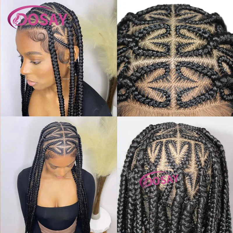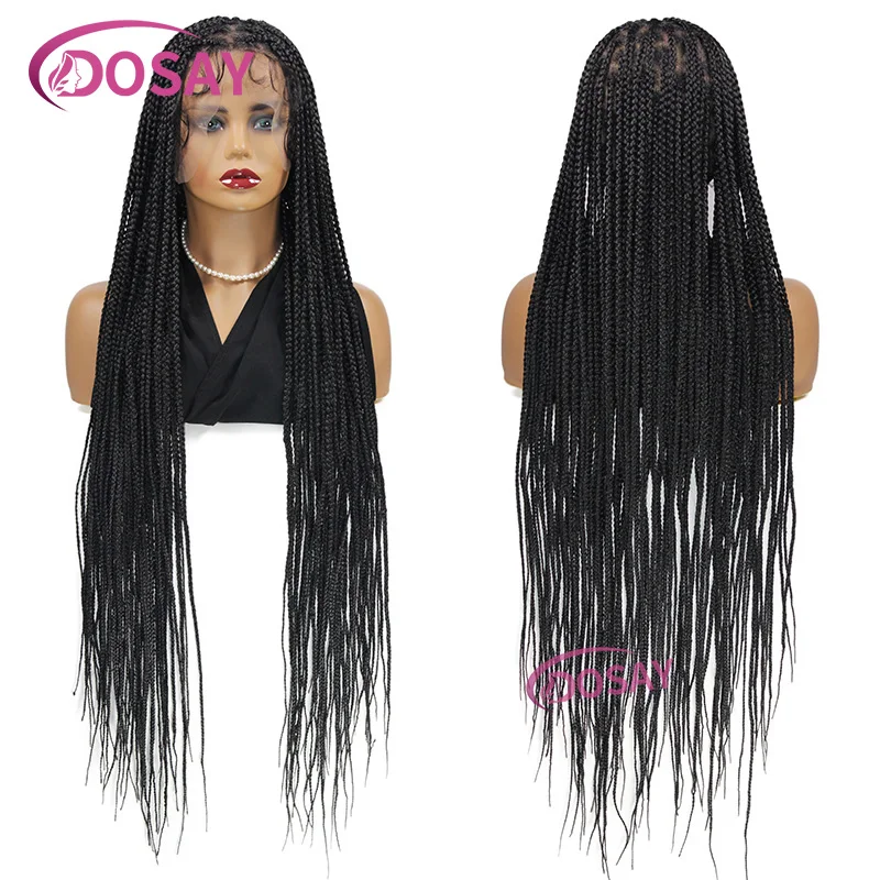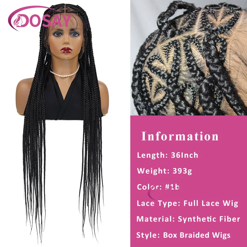 36'' Large Heart Knotless Braided Wig Triple Plait Full Lace Front Wig With Baby Hair Synthetic Cornrow Braided Wigs For Women
