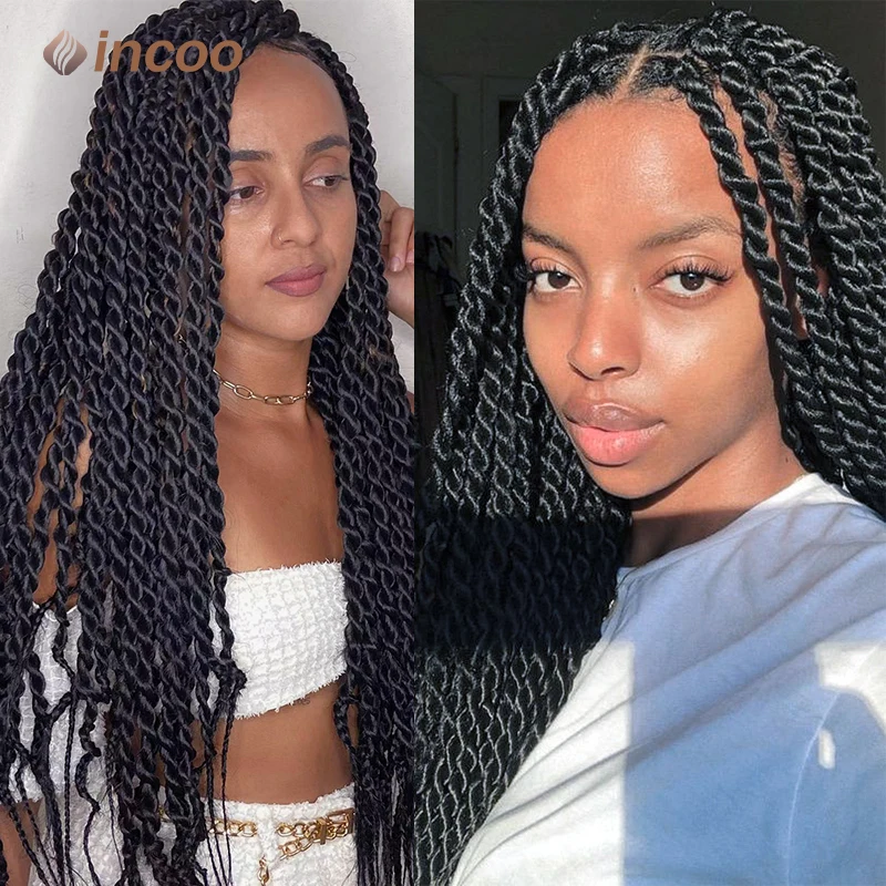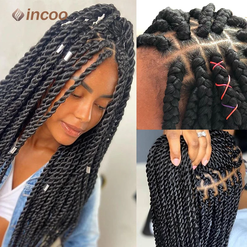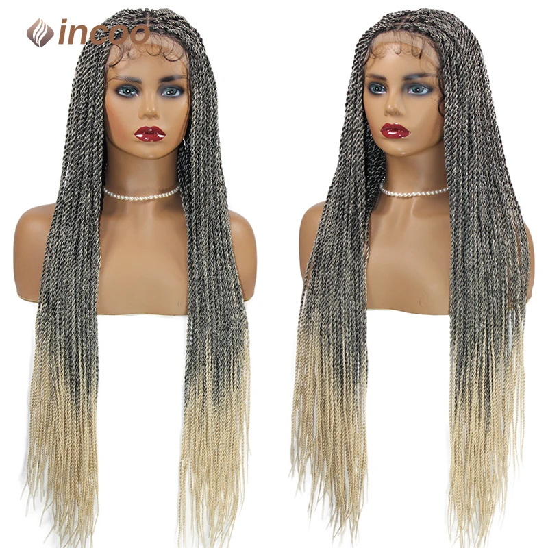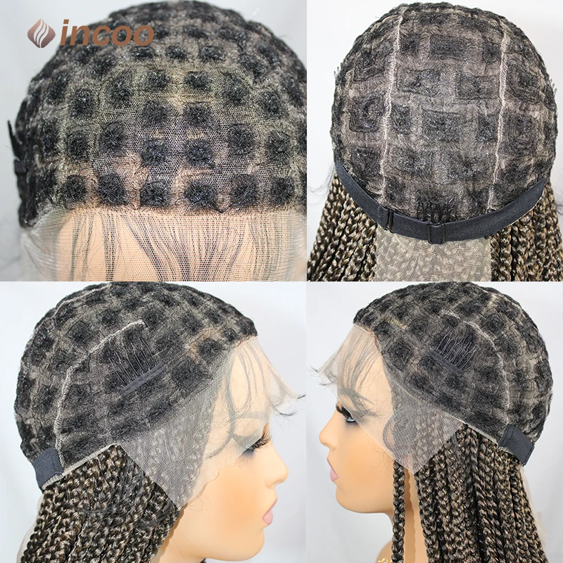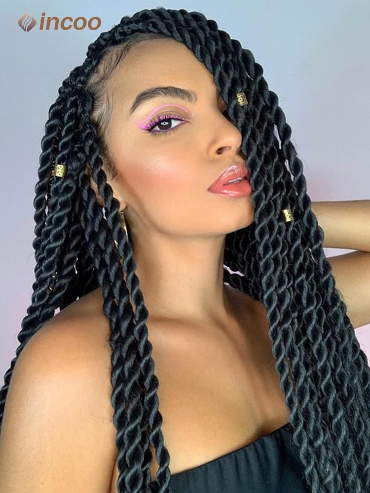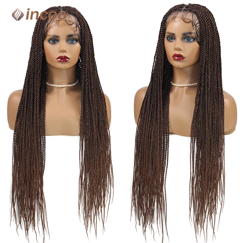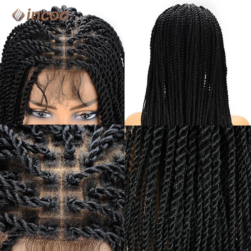 36" Longblack Incoo Synthetic Braided Hair Wigs Knotless Box Braiding For Black Women Straight Lace Front Wigs Hair For Braids