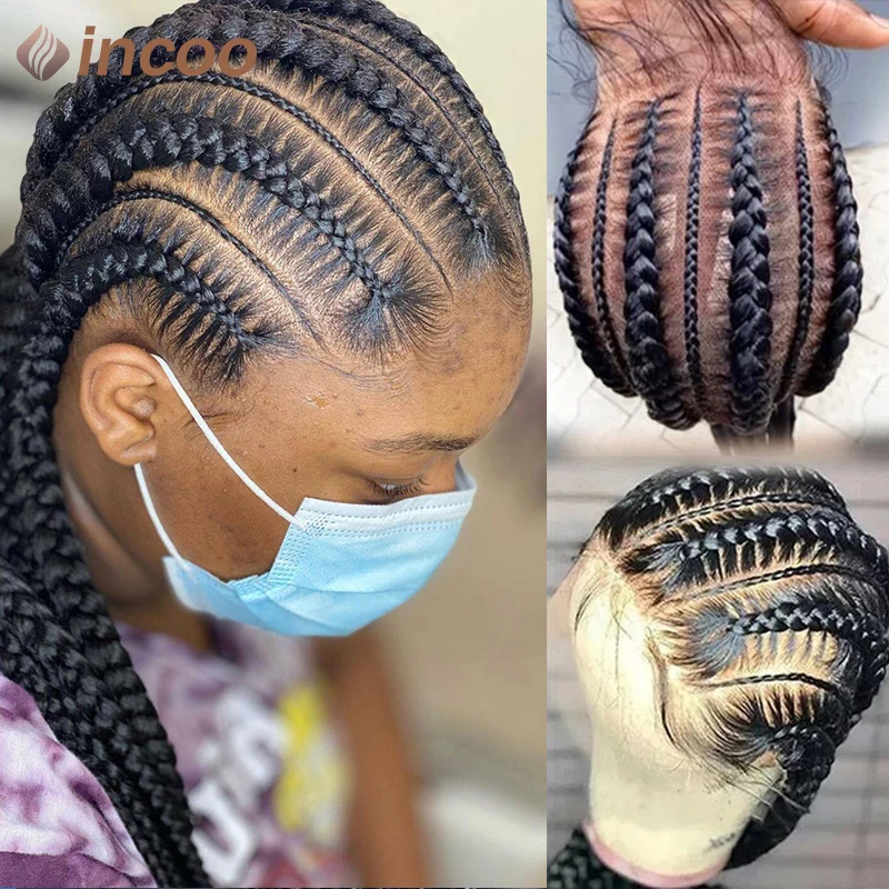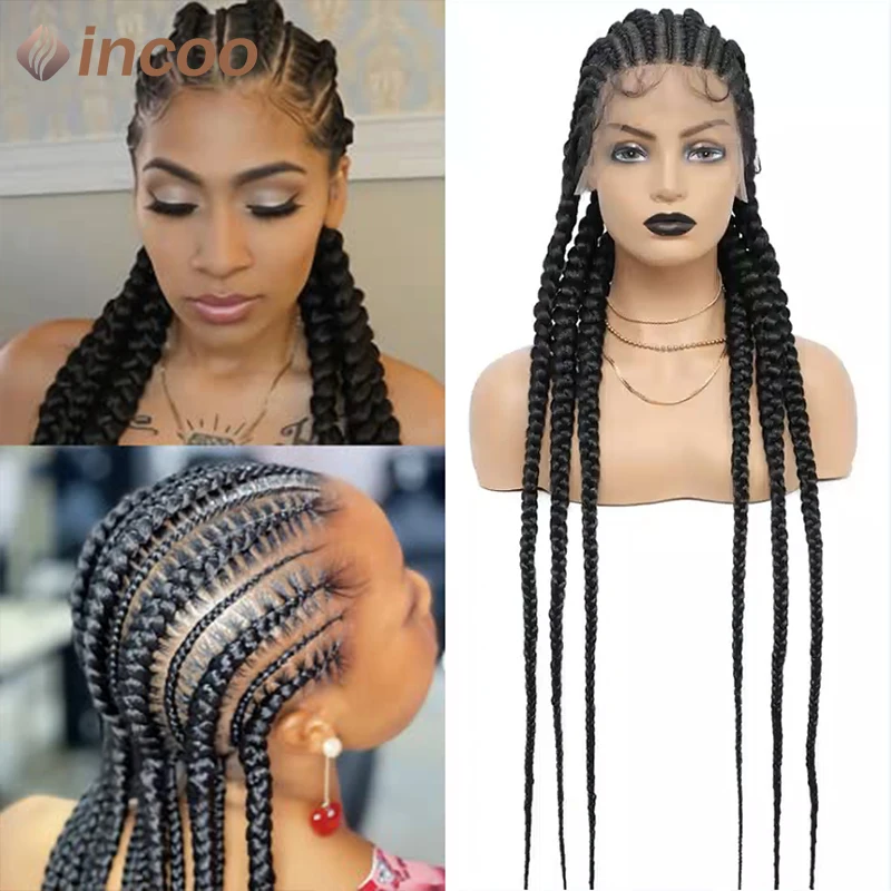 36” Synthetic Cornrows Braided Wigs Full Lace Front Wig For Black Women Jumbo Knotless Box Braid Lace Wigs Glueless African Hair